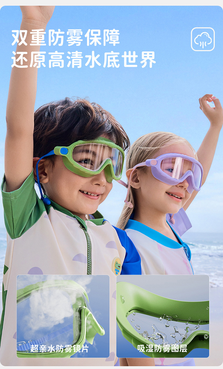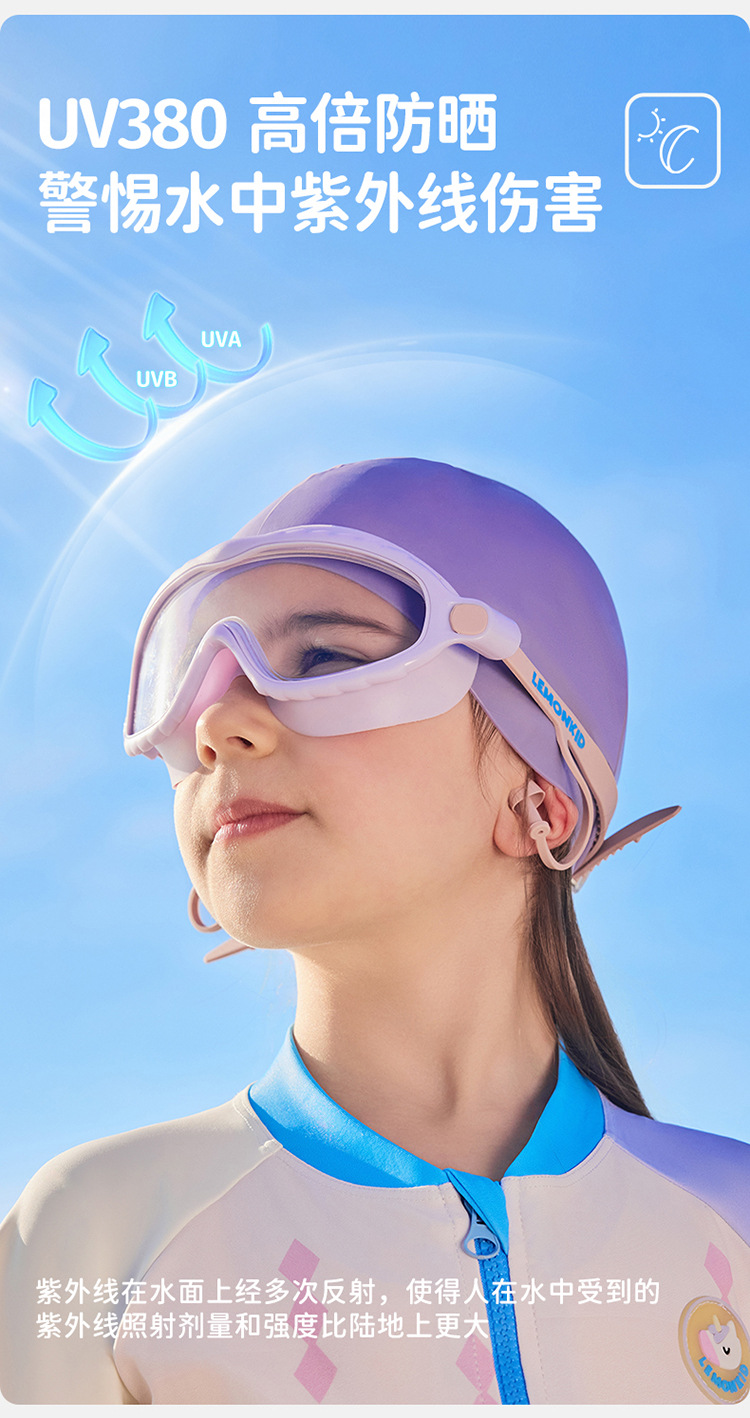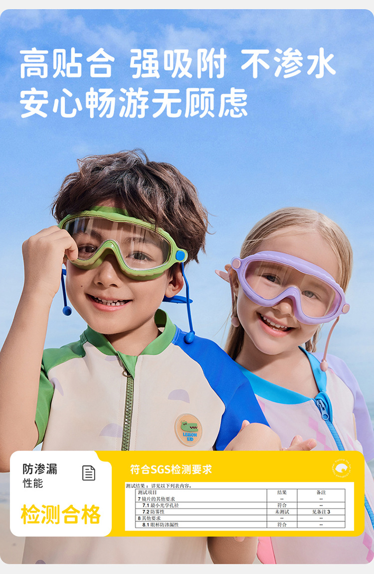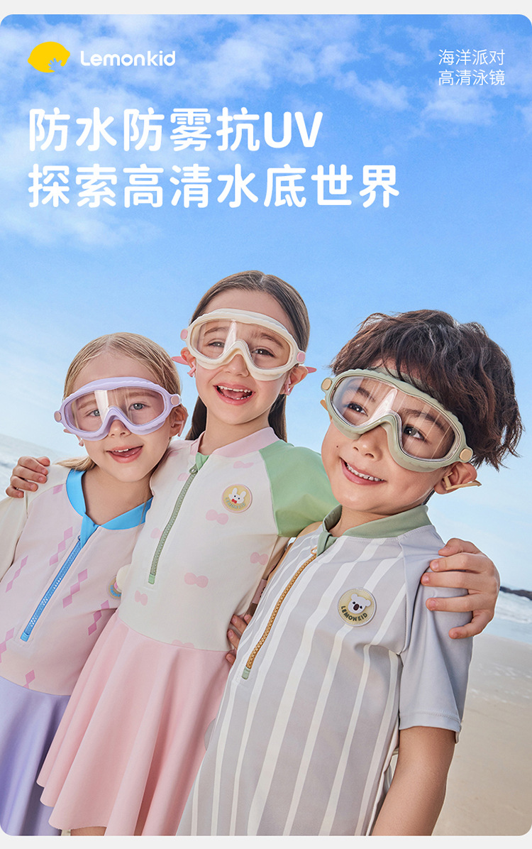 【防水防雾抗UV,探索高清水底世界】柠檬宝宝儿童泳镜 防水防雾高清大框游泳眼镜 男女童护目镜潜水装备-QQ