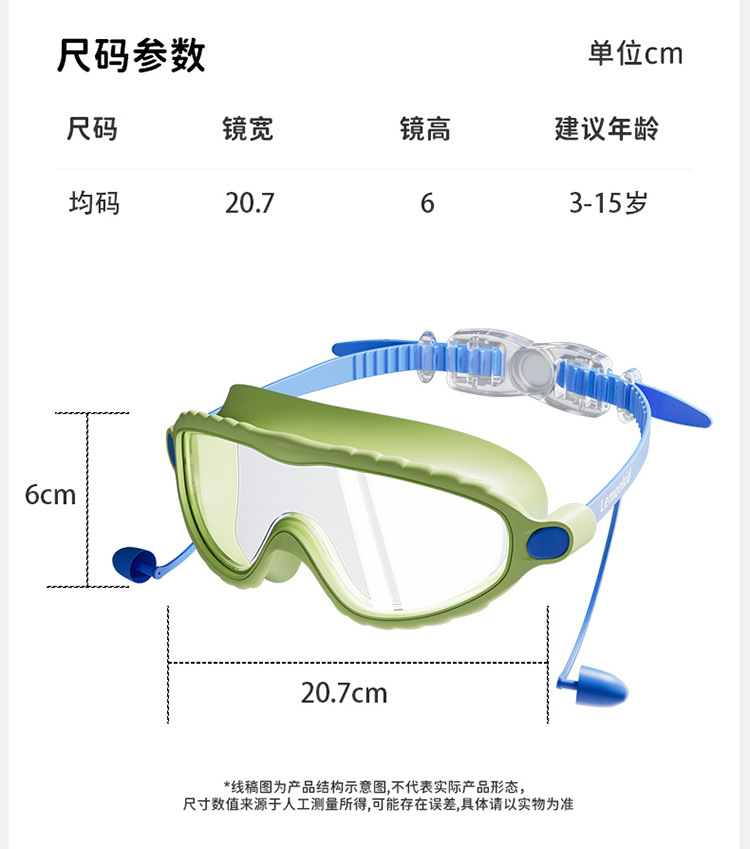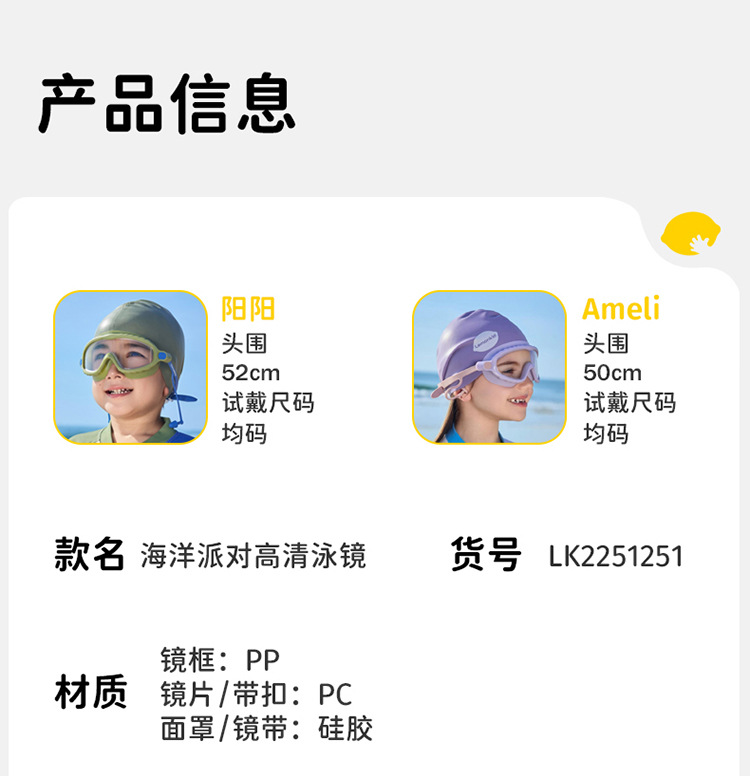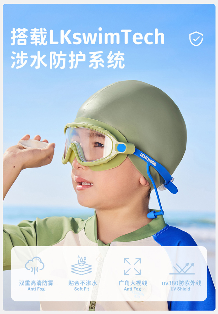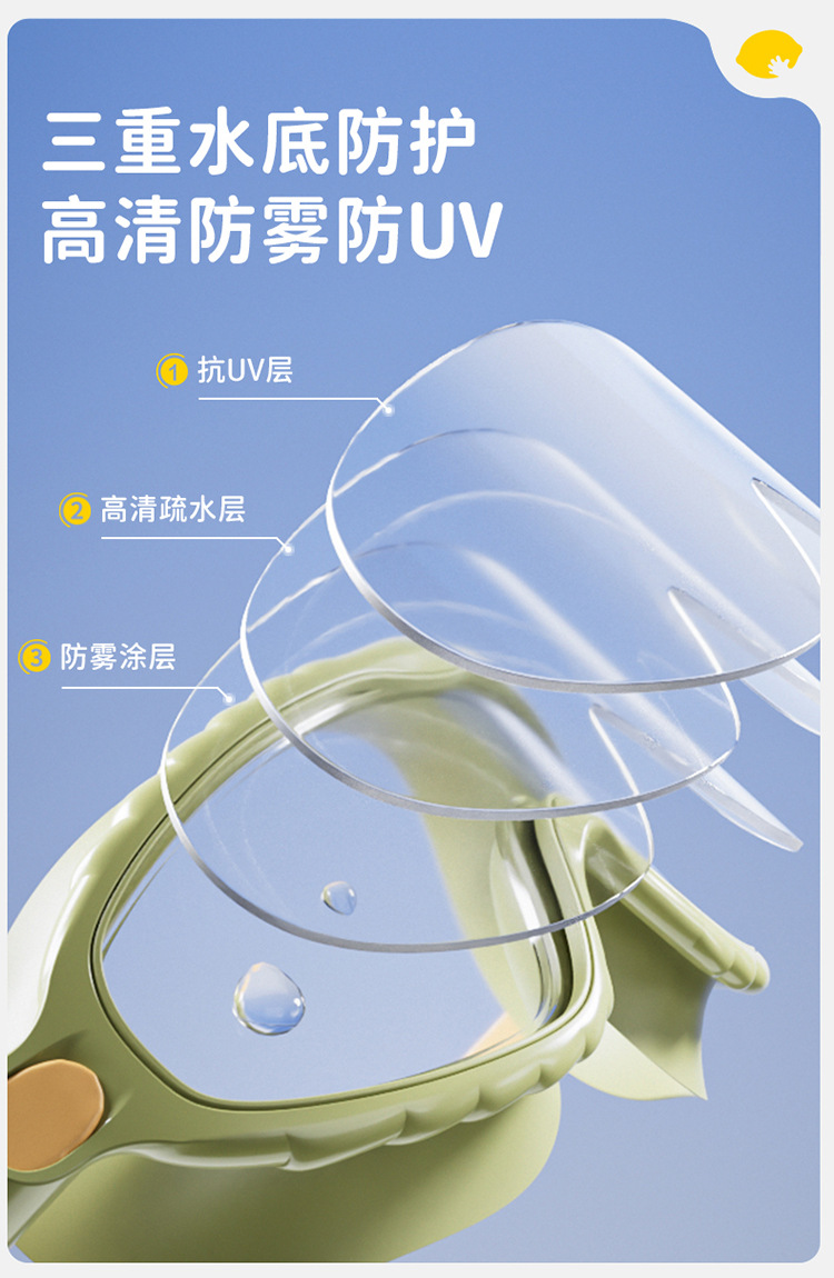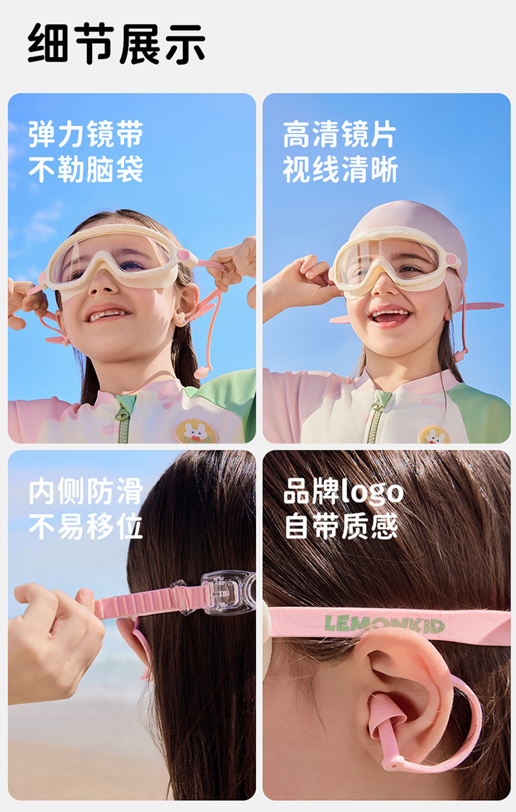 【防水防雾抗UV,探索高清水底世界】柠檬宝宝儿童泳镜 防水防雾高清大框游泳眼镜 男女童护目镜潜水装备-QQ