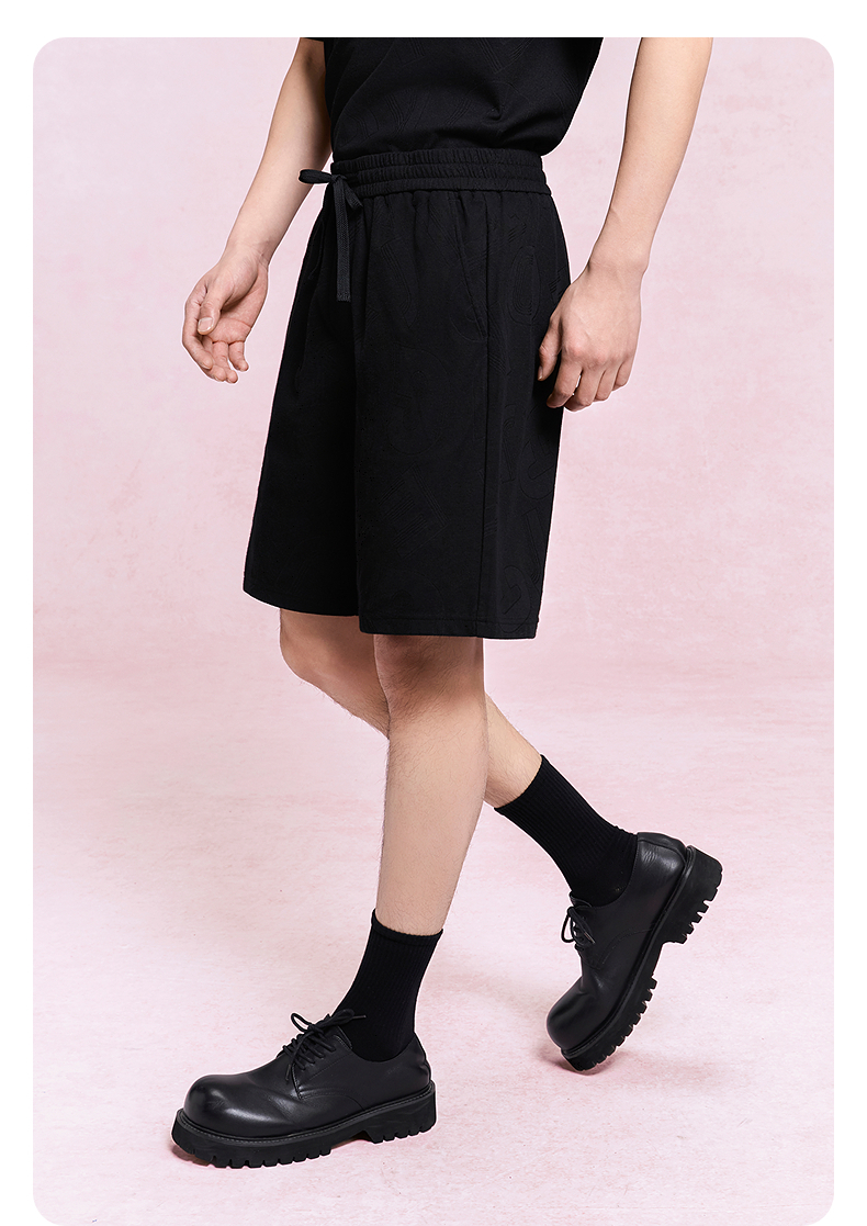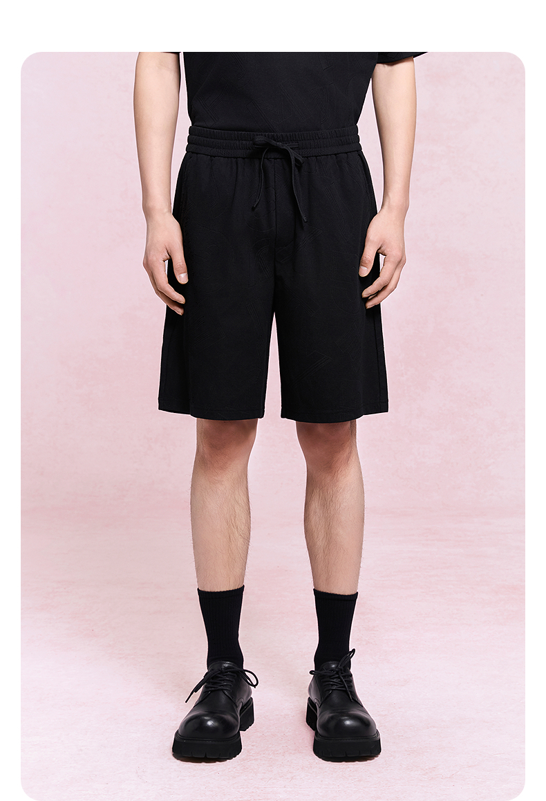 GXG男装 宽松针织提花短袖通勤休闲五分裤简约裤子 25年夏季热卖
