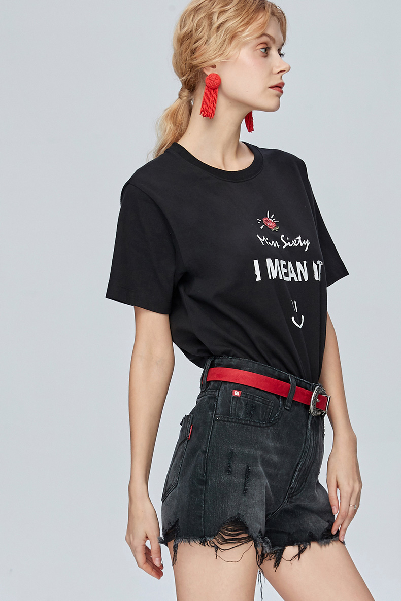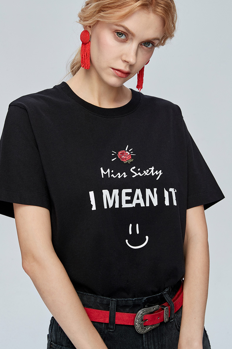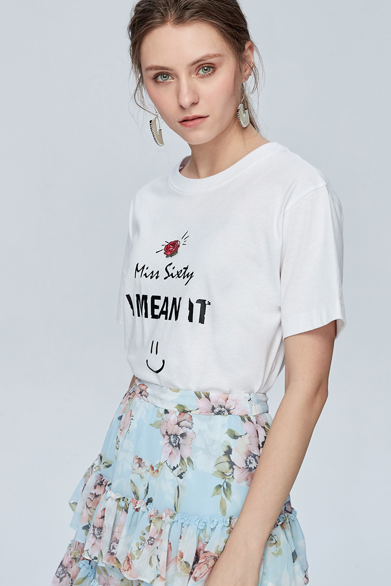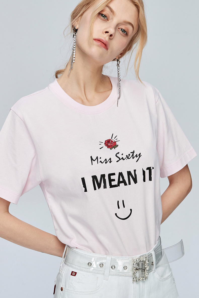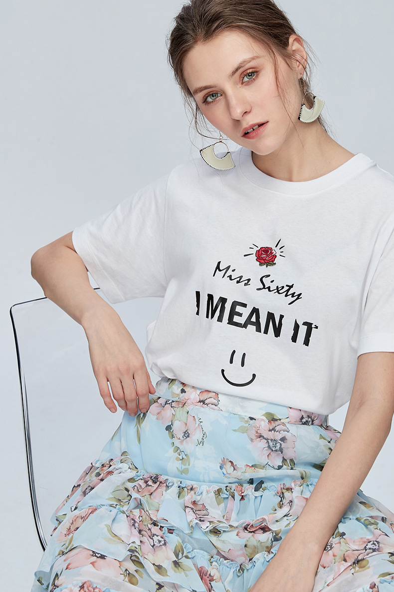 Miss Sixty纯棉字母印花上衣宽松圆领亲肤短袖T恤女ins潮692SJ8340000