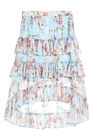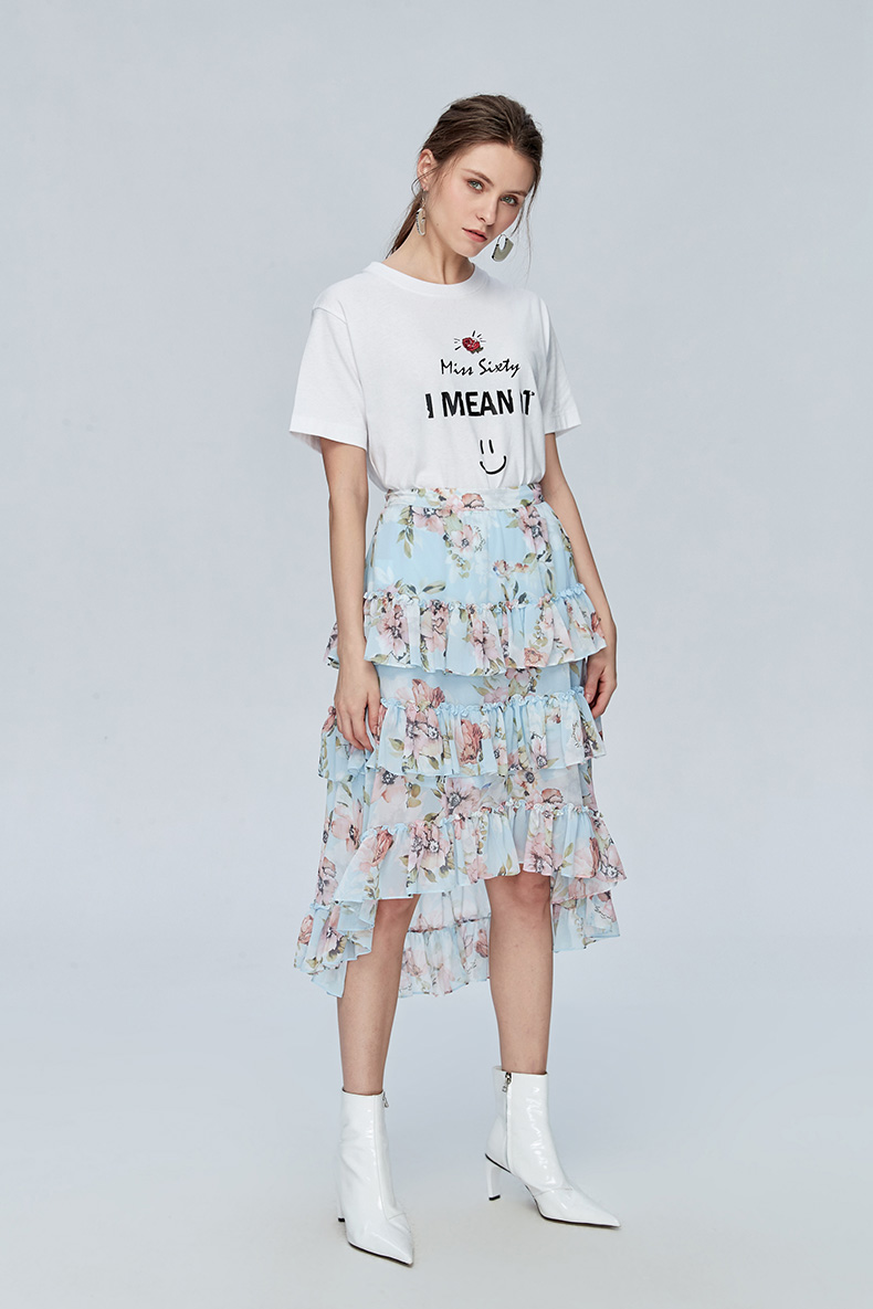印花荷叶边雪纺半身裙