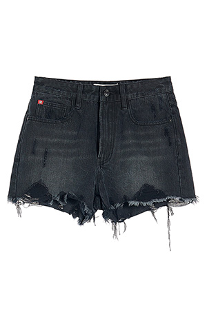 破洞毛边阔腿牛仔短裤