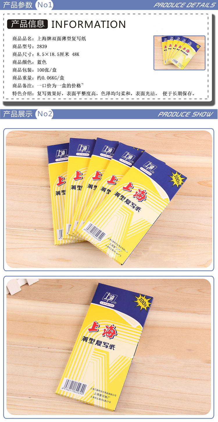 上海复写纸(蓝色双面/48K)SH2839