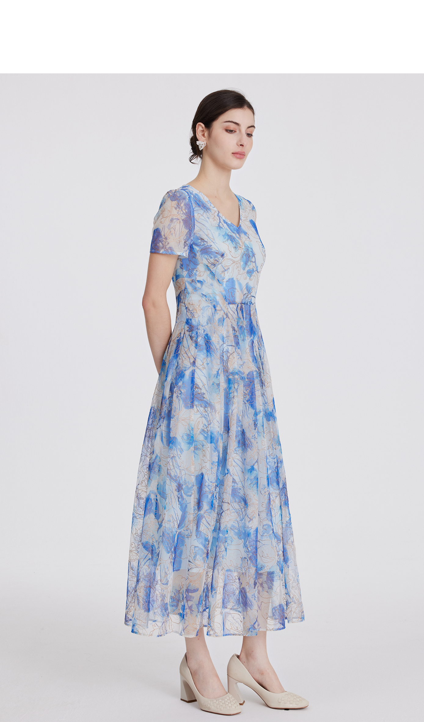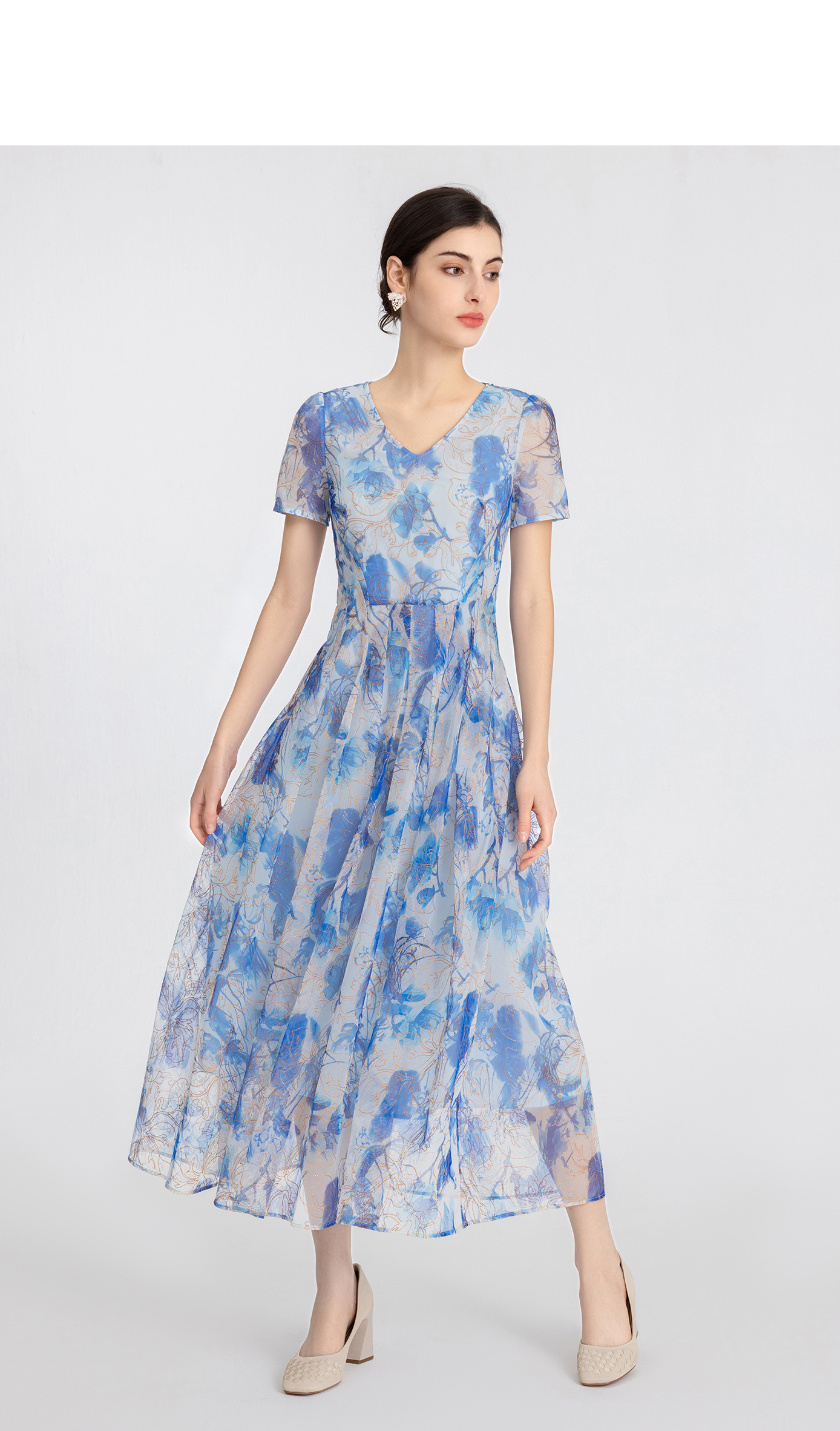 司歌刺绣印花连衣裙收腰短袖长裙A891191X
