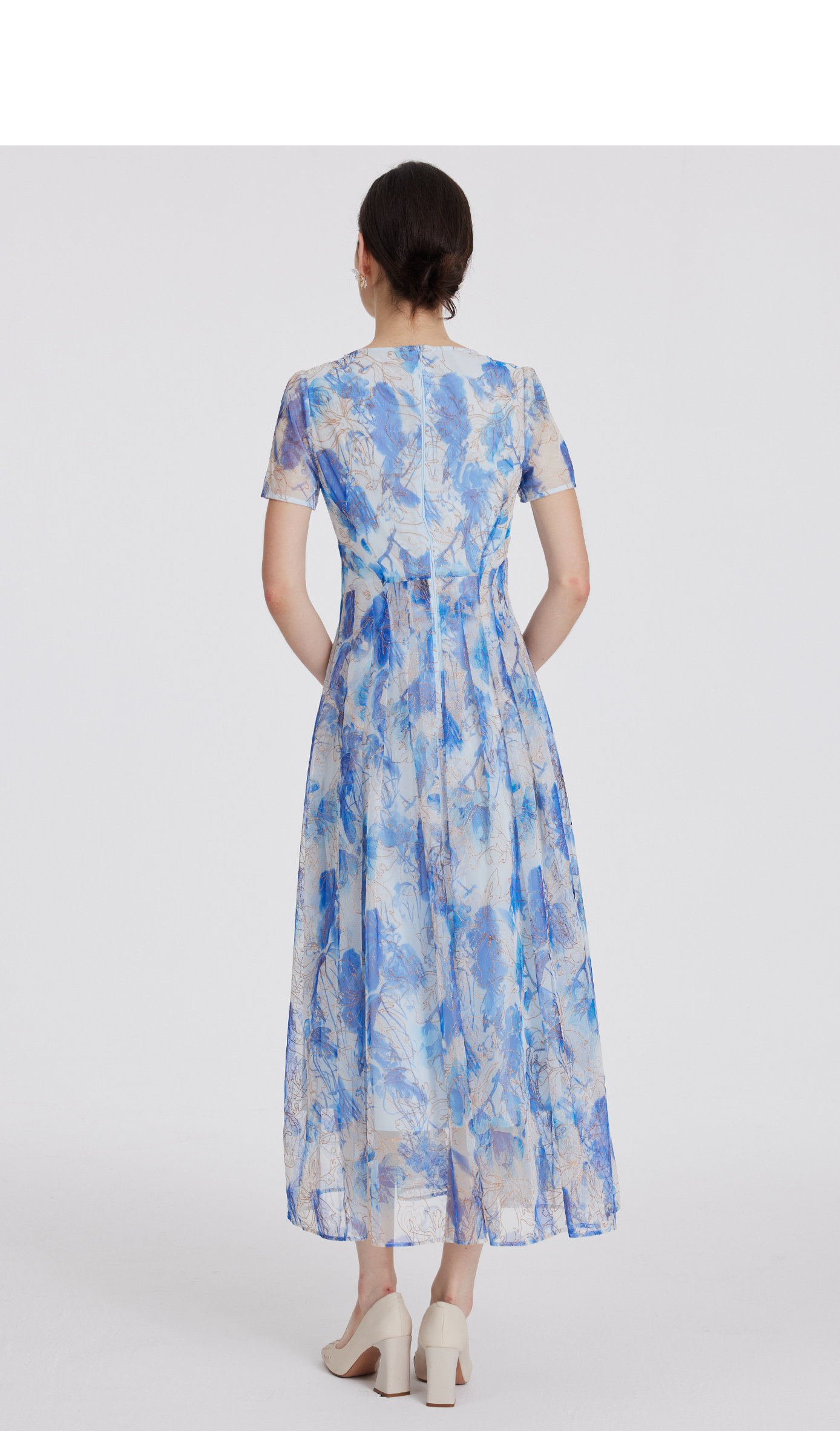 司歌雪纺水墨印花短袖连衣裙收腰国风EA891353X