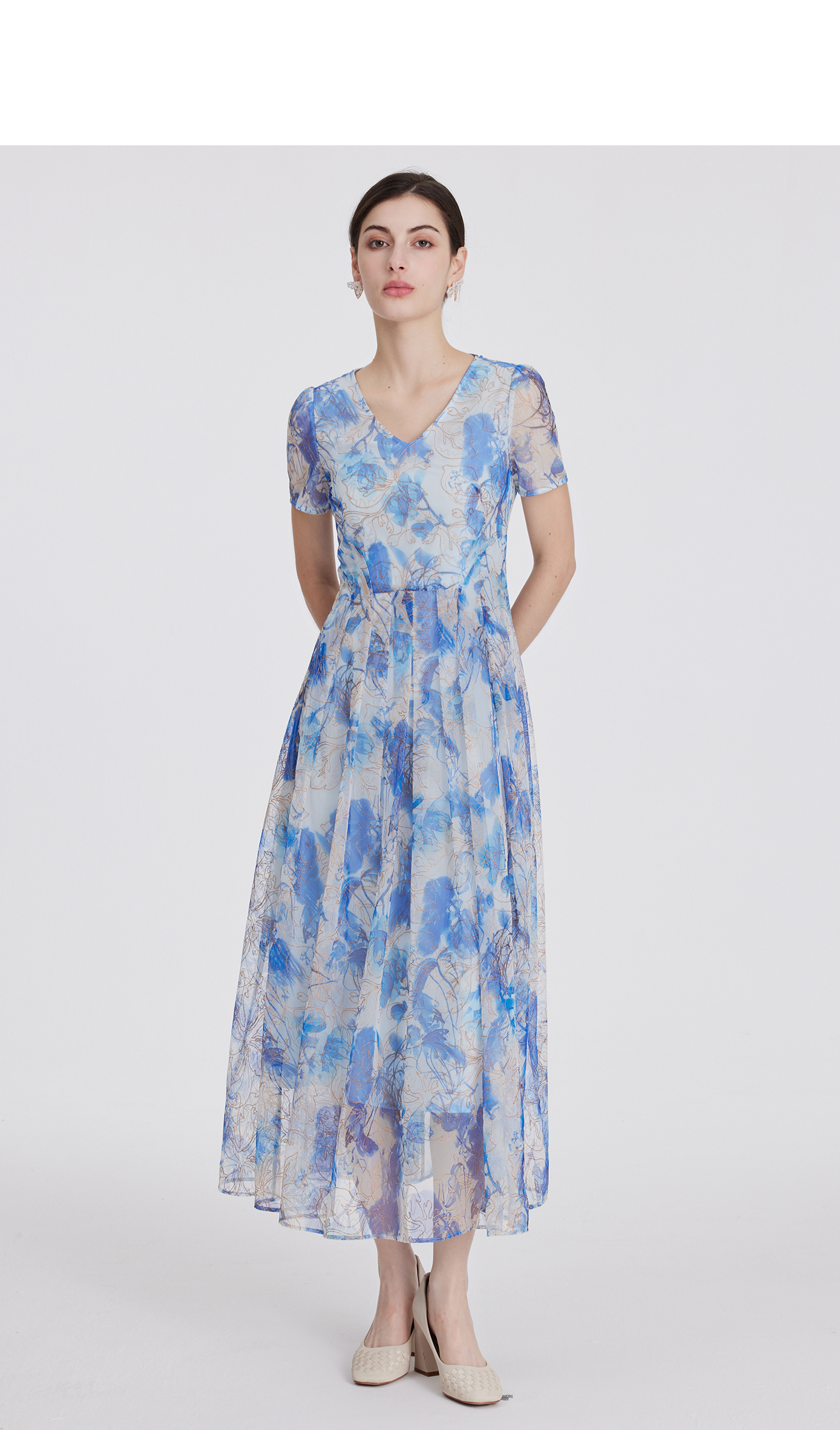 司歌收腰显瘦短袖度假裙连衣裙雪纺中长款裙A911323X