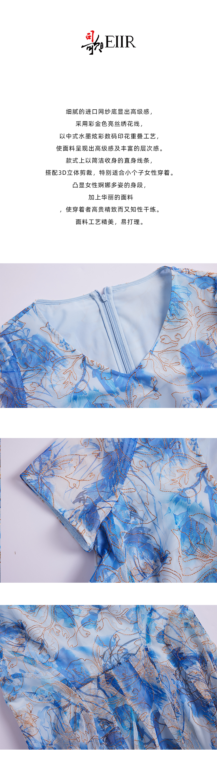 司歌新中式气泡刺绣修身连衣裙A891098X