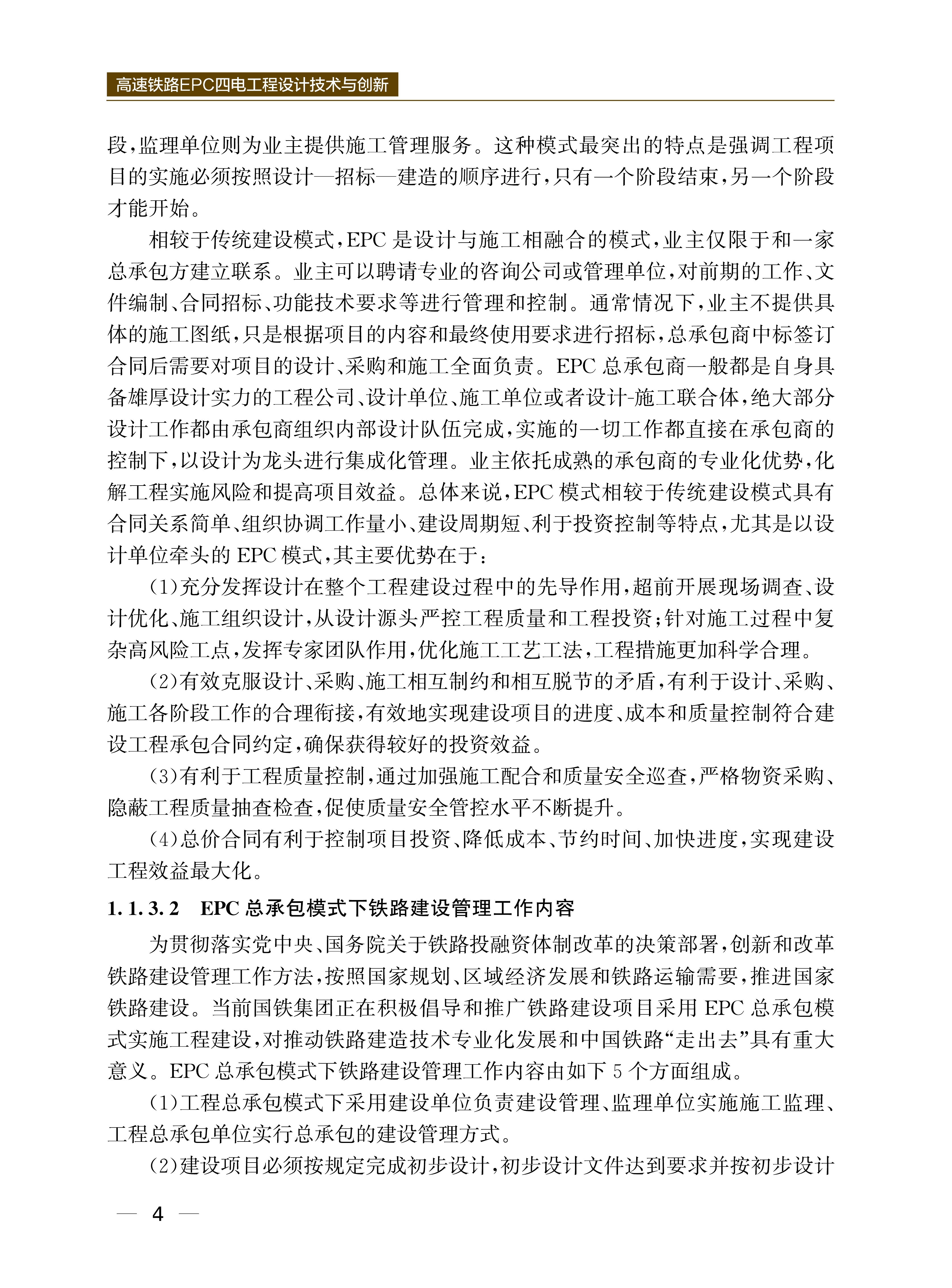 本书《高速铁路EPC四电工程设计技术与创新》为《高速铁路EPC四电工程技术与管理丛书》中的一种,全书共6章。第1章介绍了EPC工程总承包和四电系统集成基本特点和要求;第2章讲述了高速铁路EPC通信系统设计技术方案、技术要求和设计接口等;第3章讲述了高速铁路EPC信号系统设计技术方案、设计接口及工程细节设计等;第4章讲述了高速铁路EPC牵引供电系统设计技术方案、系统技术要求及设计接口等;第5章讲述了高速铁路EPC电力系统技术方案及技术要求、设计接口、工程细节设计等;第6章从BIM技术、简统化接触网、智能供变电系统等方面重点讲述了高速铁路EPC四电工程设计技术的创新与应用。