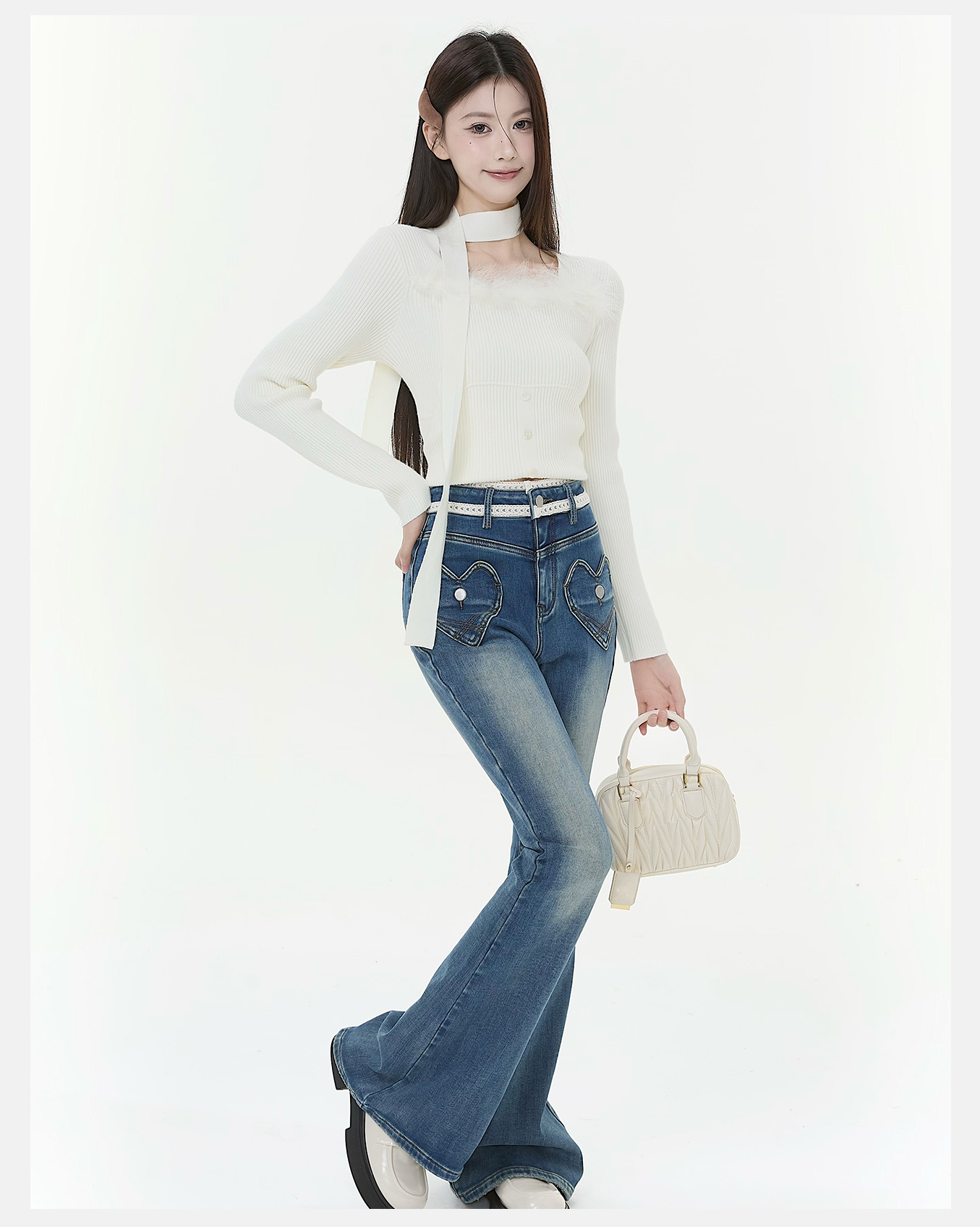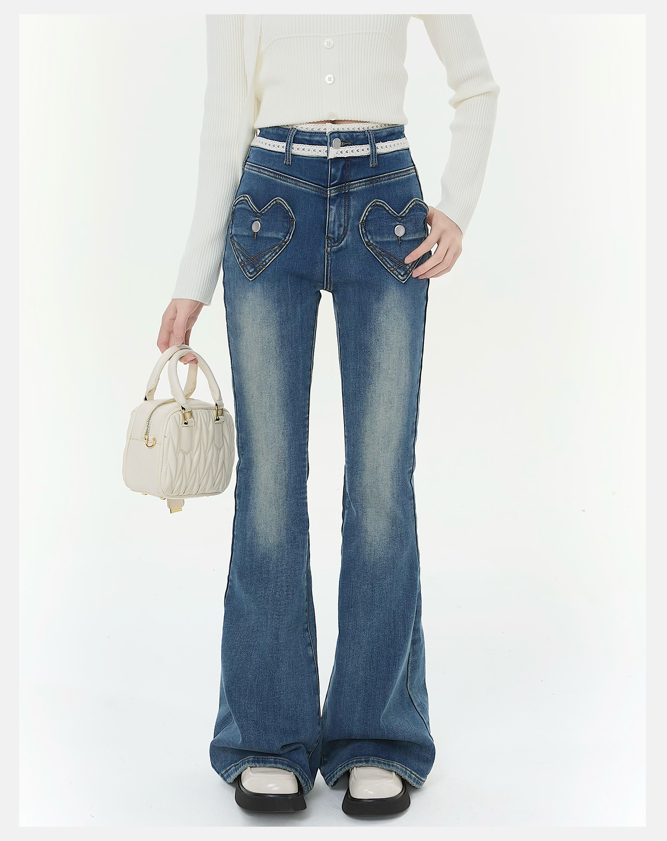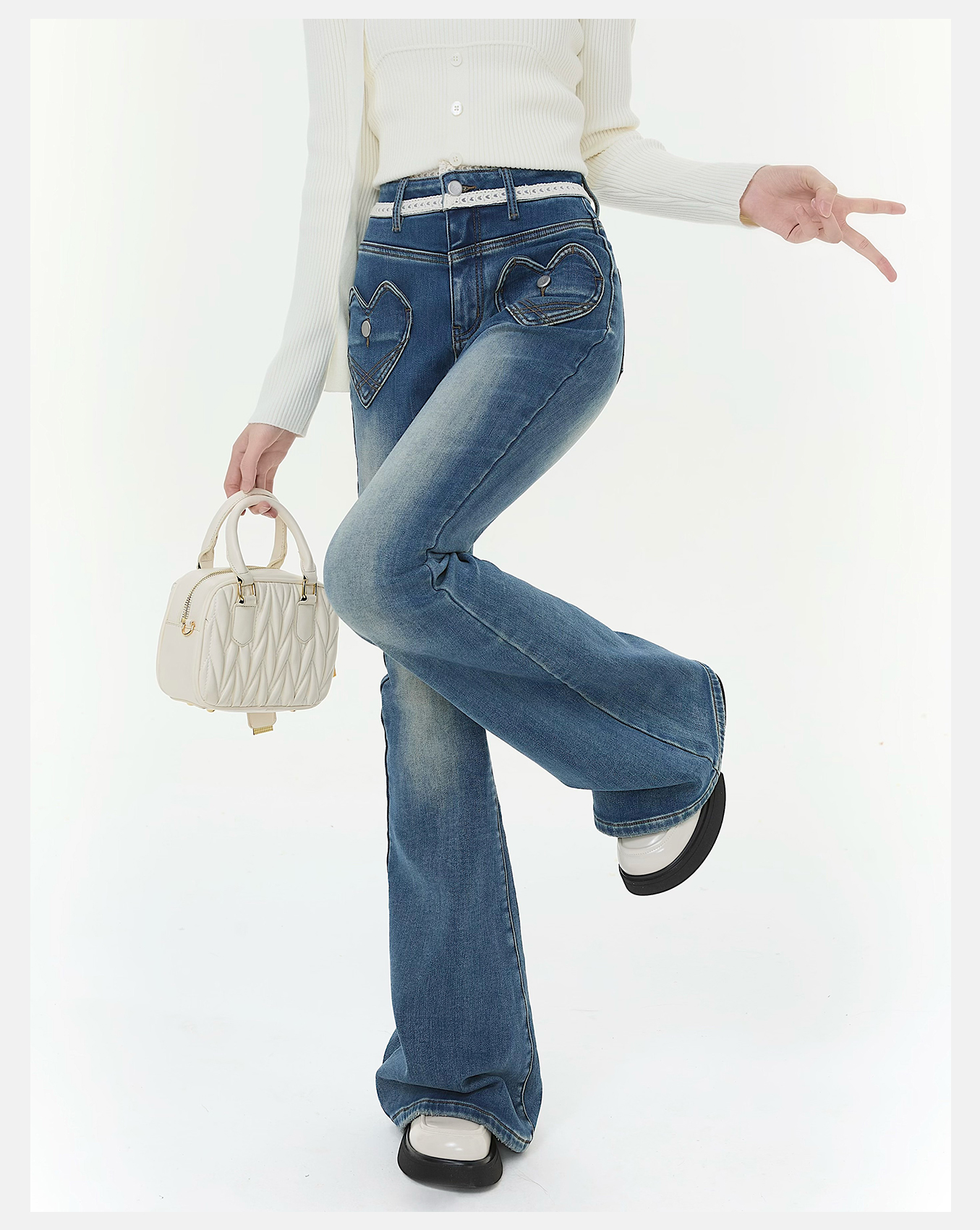 P&X设计师女装2025冬季女喇叭裤牛仔长裤复古港风 825410174 蓝色