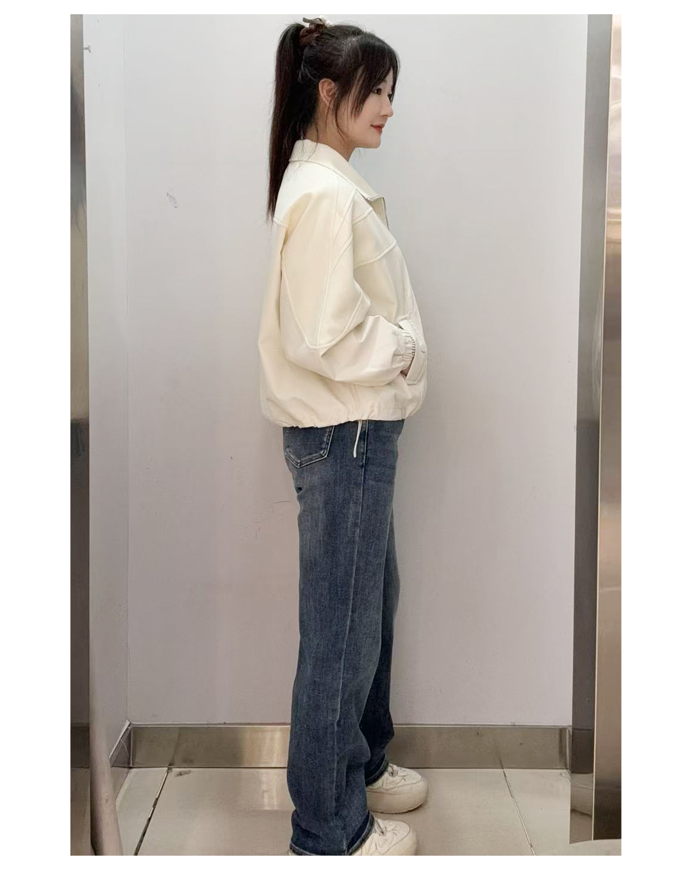 P&X设计师女装春季新款围脖设计梭织短款大衣825134039 杏色
