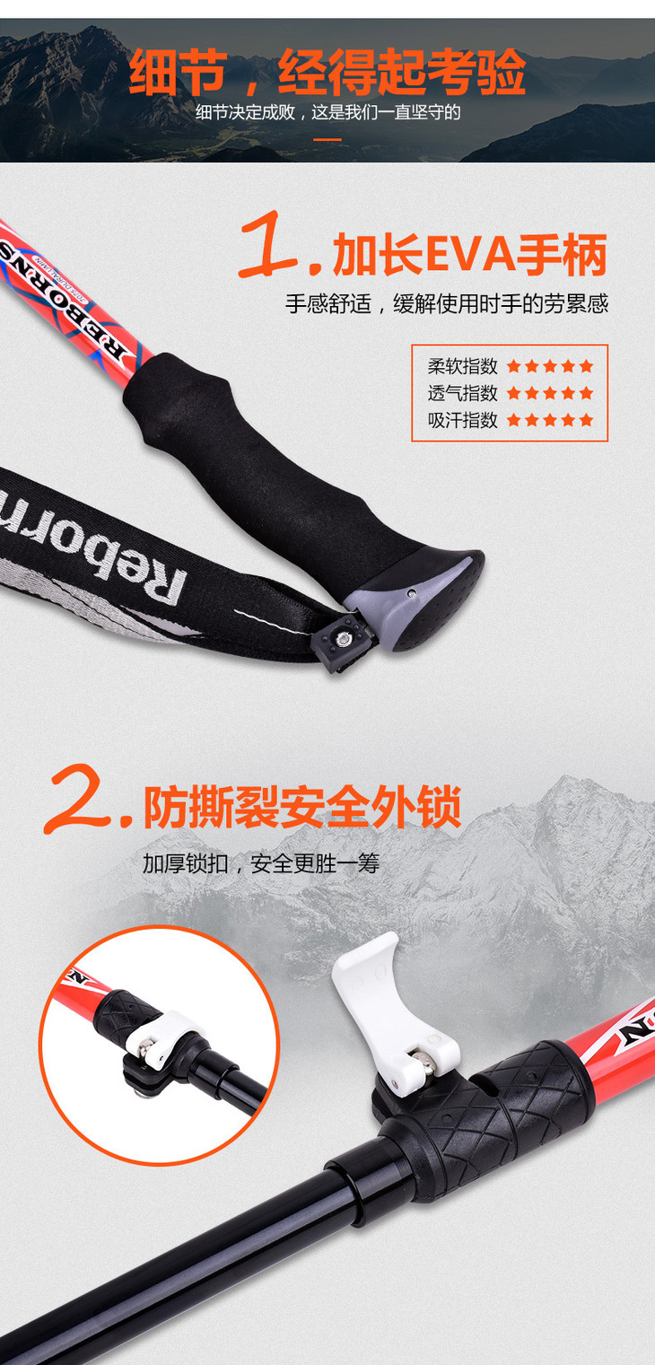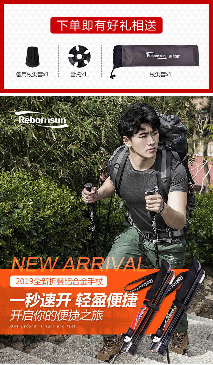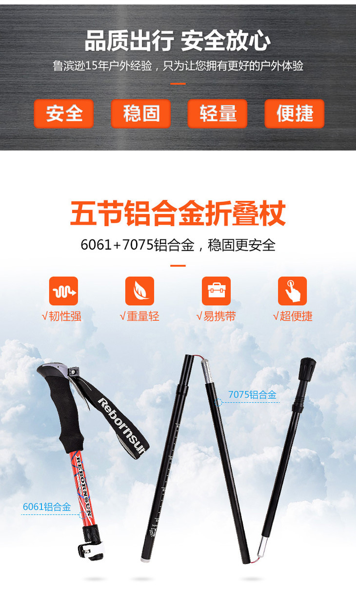 【2根95折】鲁滨逊 登山杖 折叠铝合金超轻伸缩户外五节超短越野跑拐杖徒步手杖 RBZD0304