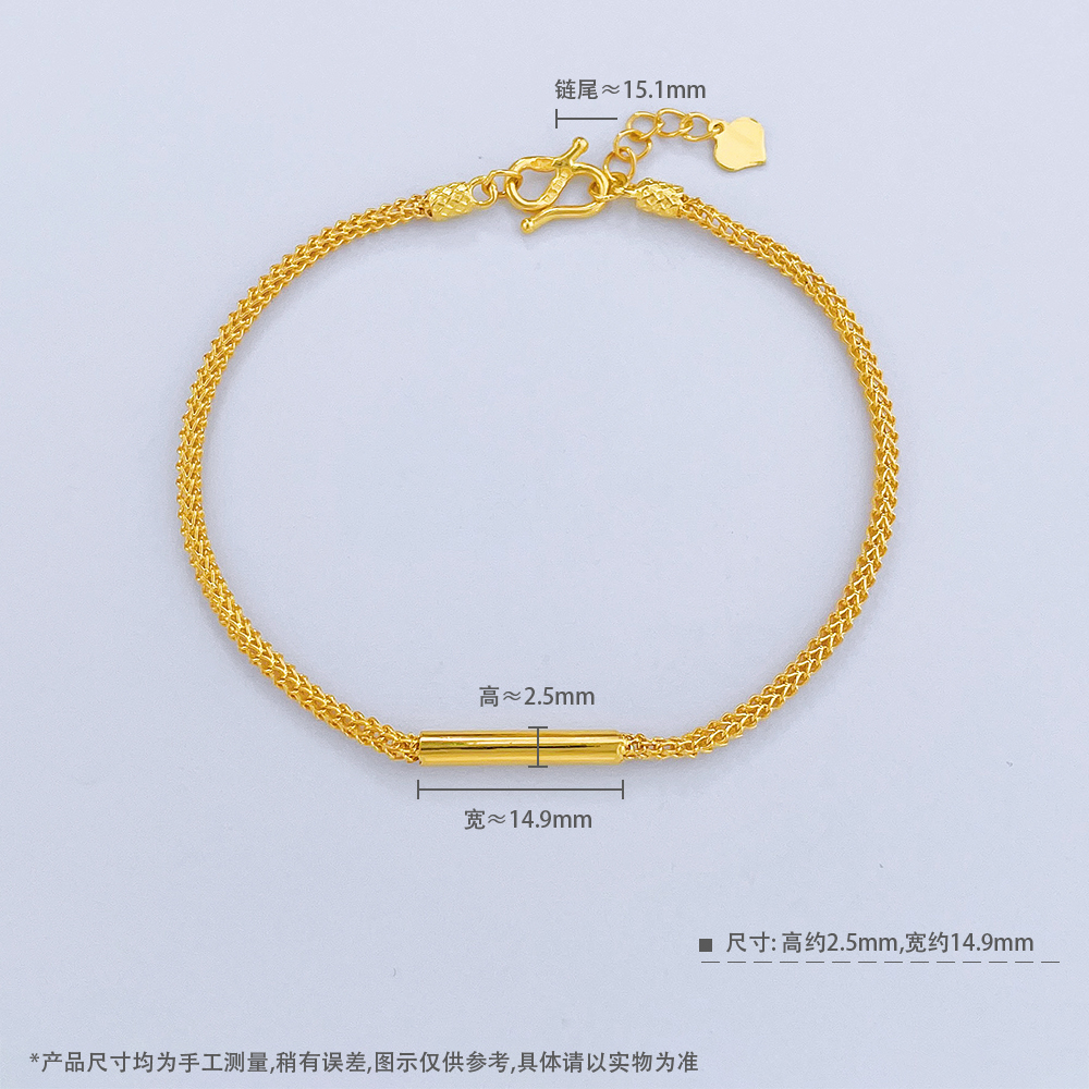 【限时克减150元】足金999.9 调节一字形圆管手链(AF050SL00085)(预售产品下单后不退款不退货不换货不补差价)