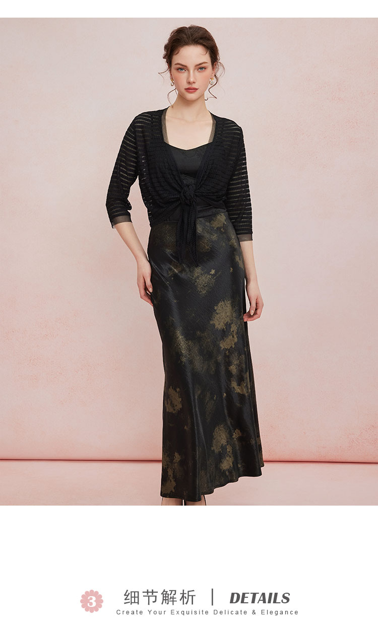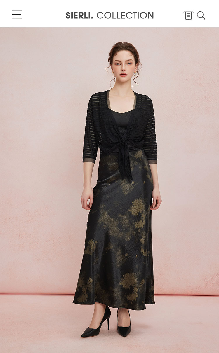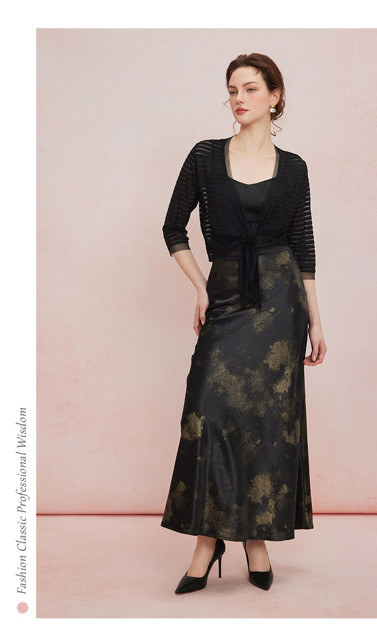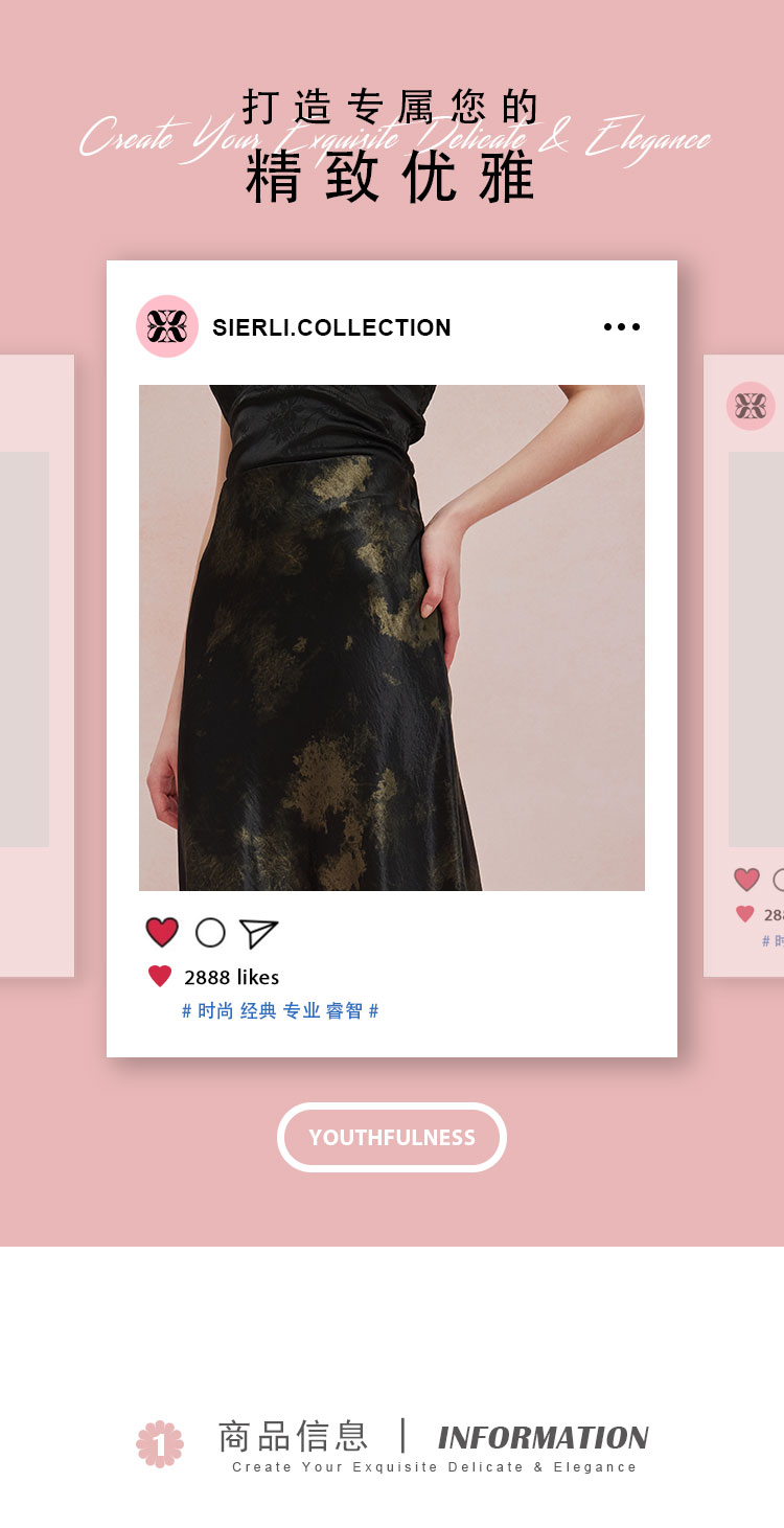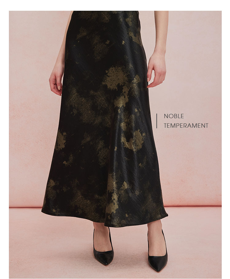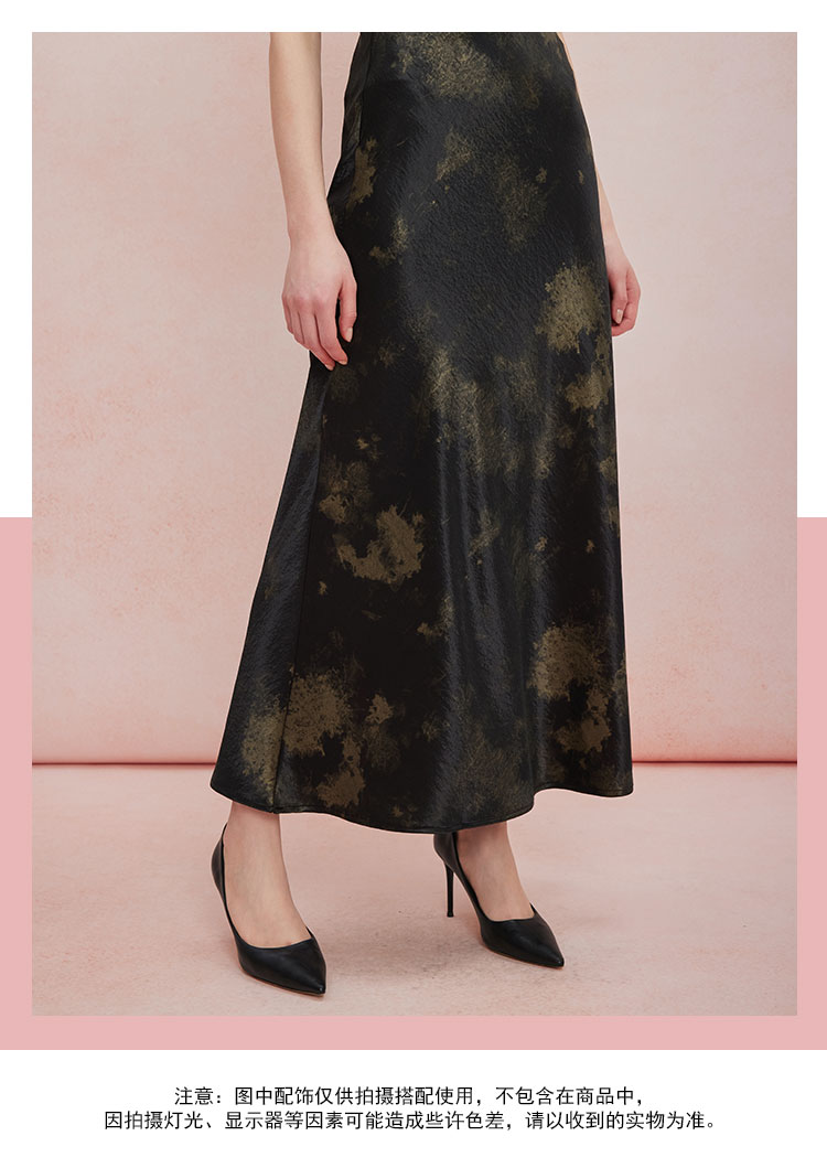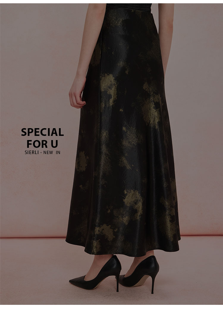 QF504斯尔丽25新款扎染印花半裙悬垂线条流畅气质高雅时尚百搭半身裙