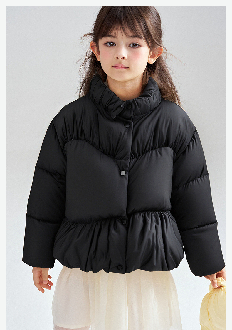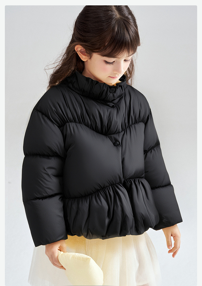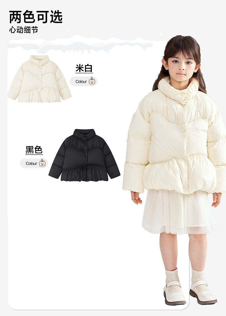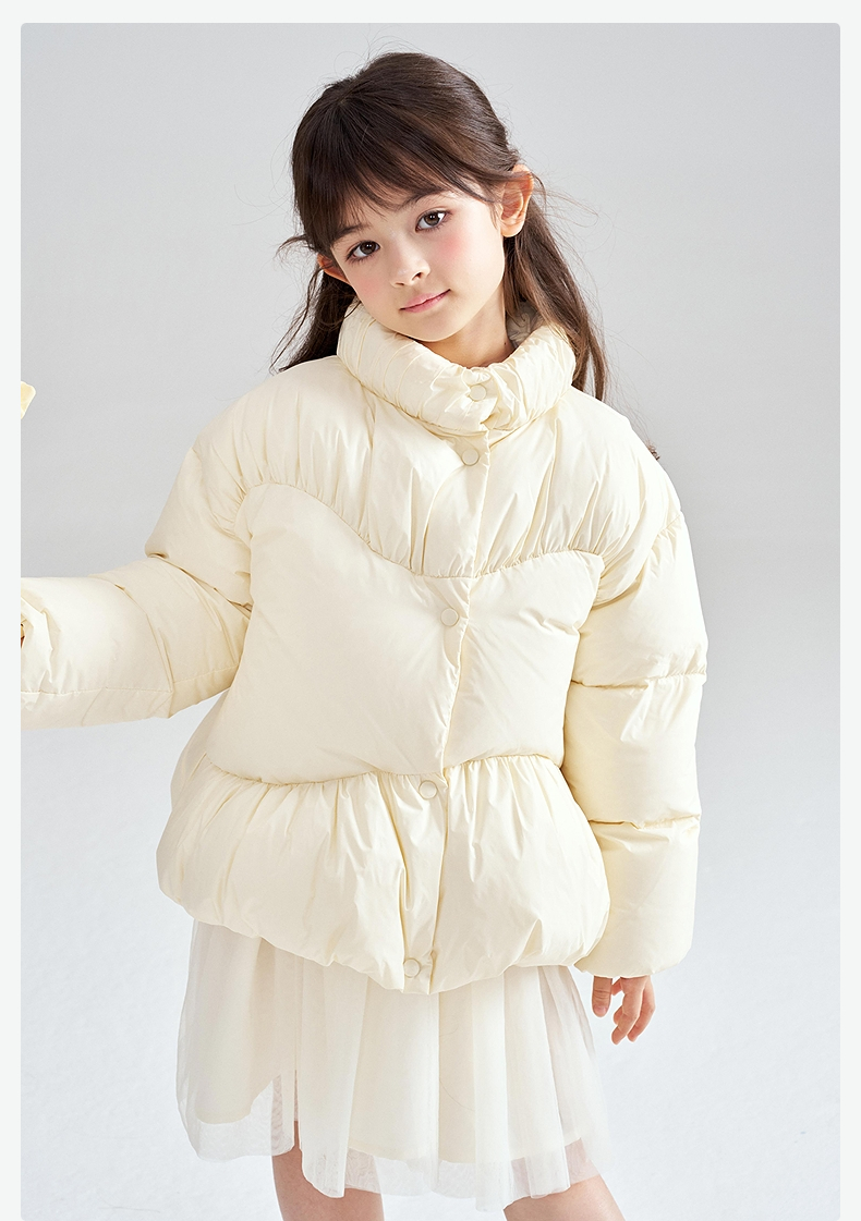 笛莎Deesha 2025冬季新款女童三防抗菌绒甜美花苞立领羽绒服