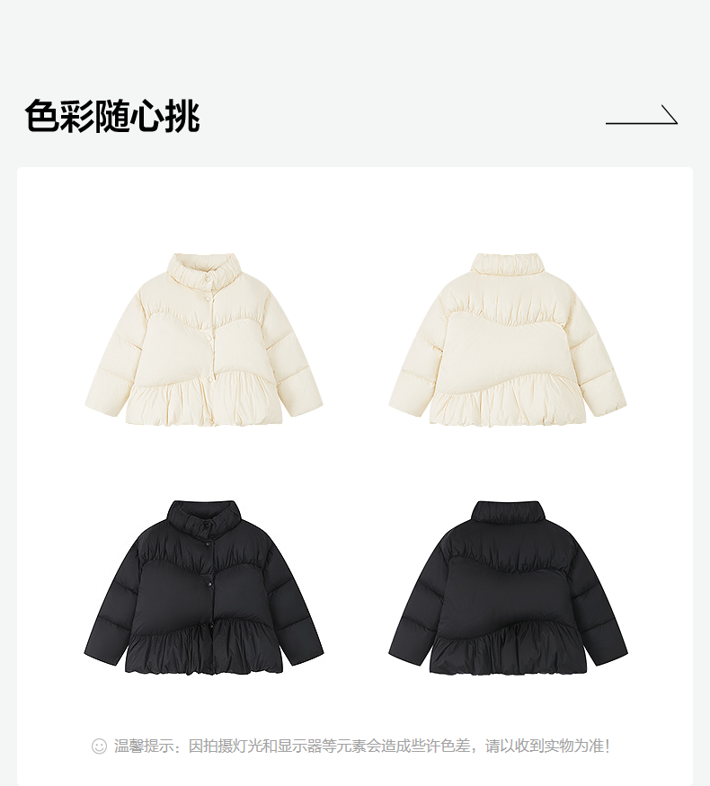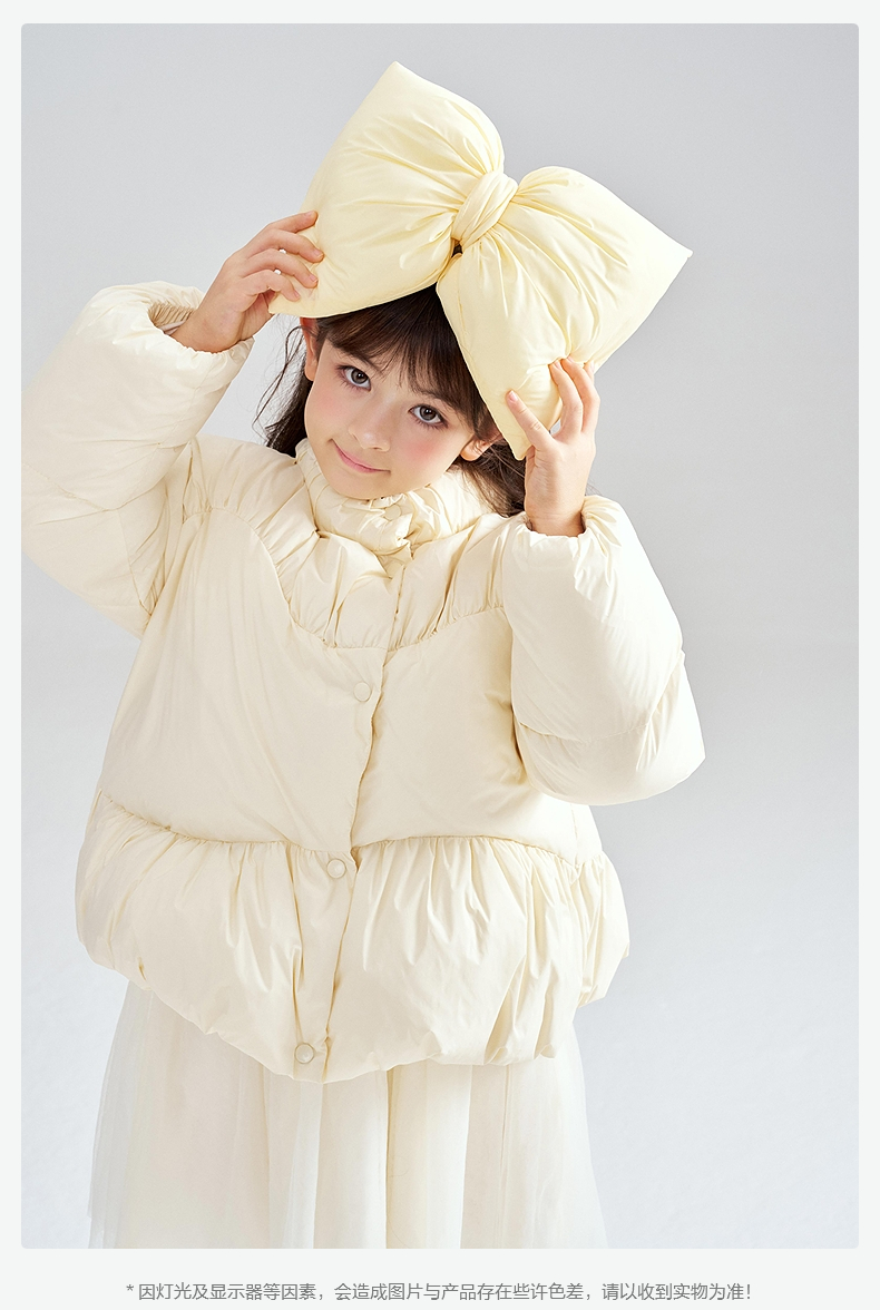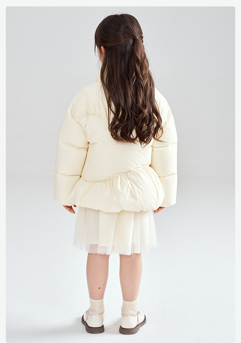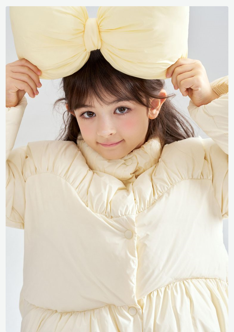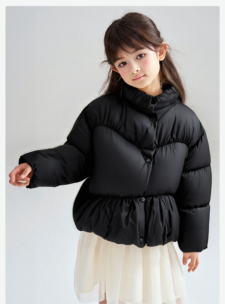 笛莎Deesha 2025冬季新款女童三防抗菌绒甜美花苞立领羽绒服