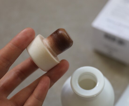 橡胶塞 要用力拧出来 瓶身是白色的磨砂陶瓷 高约13.5cm