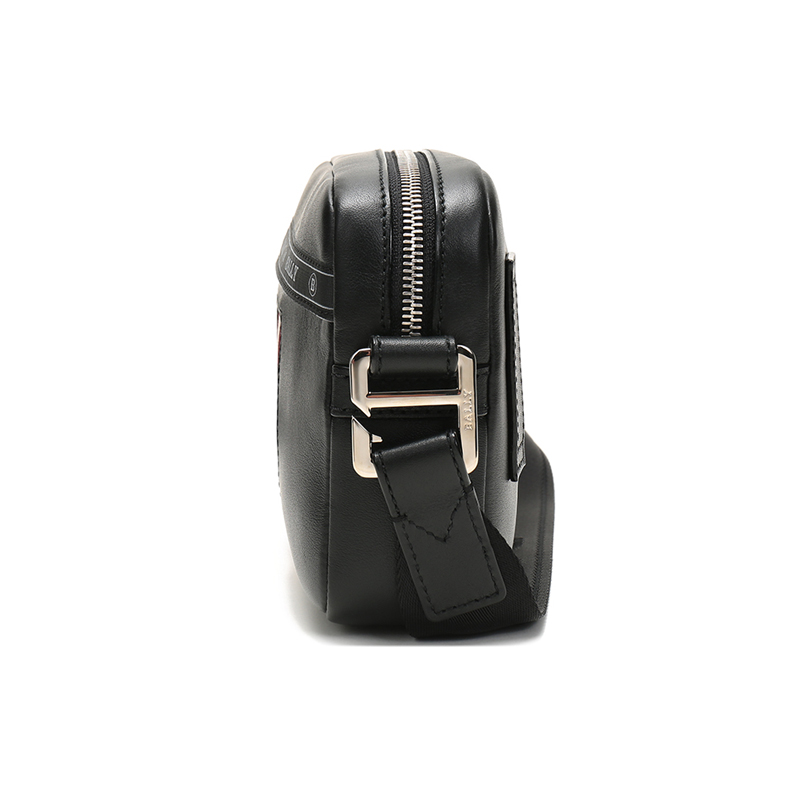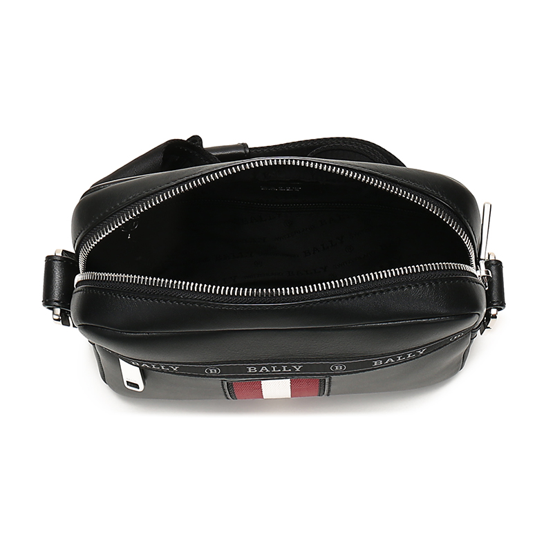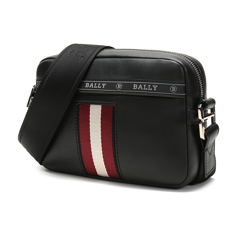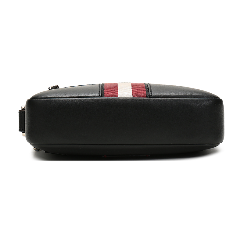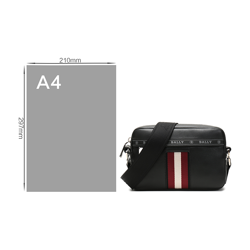 品牌:BALLY/巴利产地:中国等国(批次不同,产地不同)款式:男士颜色:黑色红白条纹材质:牛皮结构:拉链开合,内置1个拉链贴袋,1个贴袋,外置1个拉链贴袋尺寸:宽约21cm,高约14cm,厚约5cm,可拆卸可调节肩带长约153cm,宽约4cm