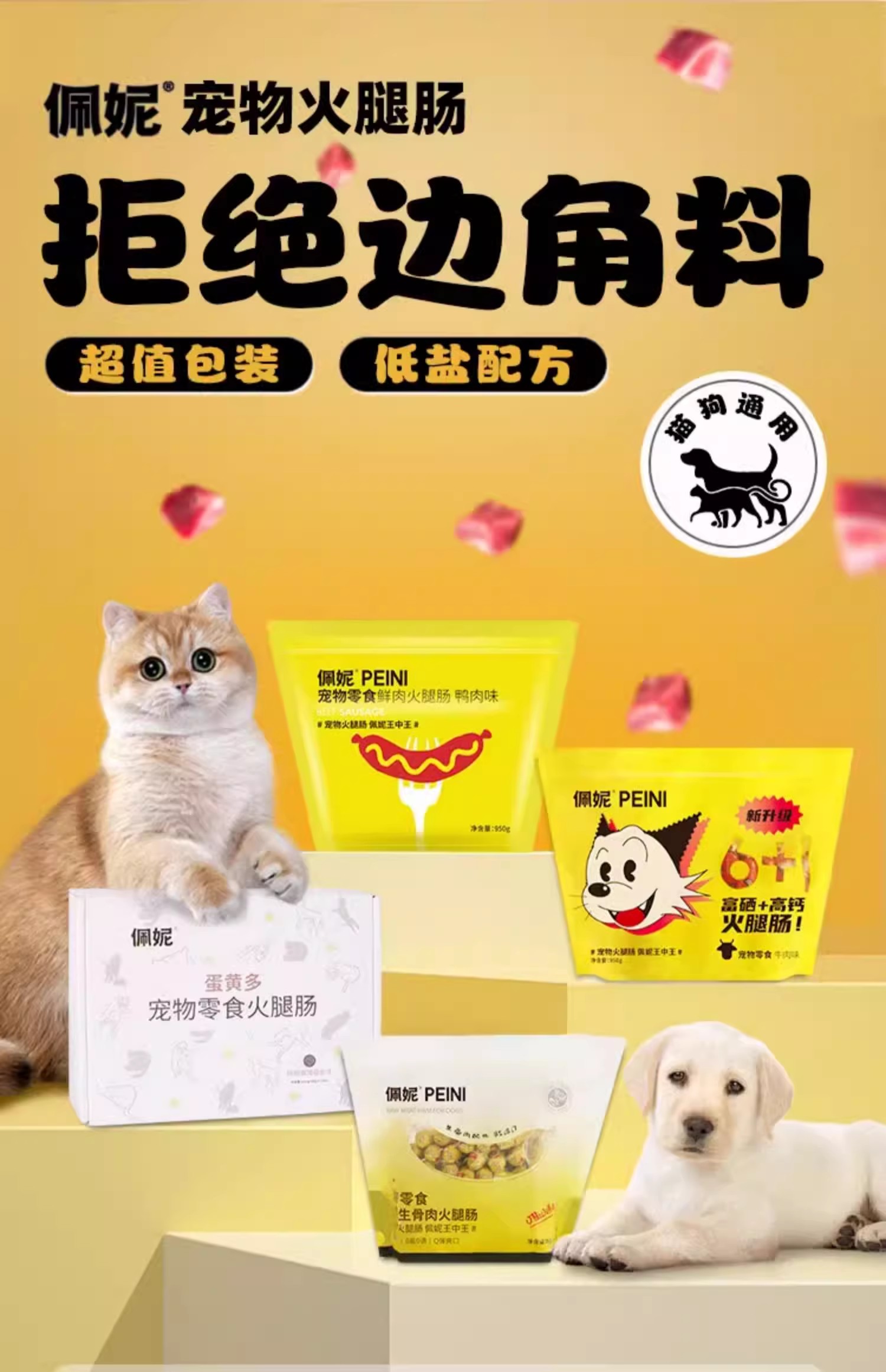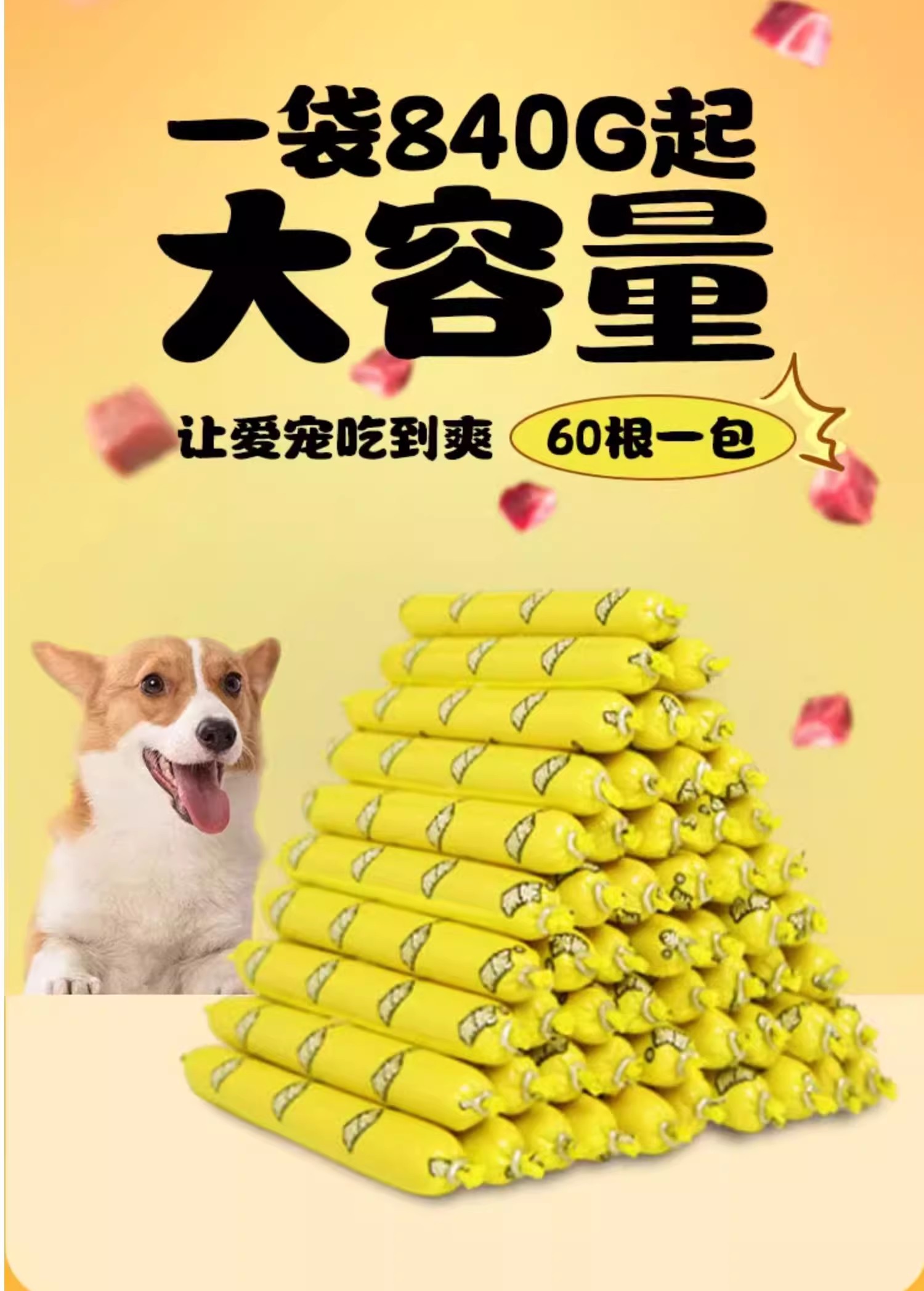 佩妮6+1 狗狗零食火腿肠补钙训练低盐鸡肉牛肉味香肠猫犬通用60根
