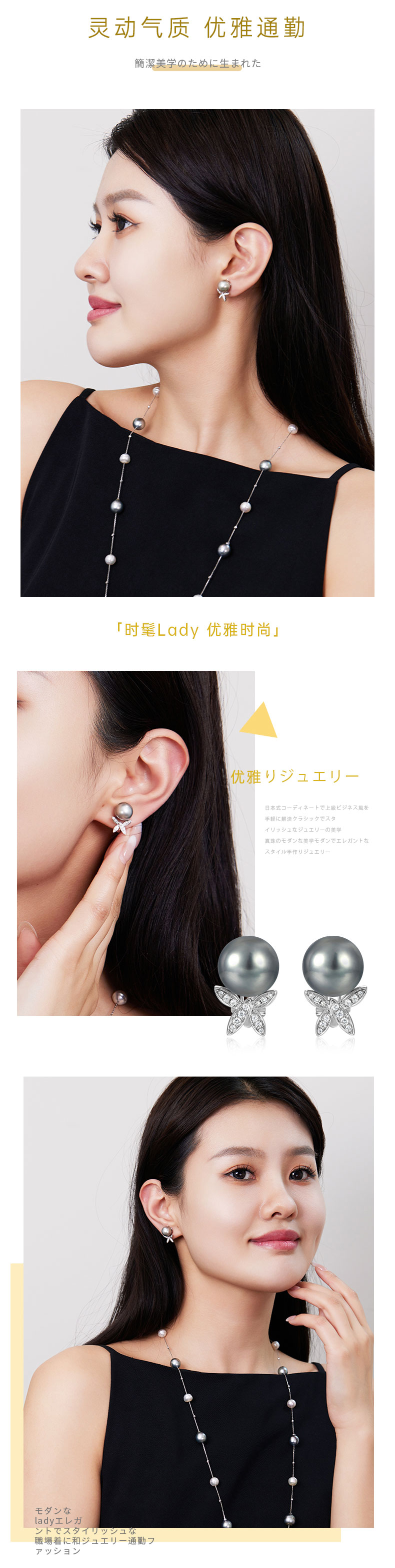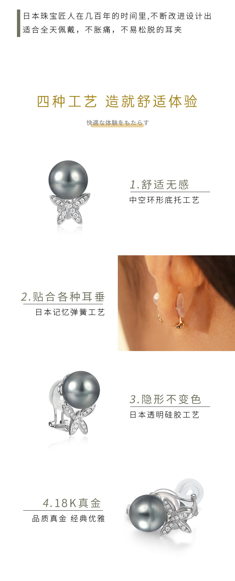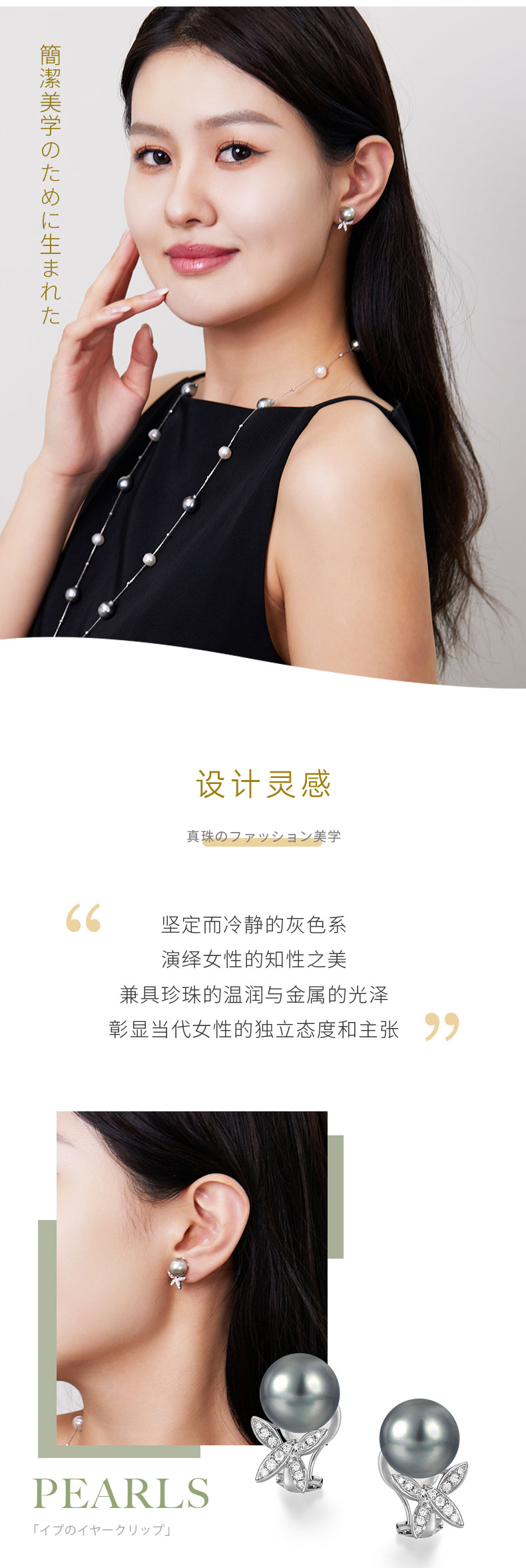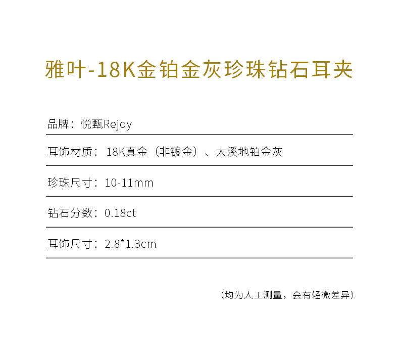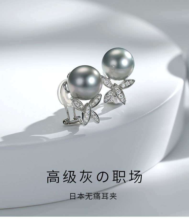 【天猫同款】悦甄 雅叶-18k金铂金灰珍珠钻石耳夹