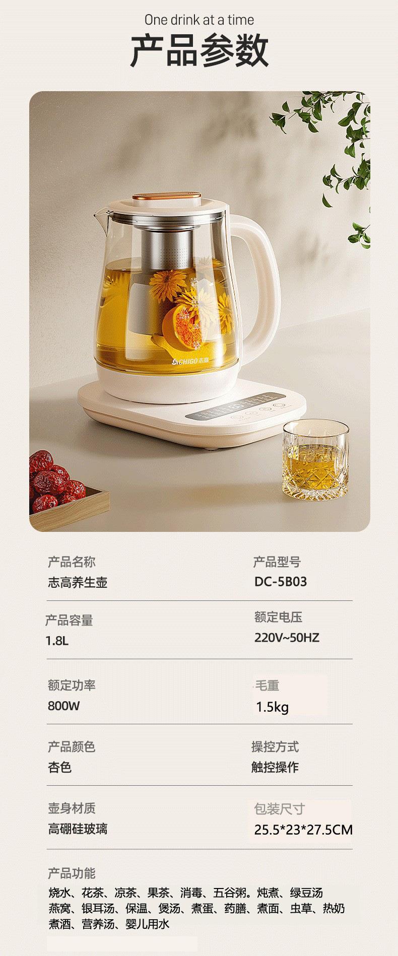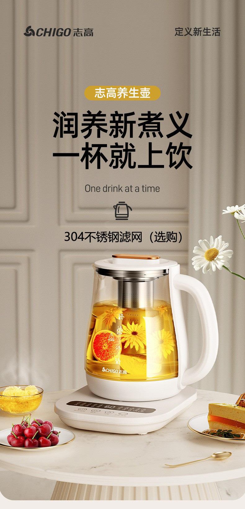 志高养生壶全自动加厚玻璃多功能煮茶器电热烧水壶花茶壶煎药壶
