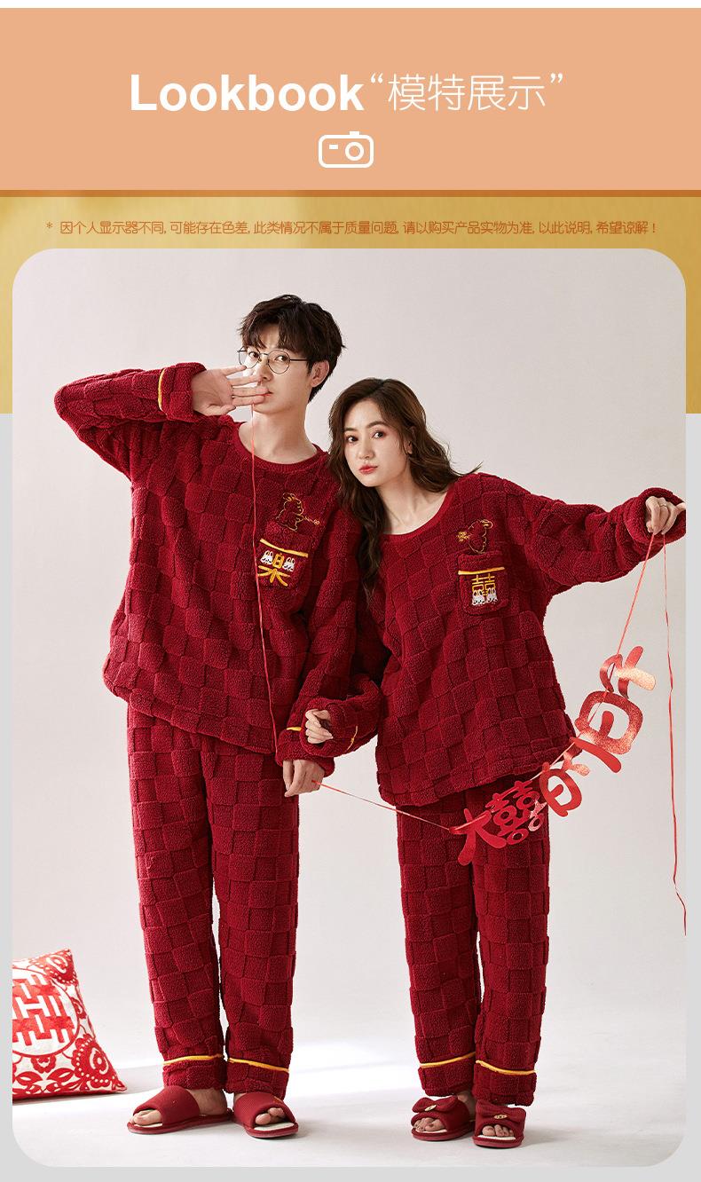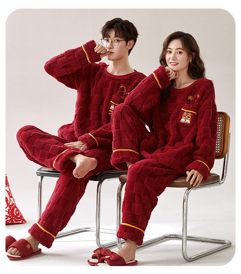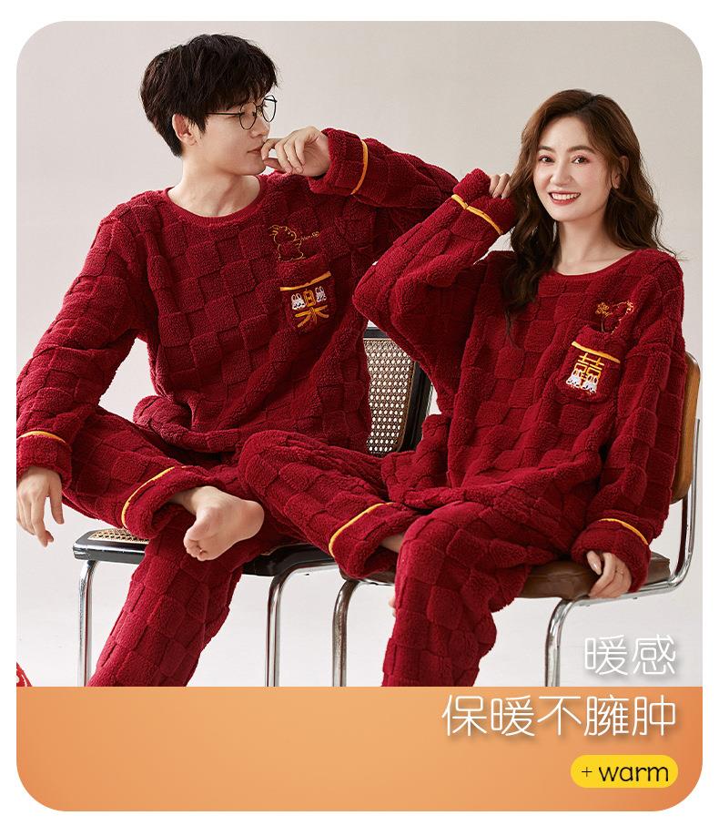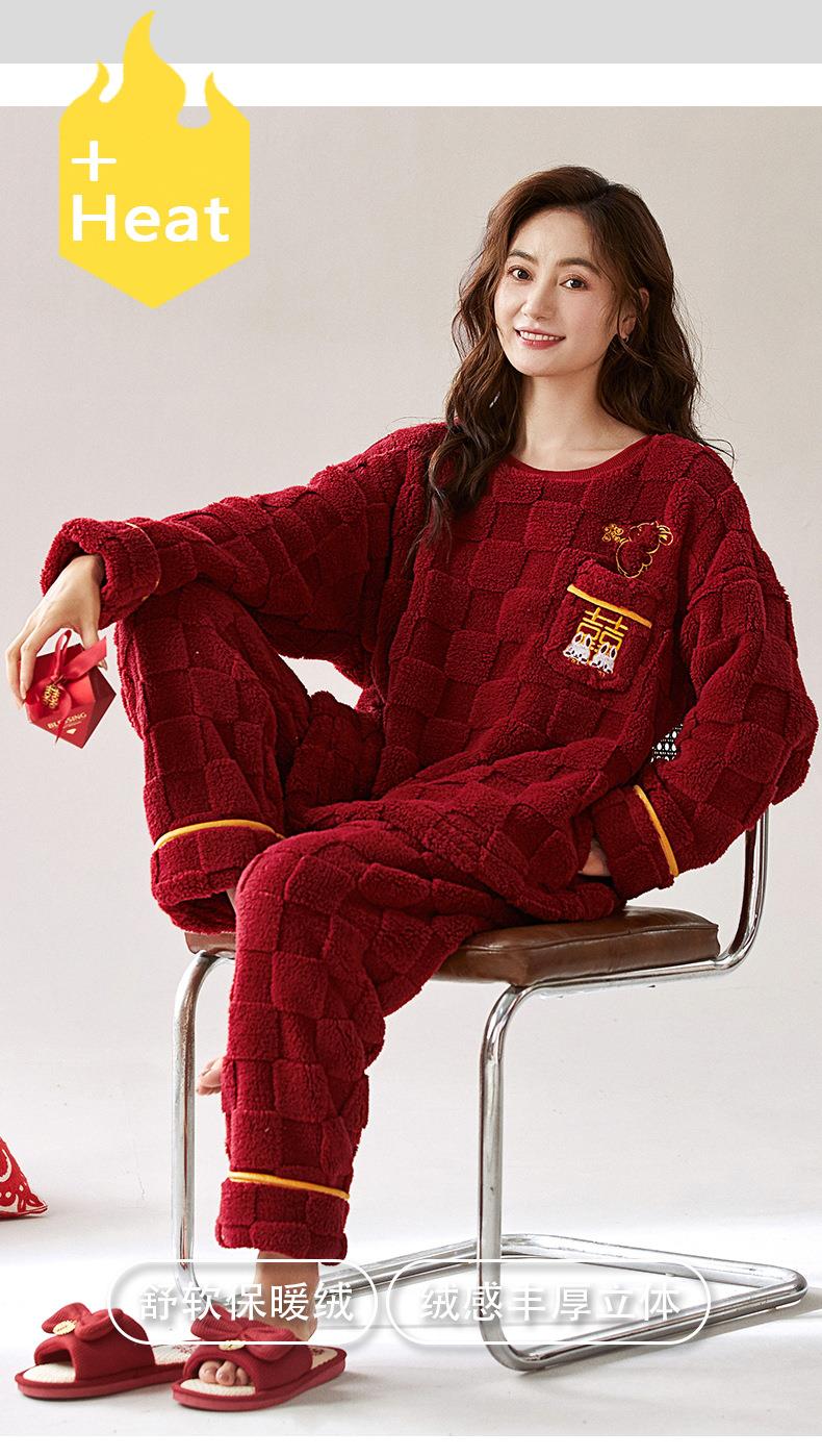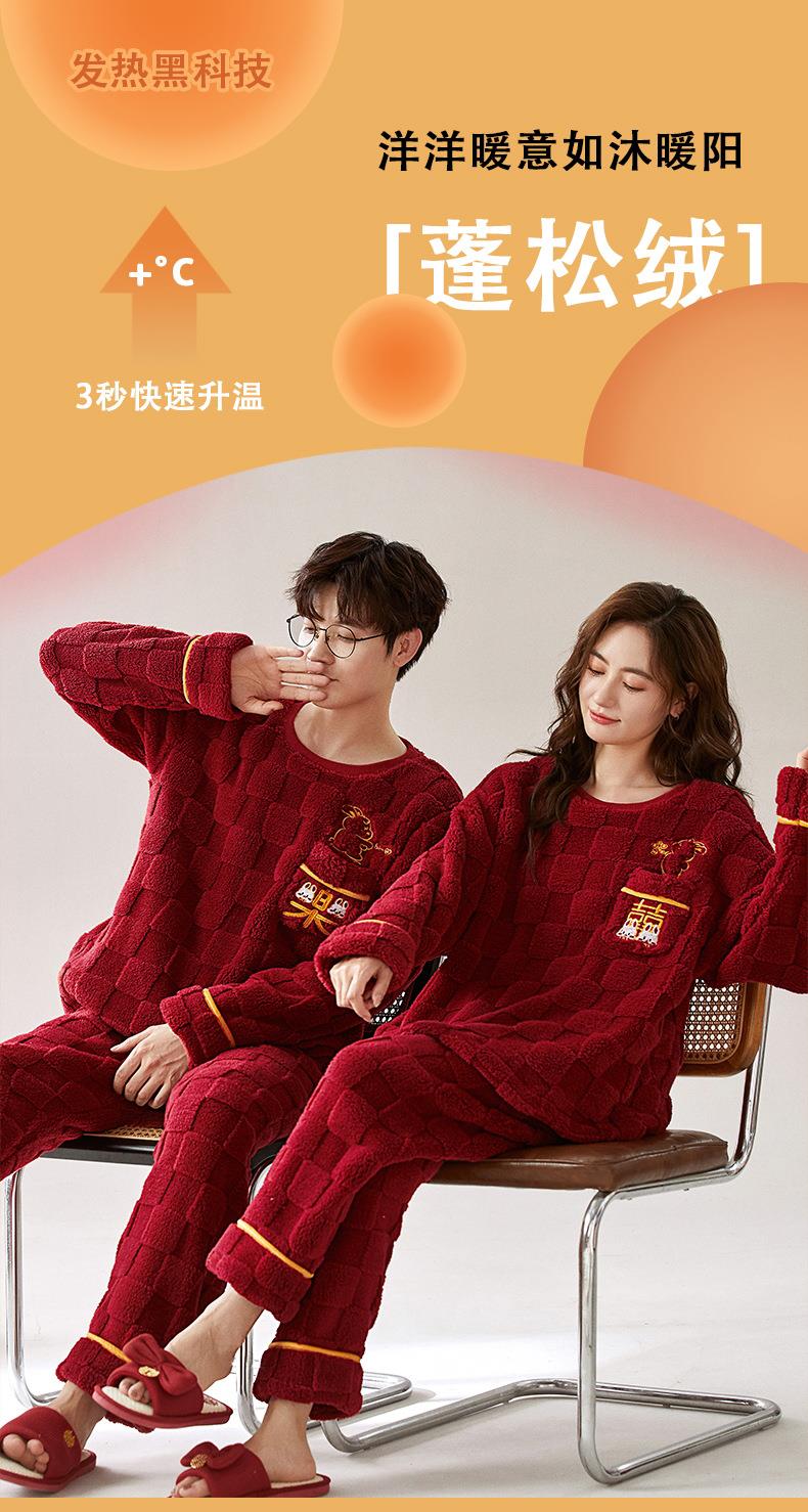 情侣睡衣秋冬珊瑚绒女士大红本命年结婚喜庆家居服法兰绒男士套装
