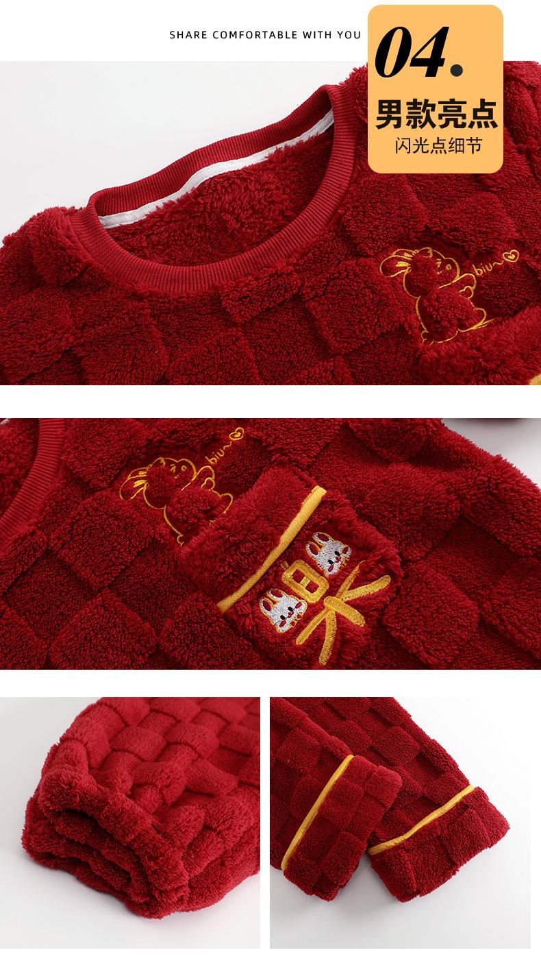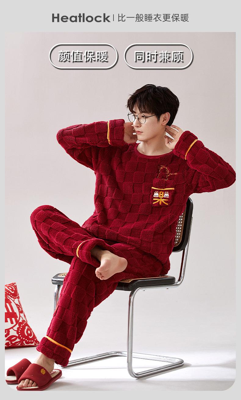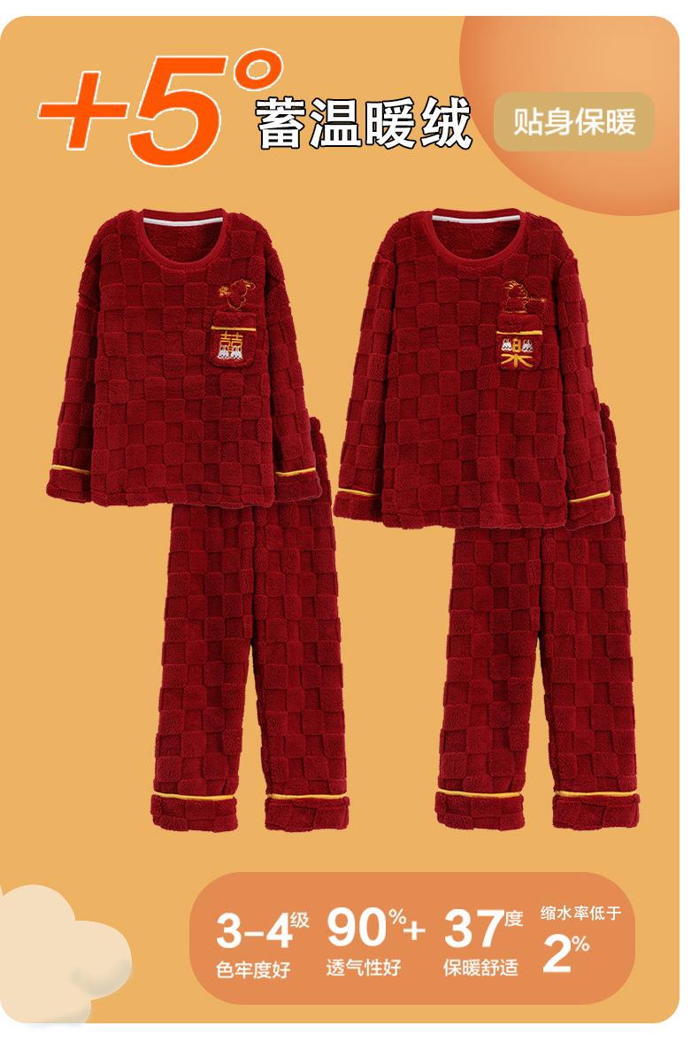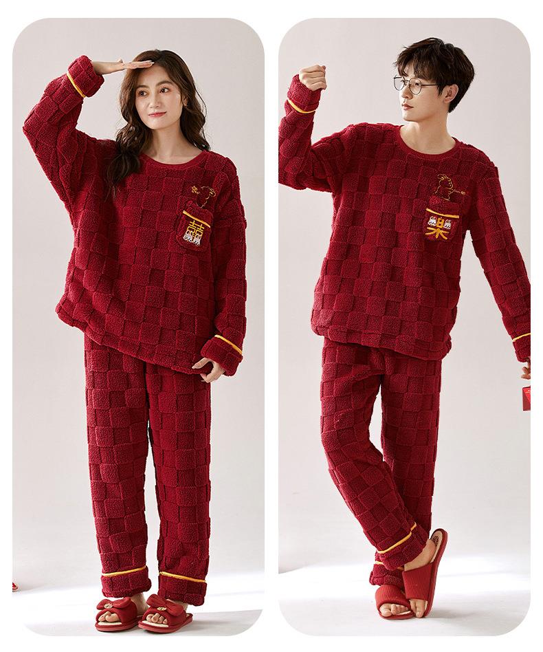 情侣睡衣秋冬珊瑚绒女士大红本命年结婚喜庆家居服法兰绒男士套装