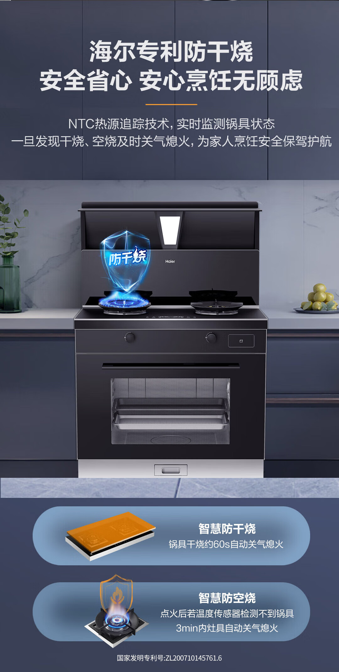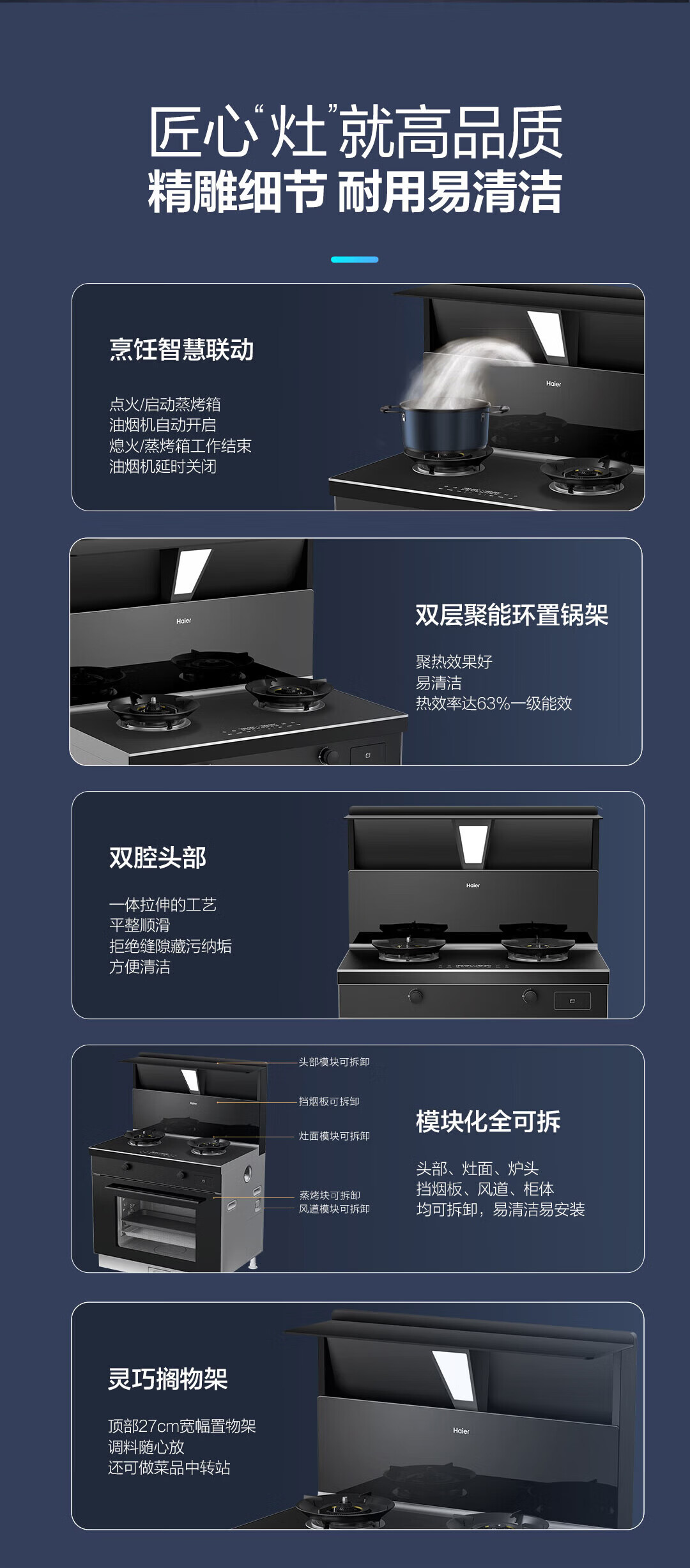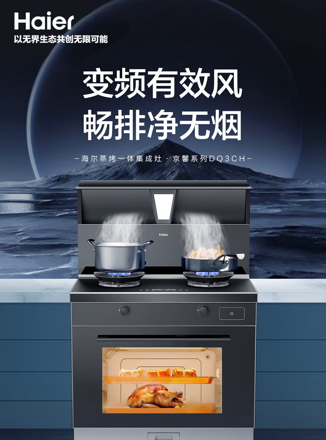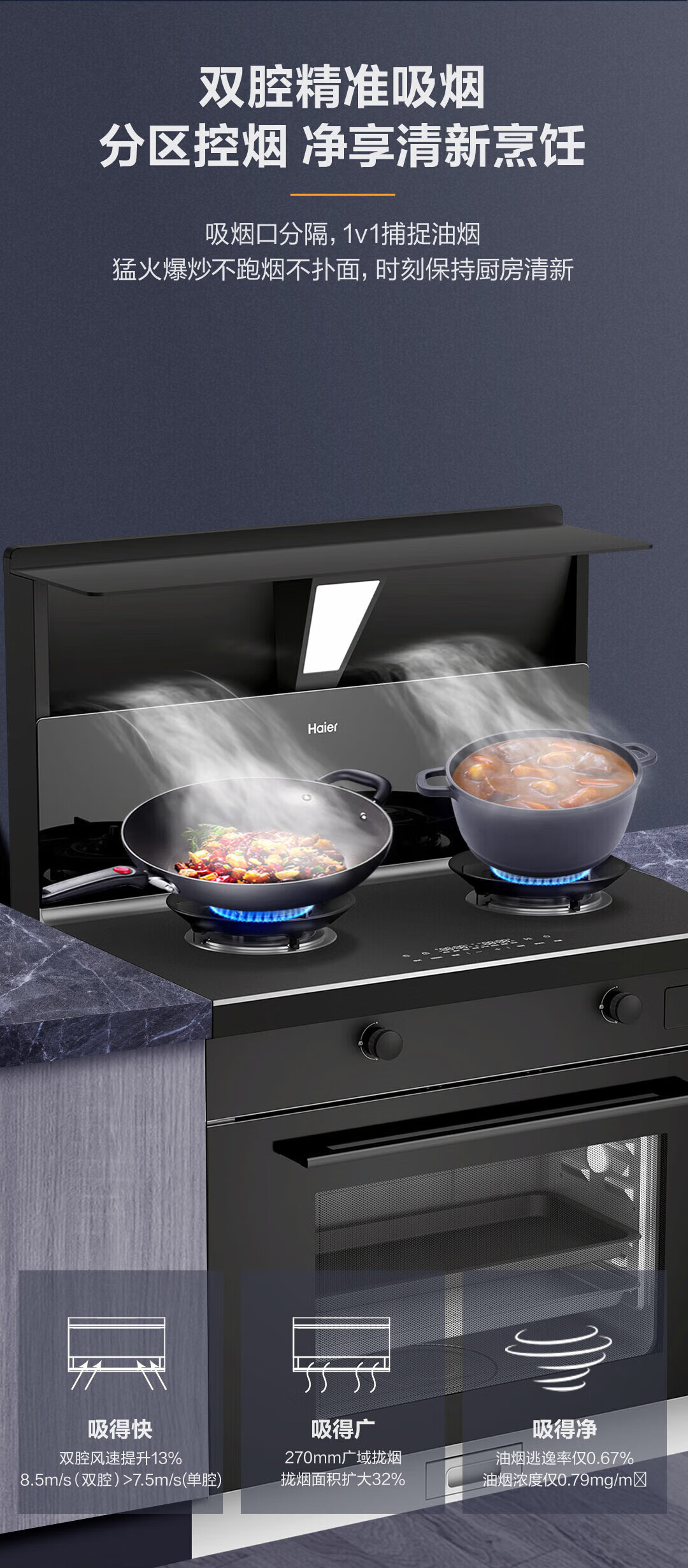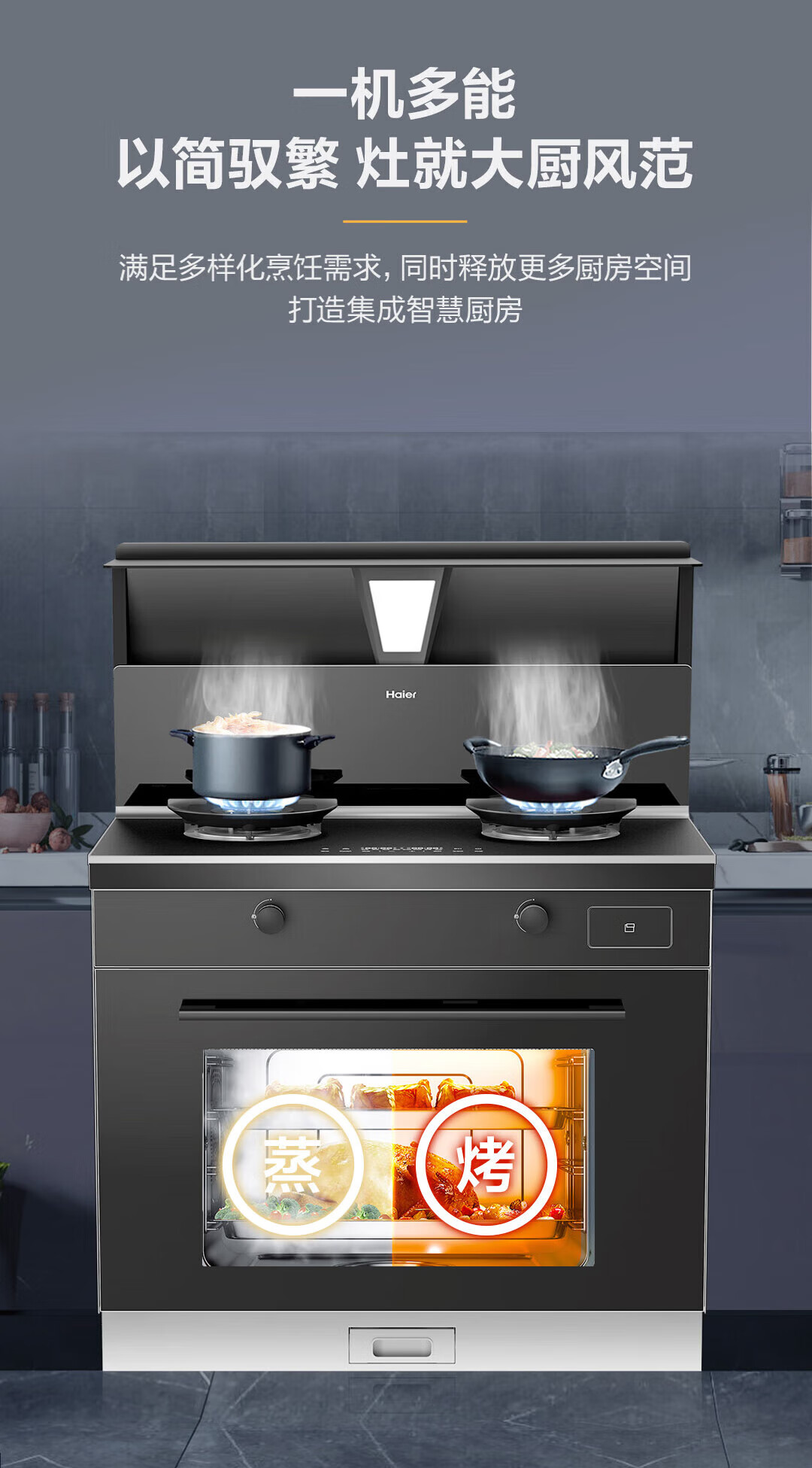 海尔(Haier)变频集成灶蒸烤箱一体灶家用大容量大吸力抽油烟机燃气灶5.2kw防干烧灶具厨房一体式集成烹饪中心 天然气 联系客服备注左右风道