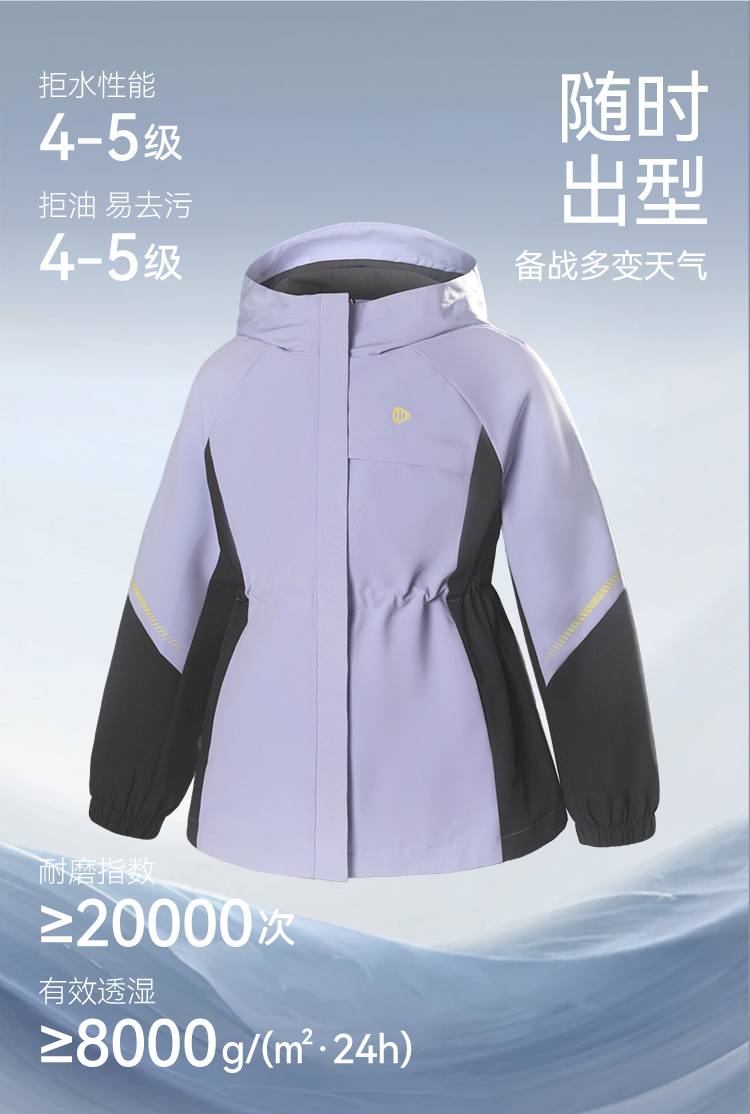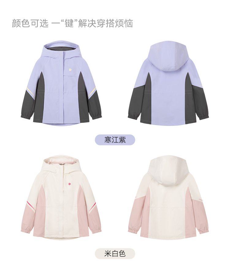 水孩儿童装女童外套薄款2025秋季新品中大童三防上衣连帽拼色风衣