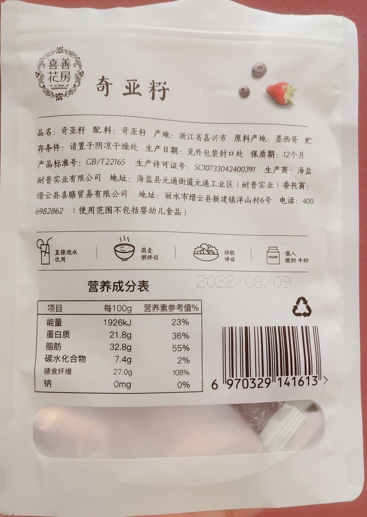 ⁴【喜善花房奇亚籽】健康早餐好搭档 20包装/盒 YC04-CRMM-XSHF