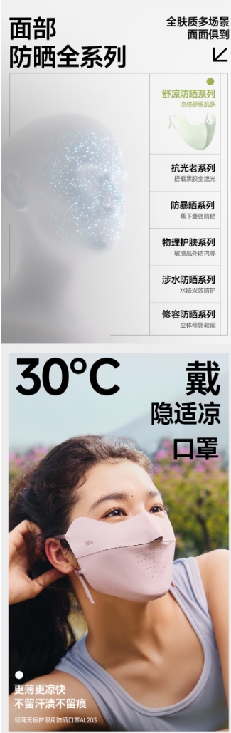 蕉下(beneunder)防晒口罩女士高颜值防晒面罩男AL203防紫外线口罩防风遮阳口罩