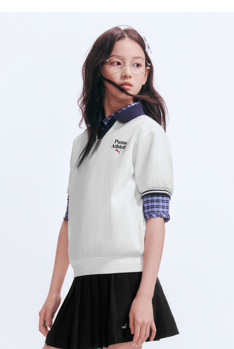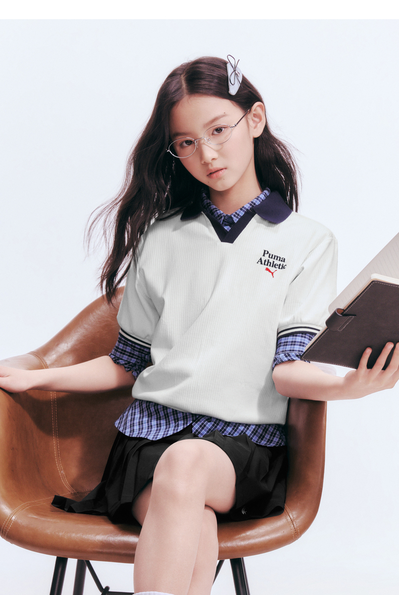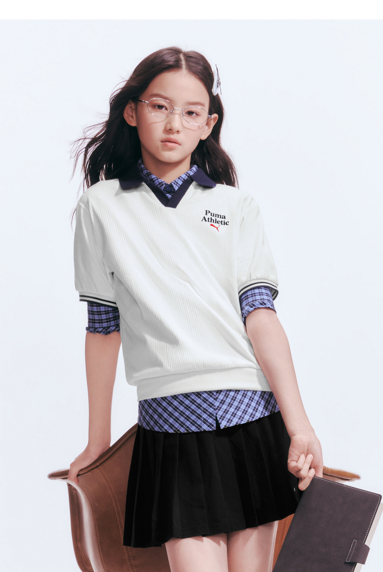 PUMA彪马童装2026夏季新款儿童短袖T恤女童上衣V领设计优雅俏皮