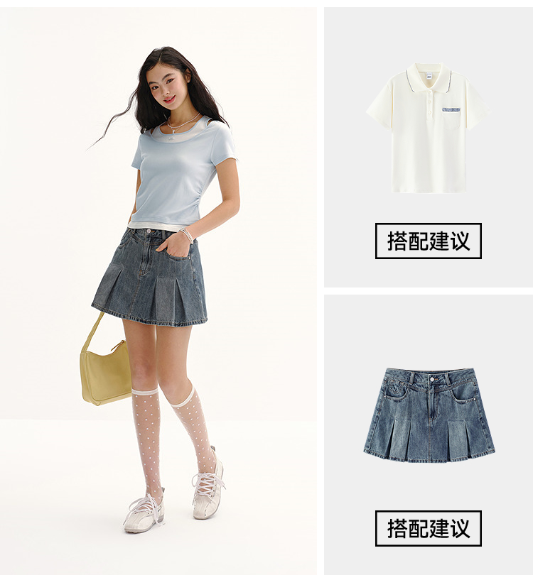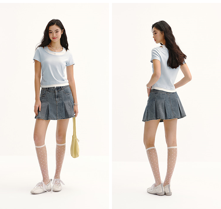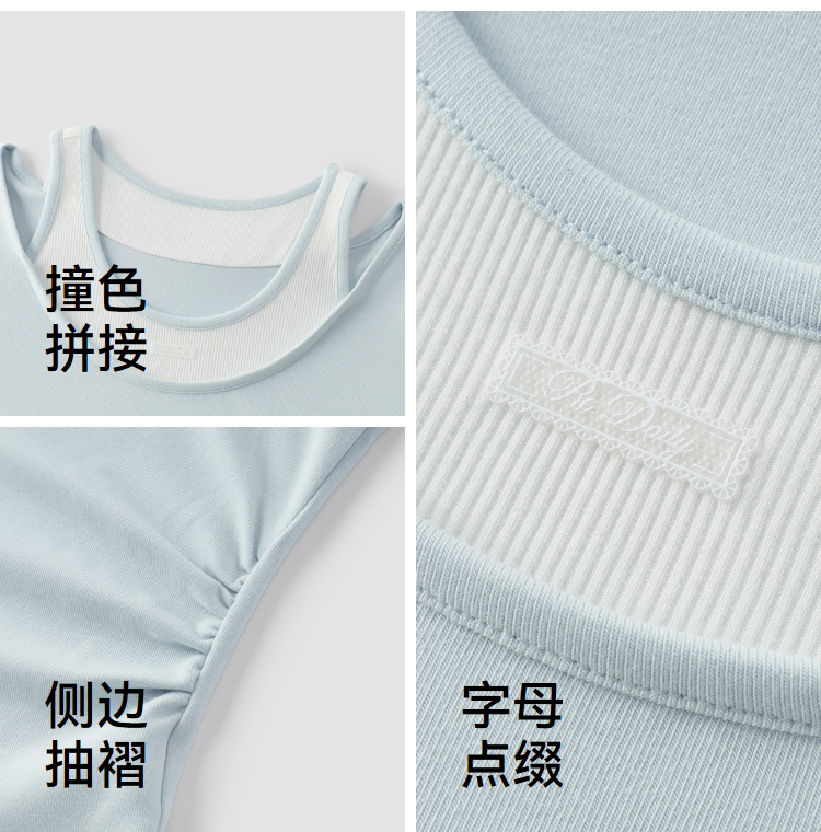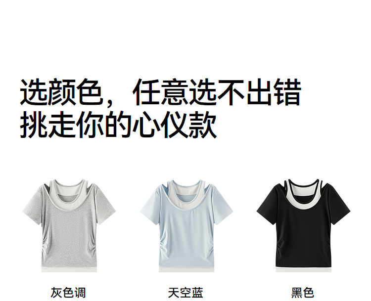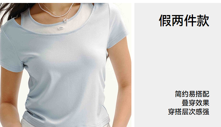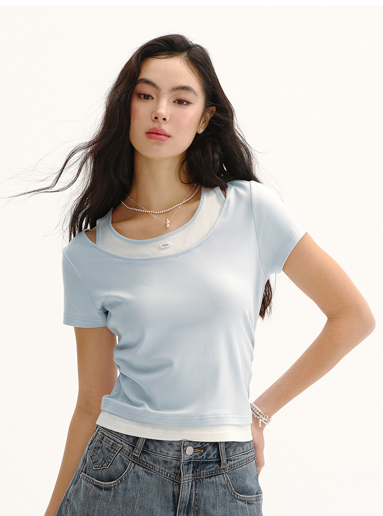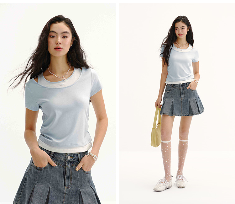 商场同款|森马短袖T恤女夏季短款修身假两件2026新款百搭显瘦上衣