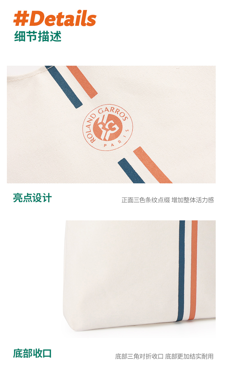 罗兰加洛斯法网帆布袋女大容量手提袋单肩斜跨包三色印花环保袋