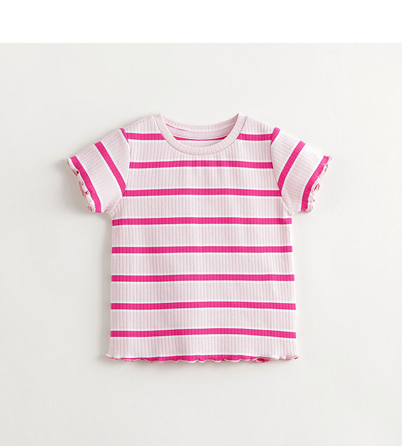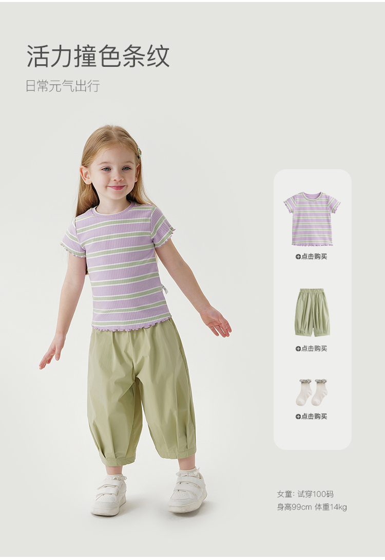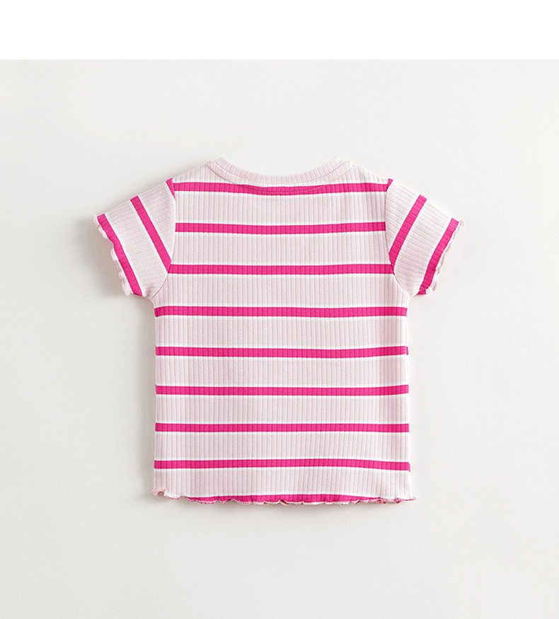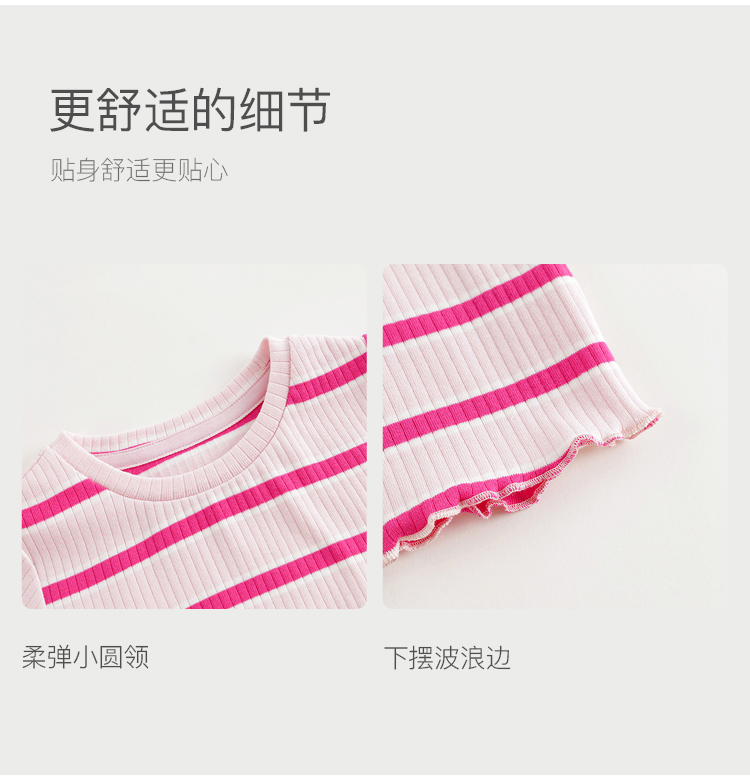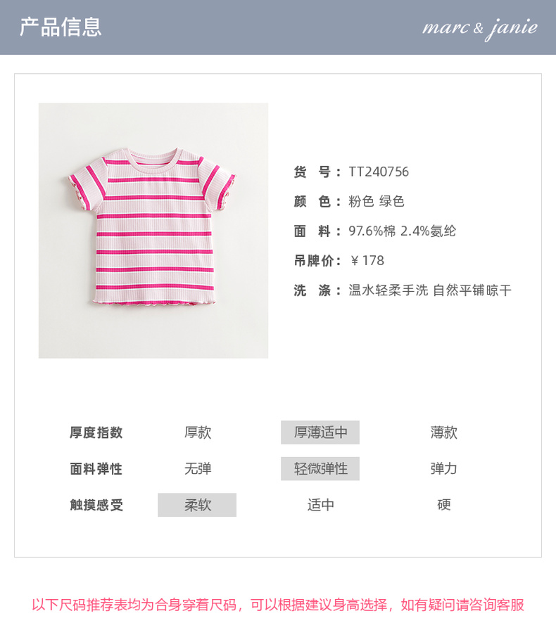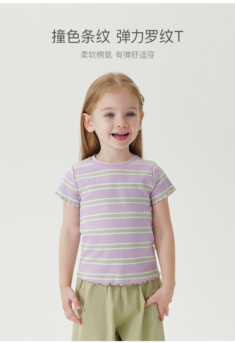 马克珍妮女童弹力针织撞色条纹短袖T恤 儿童上衣夏装新款240756