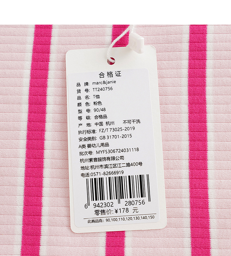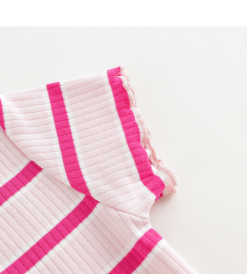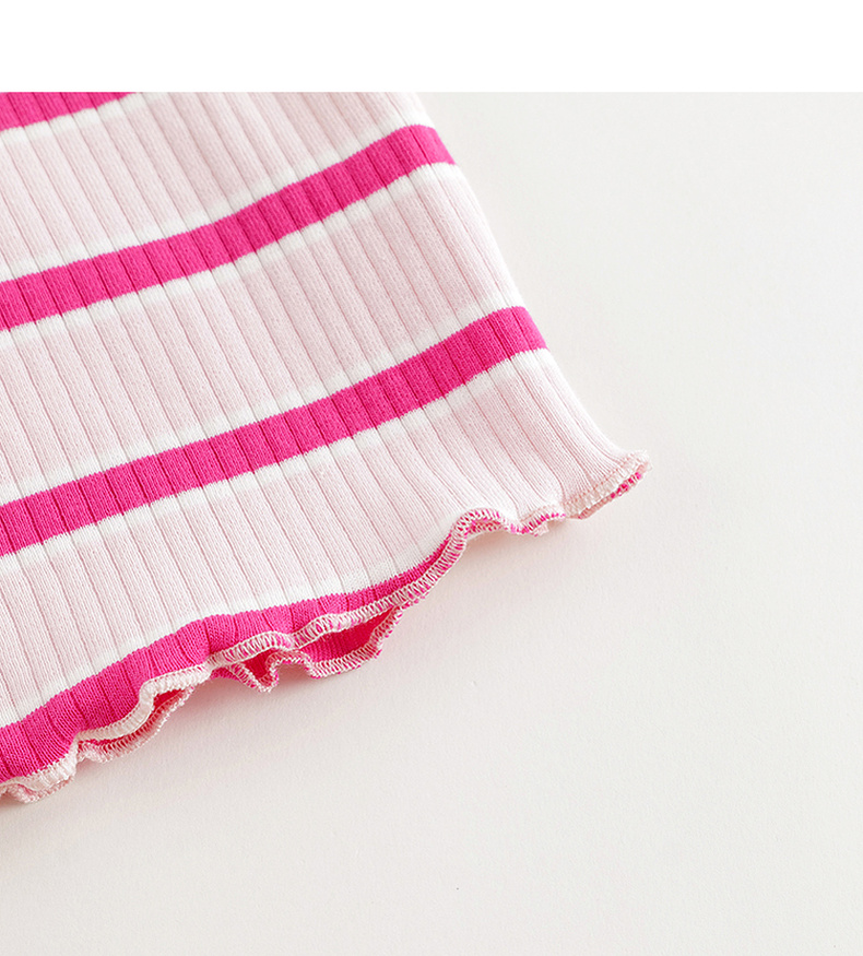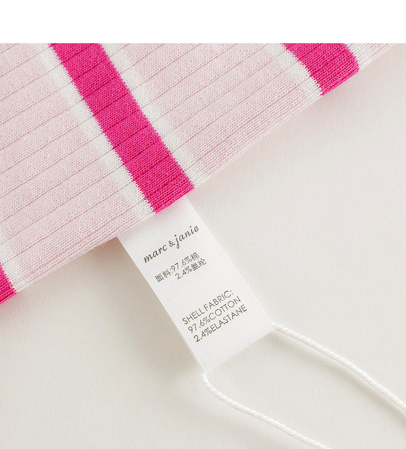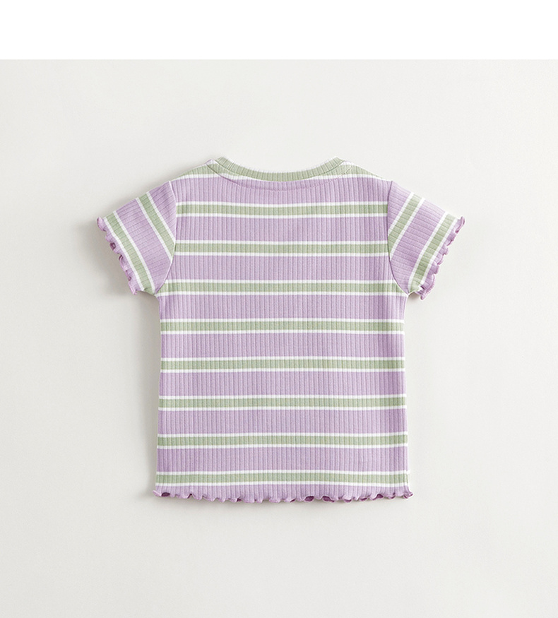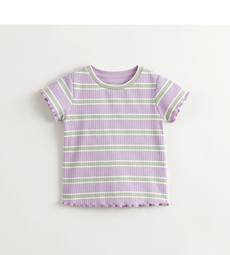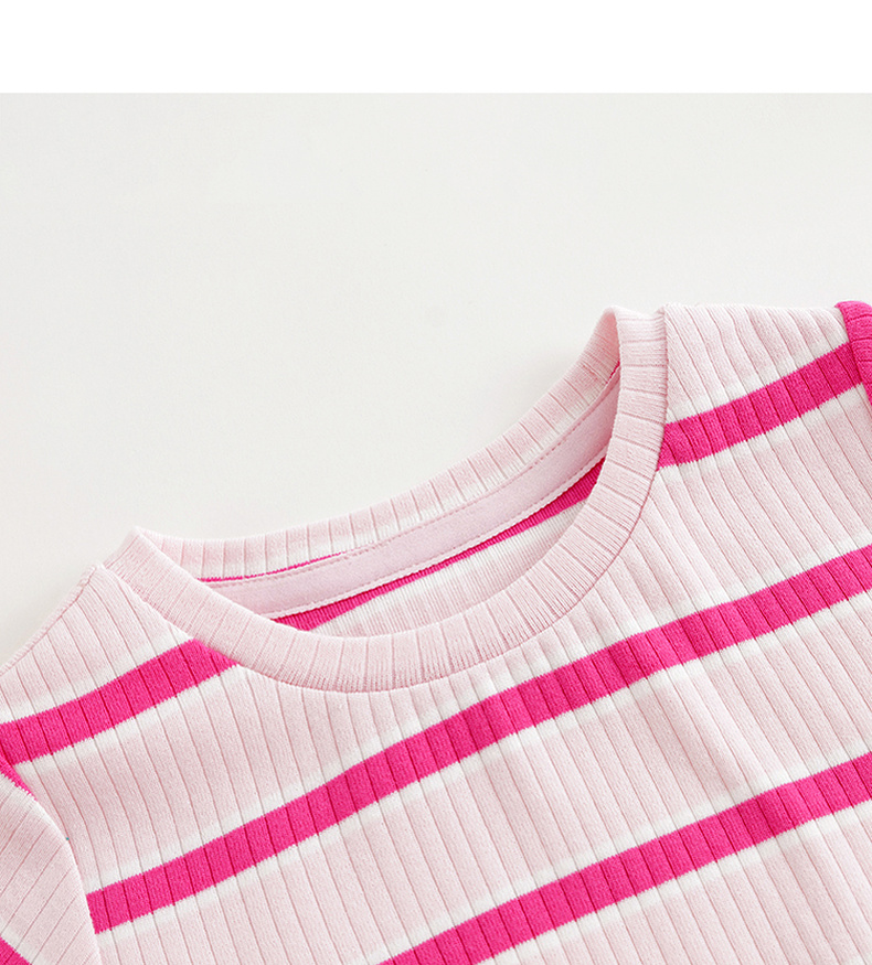 马克珍妮女童弹力针织撞色条纹短袖T恤 儿童上衣夏装新款240756