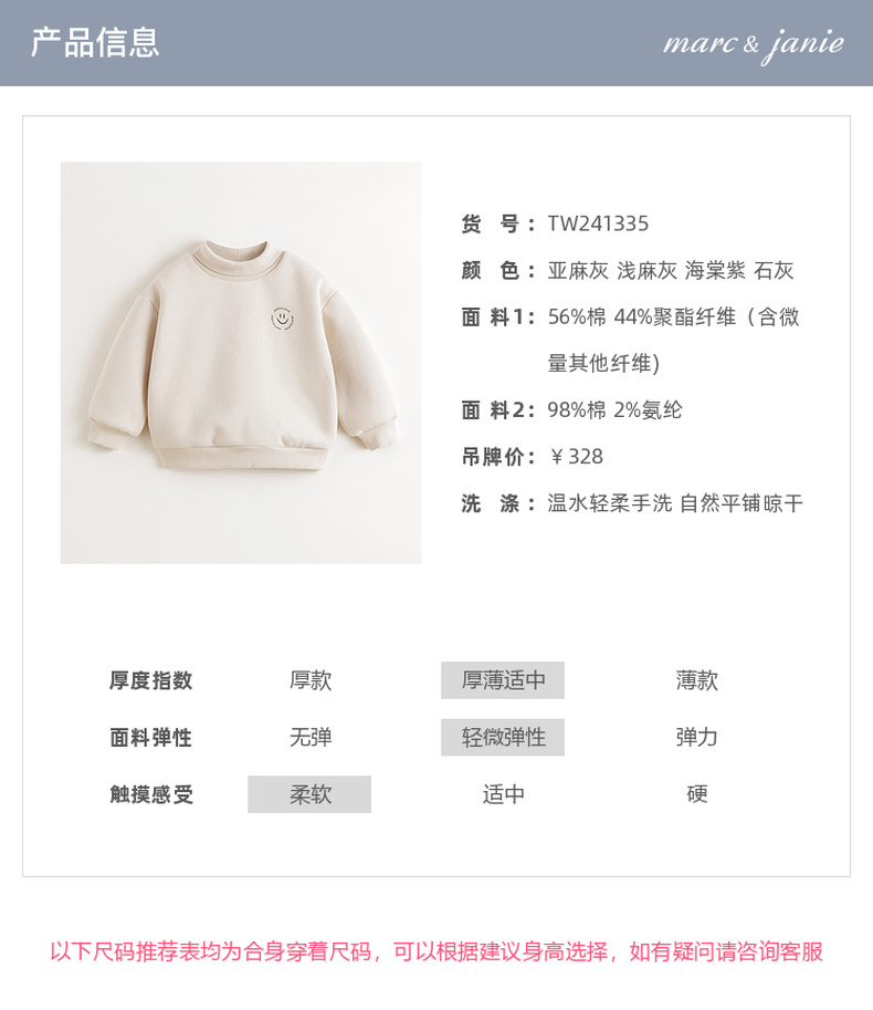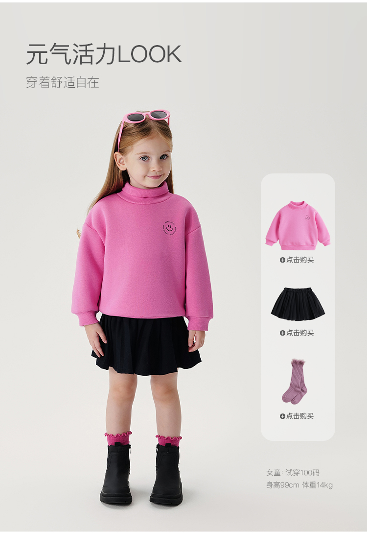 【抗静电】马克珍妮女童高领加绒卫衣儿童2024年冬装新款241335
