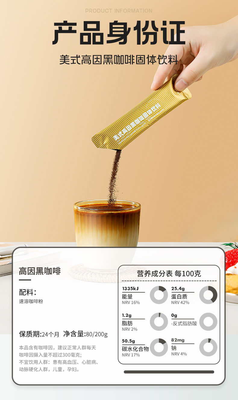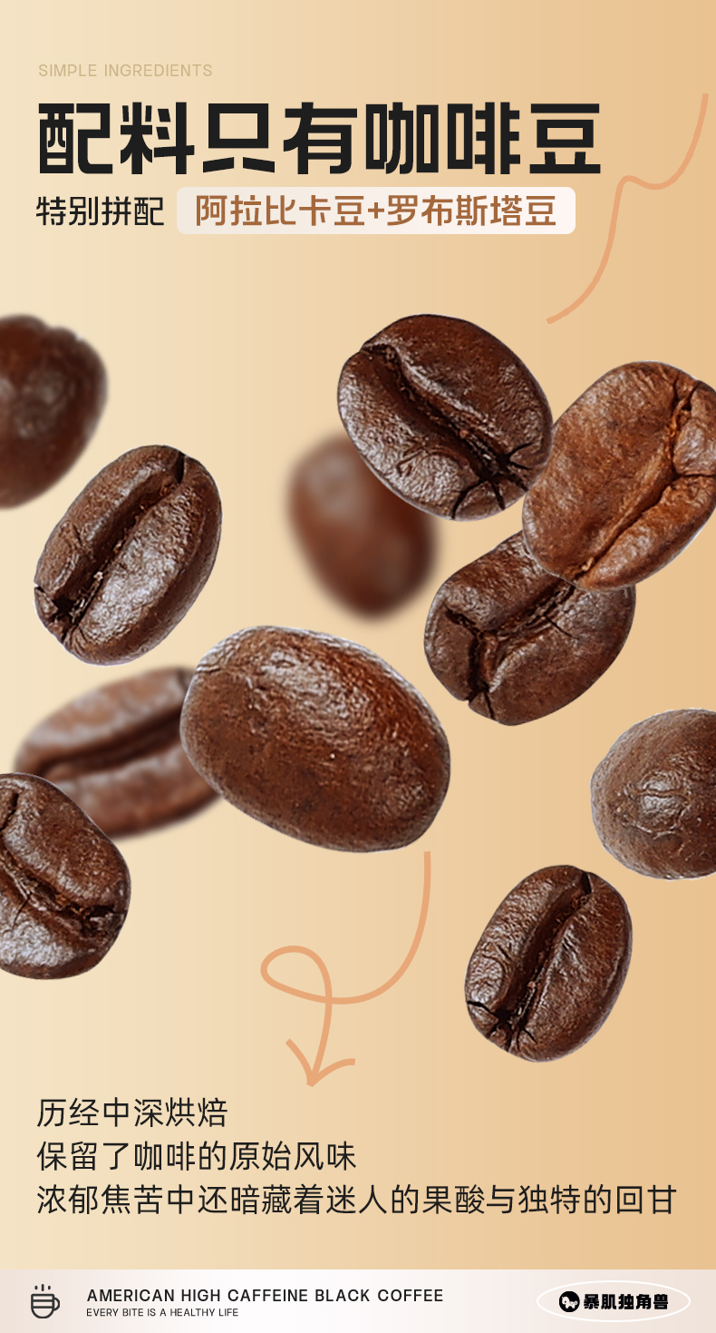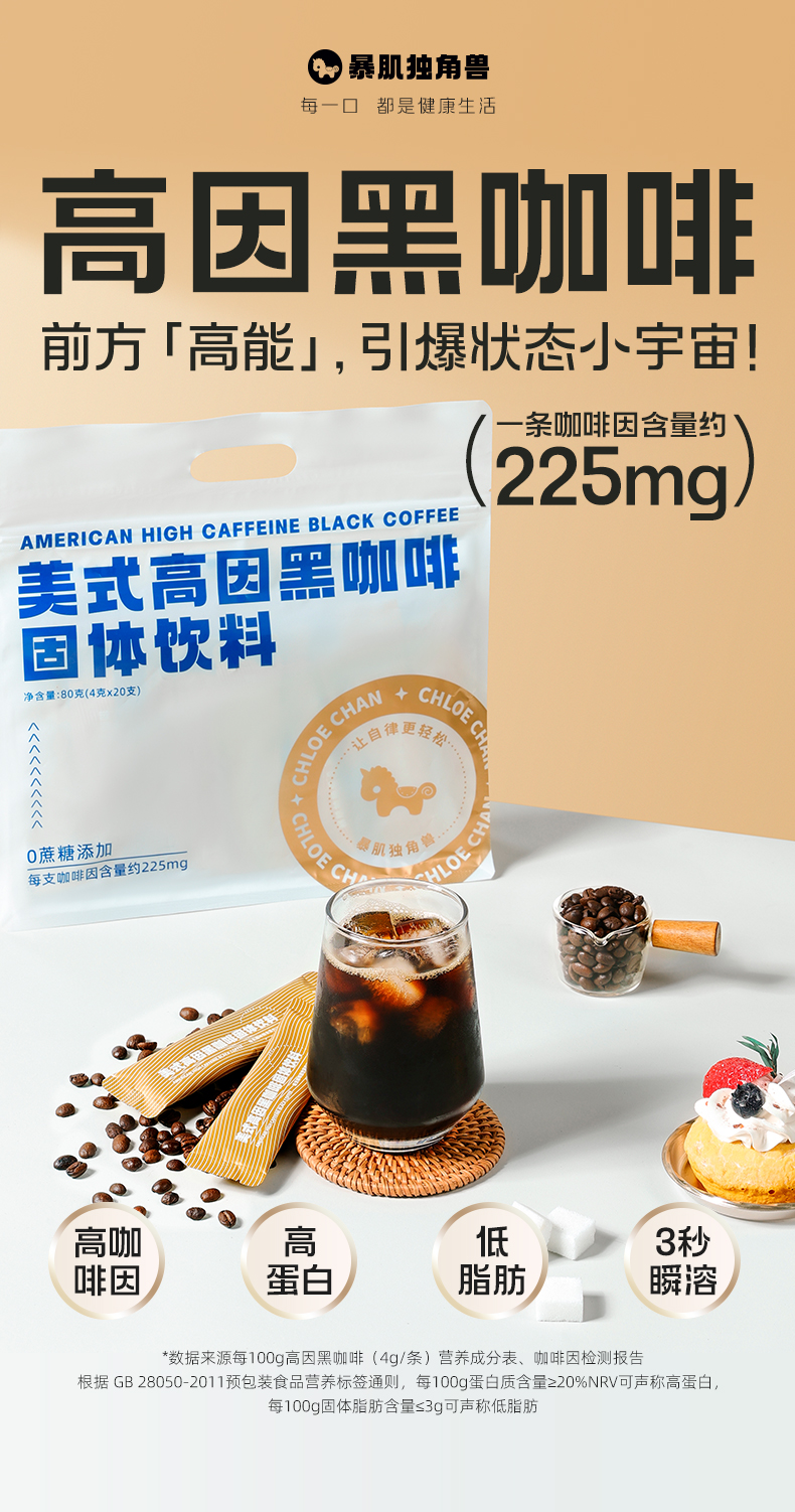 暴肌独角兽高因美式黑咖啡速溶健身运动能量固体饮料阿拉比卡添加