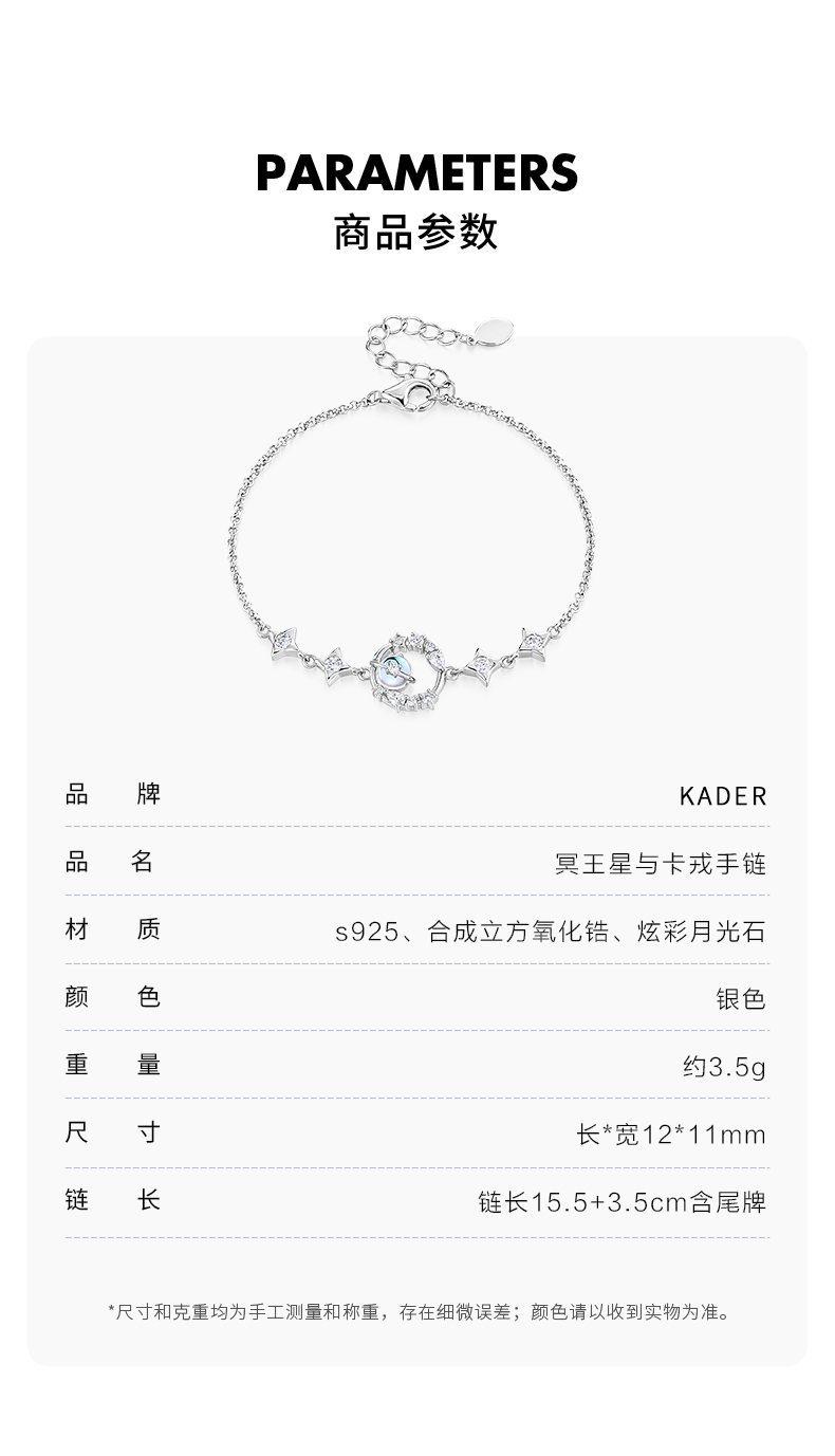 KADER卡蒂罗 陶白白推荐 冥王星与卡戎手链 S925银小众设计百搭配饰 送女生女款七夕情人节简约礼物