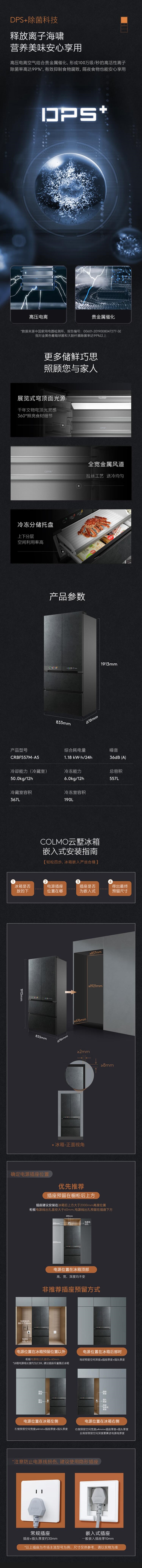 COLMO(202740 )云墅557升法式四门超薄全嵌变频智能高端冰箱CRBF557M-A5熔幔岩