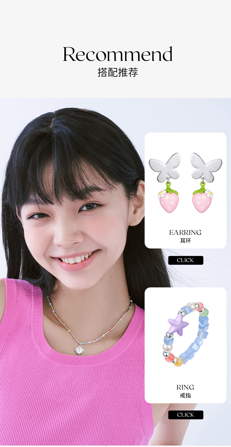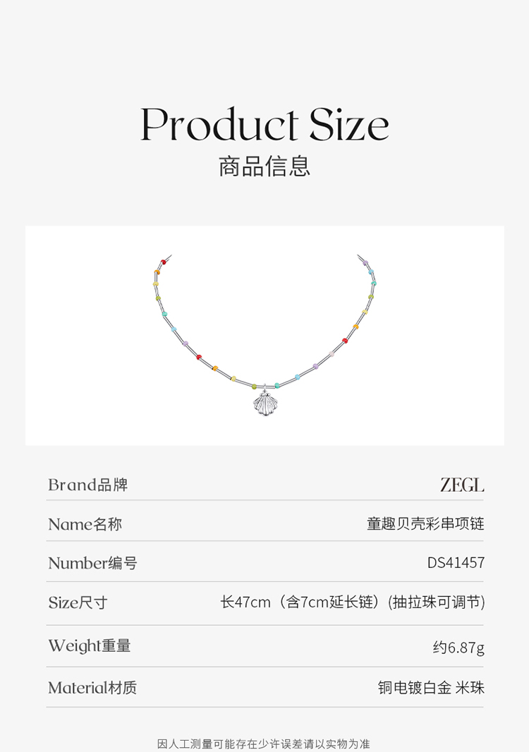 ZEGL设计师草莓小彩串彩色贝壳串珠项链女2023年新款多巴胺锁骨链