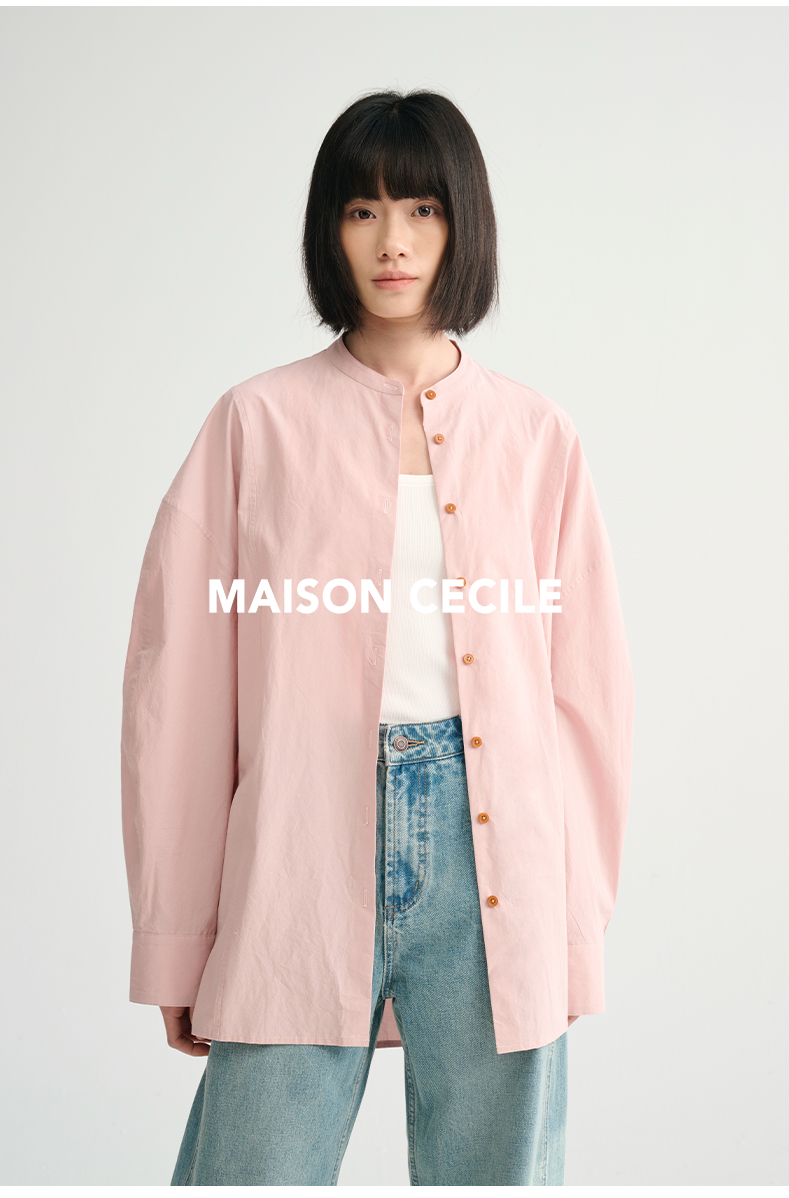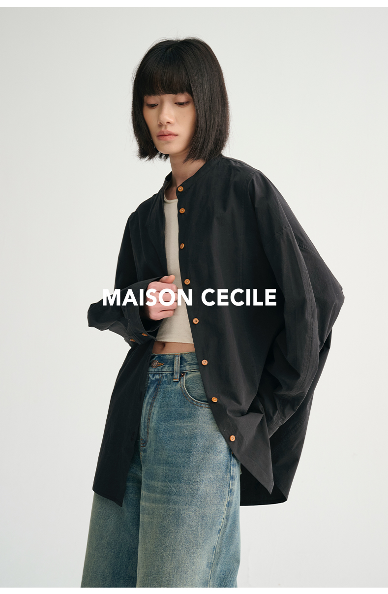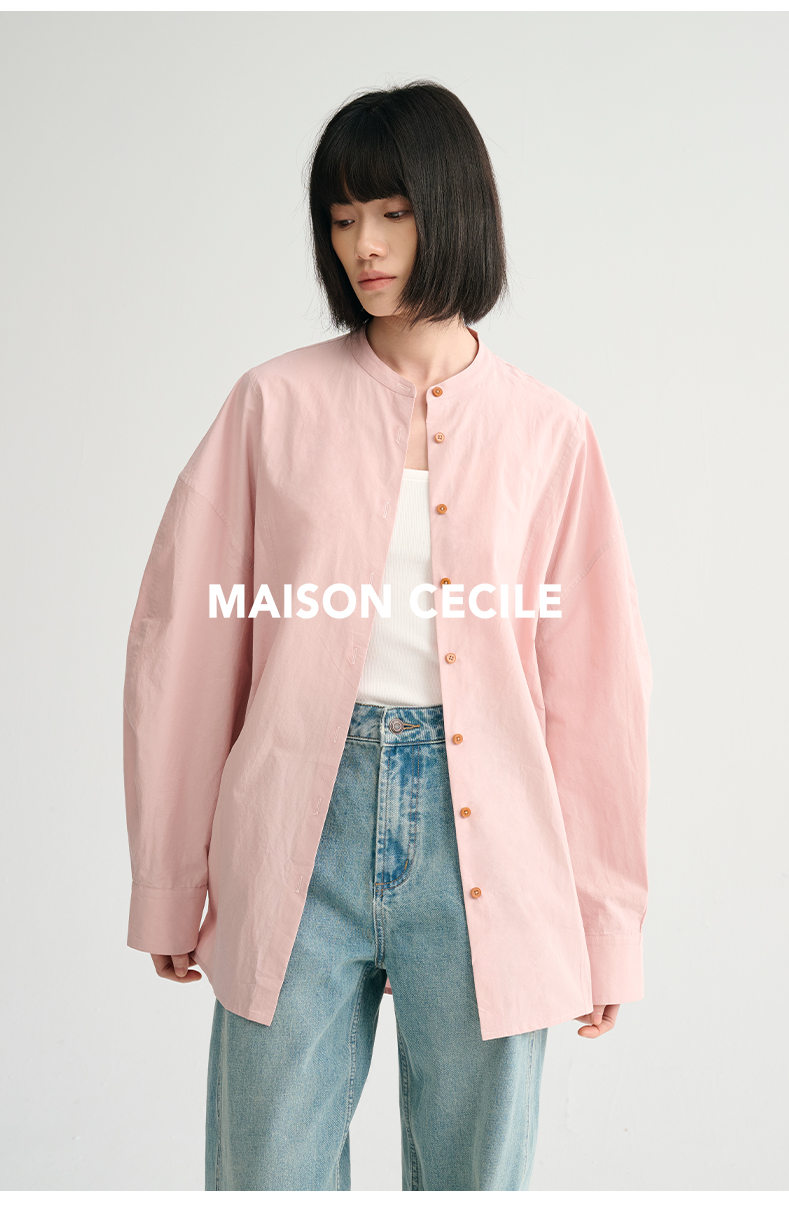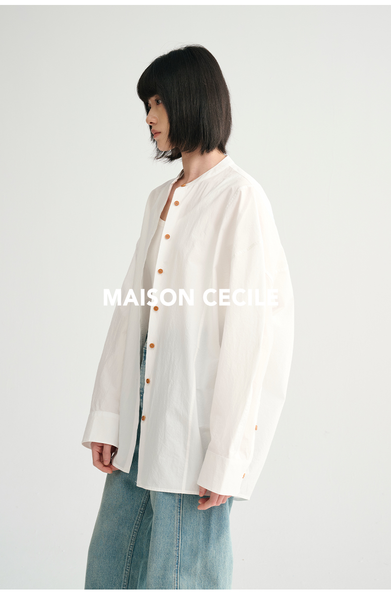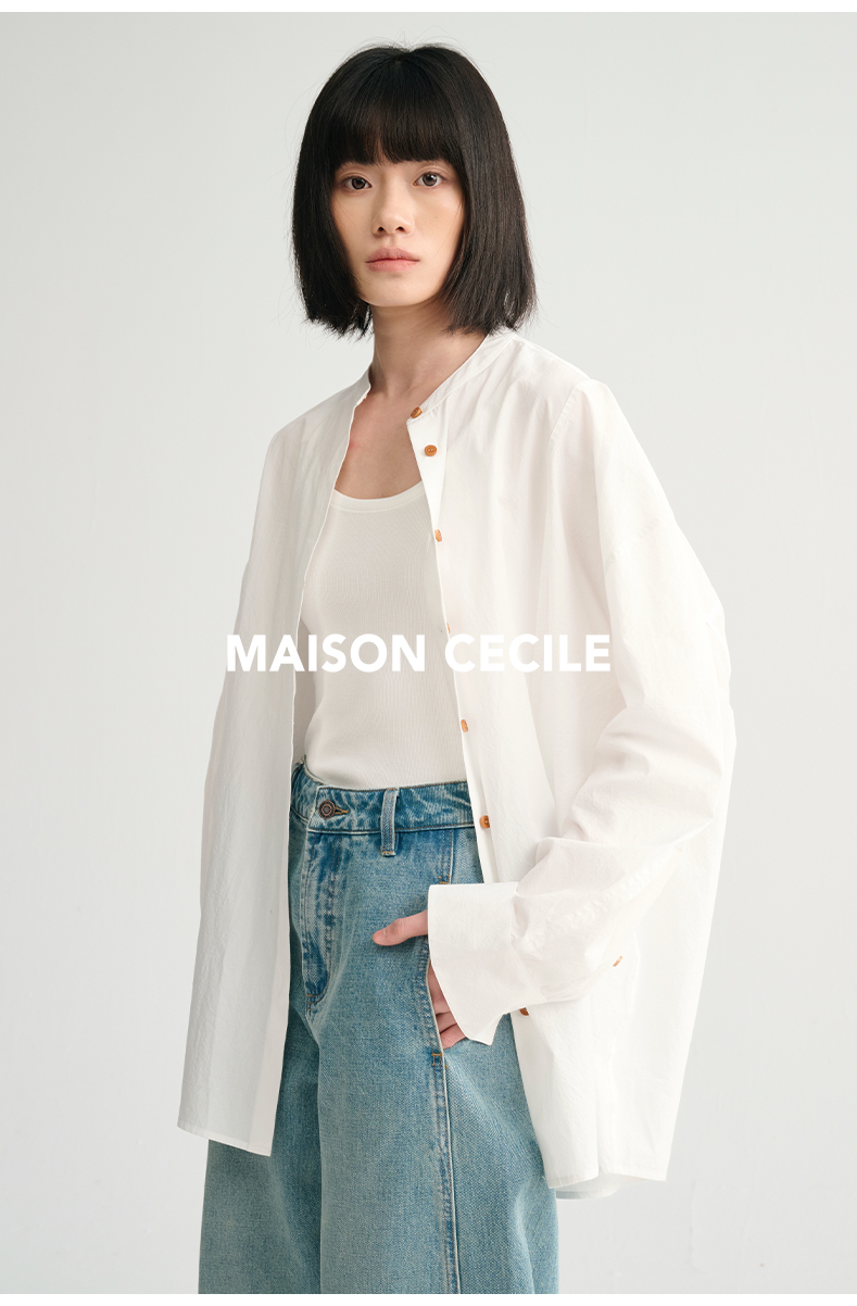 MAISON CECILE三色/弧形袖全棉圆领宽松随性风衬衫