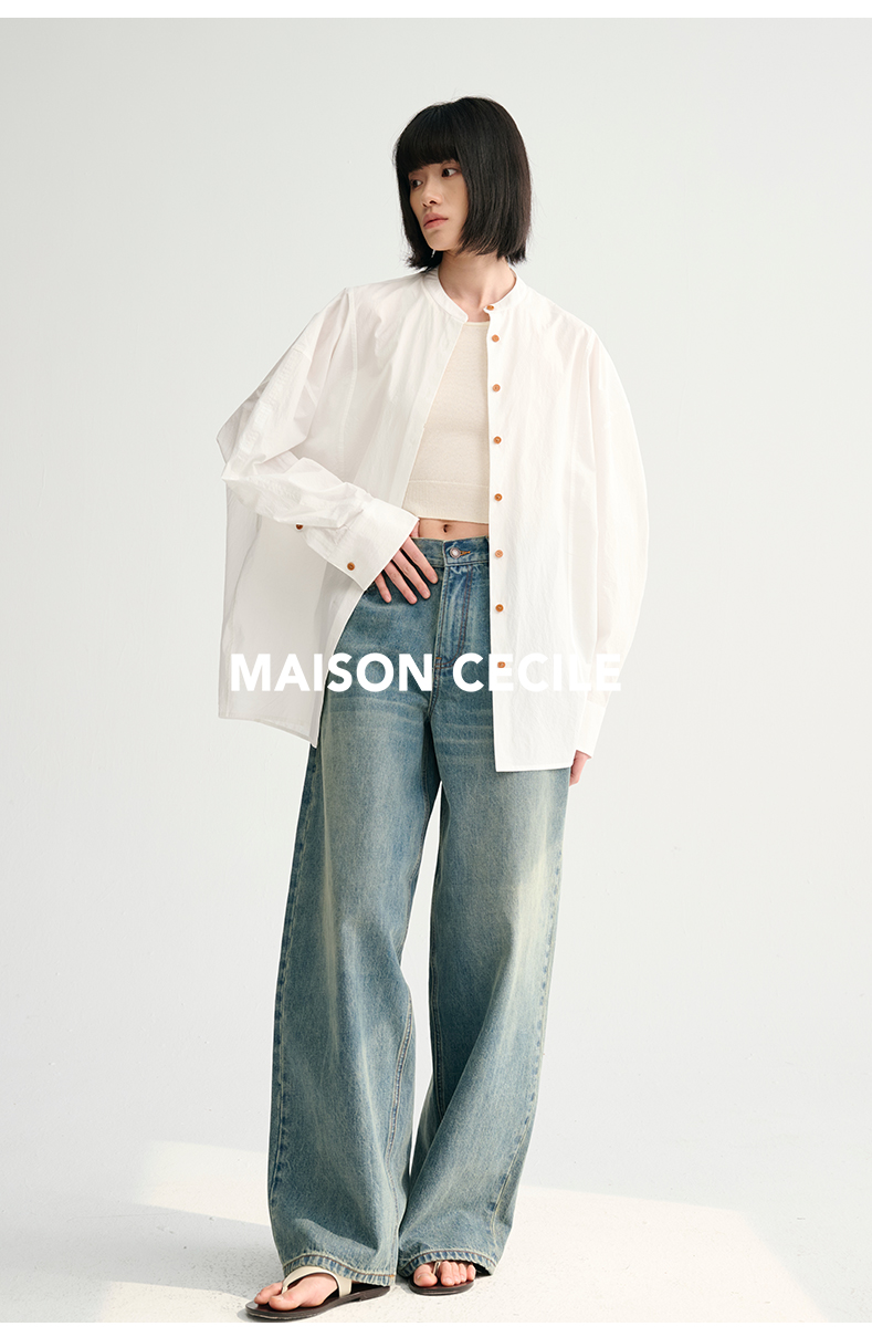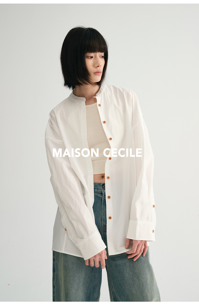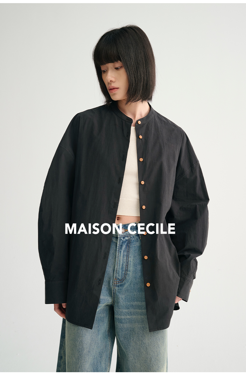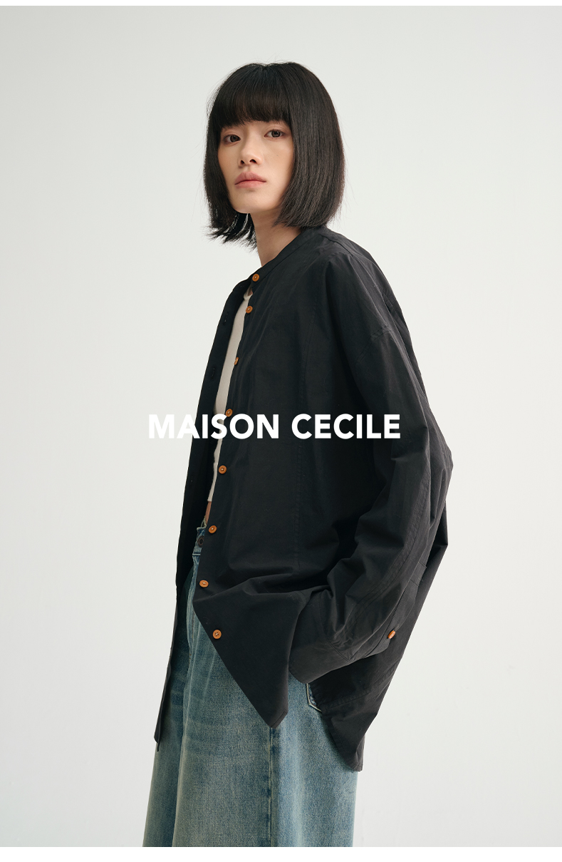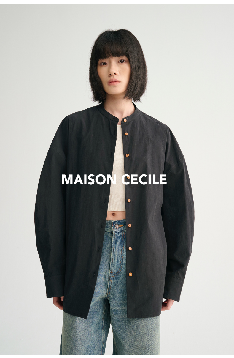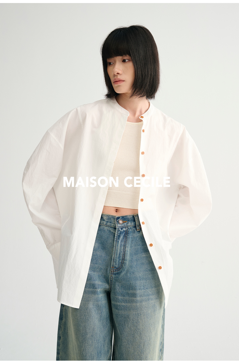 MAISON CECILE三色/弧形袖全棉圆领宽松随性风衬衫