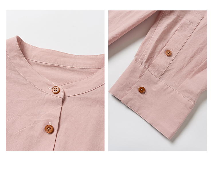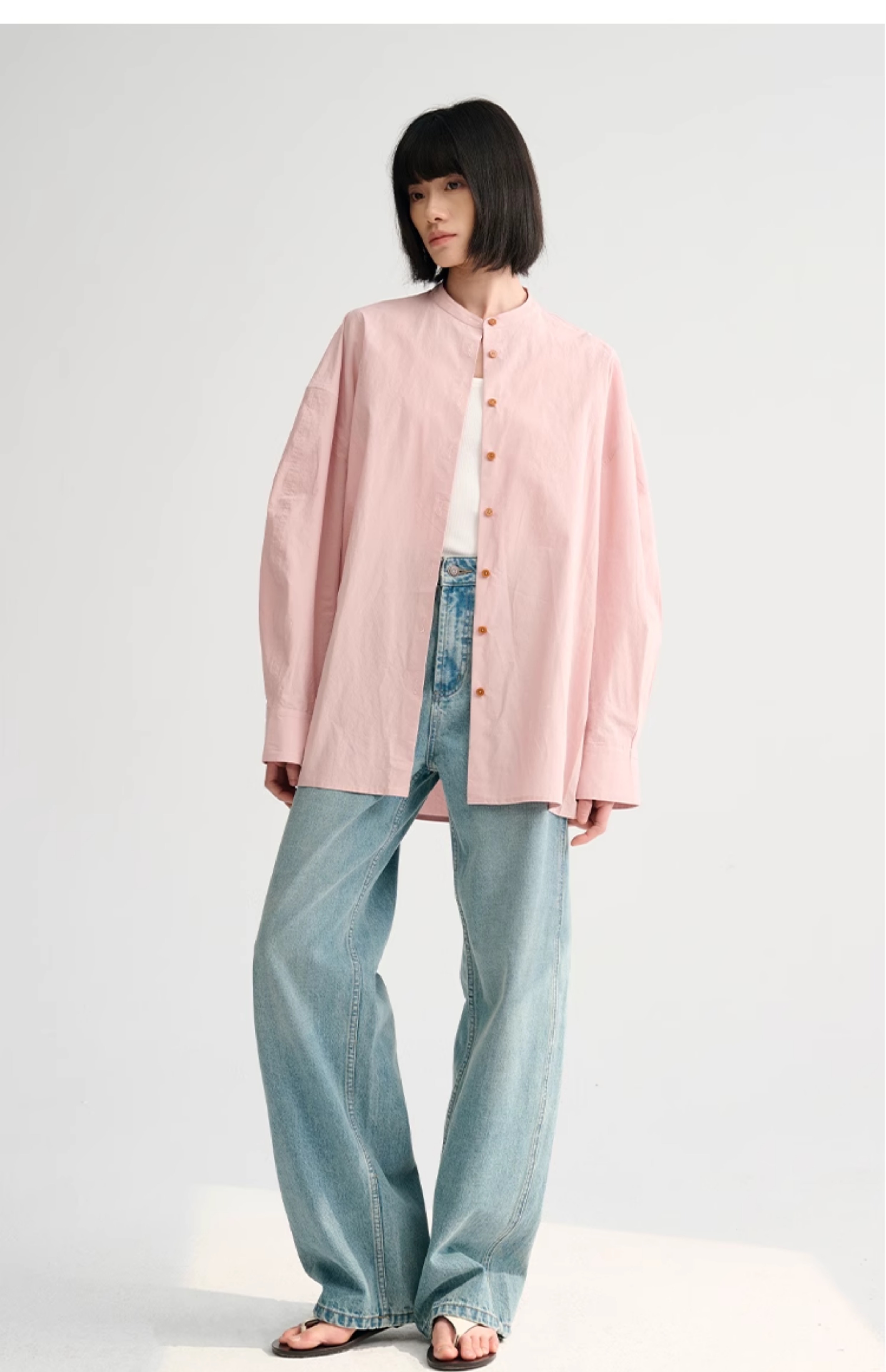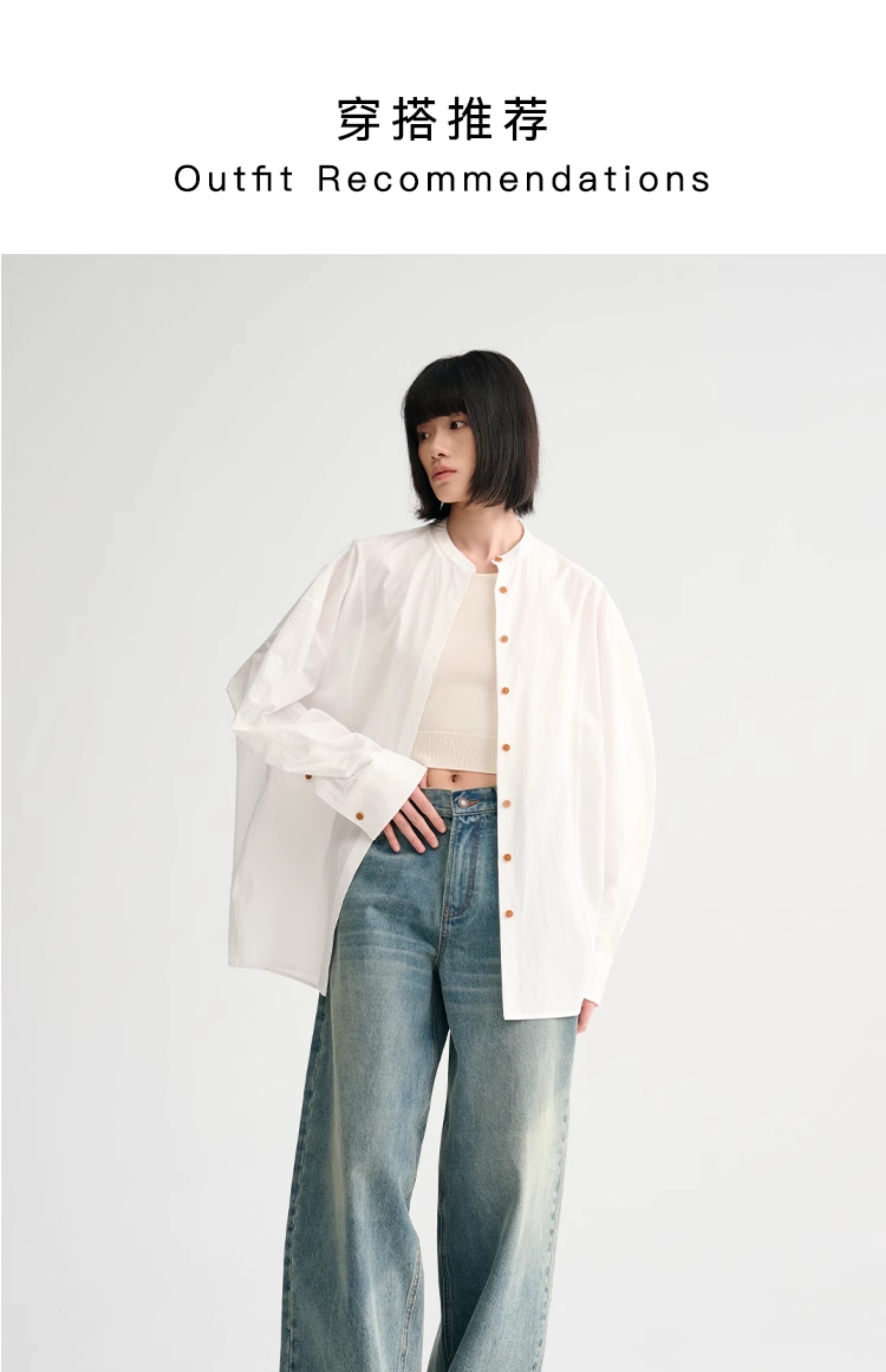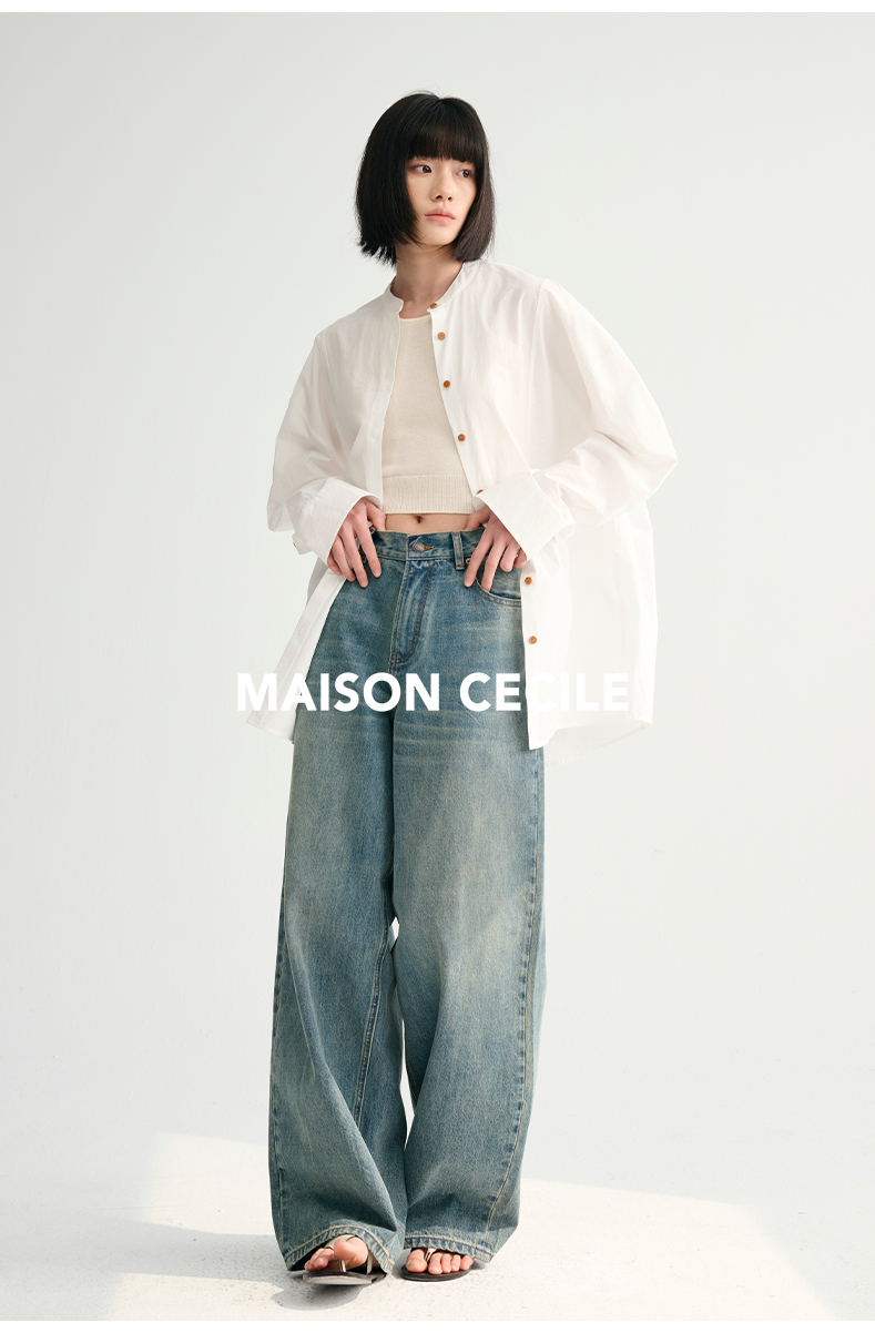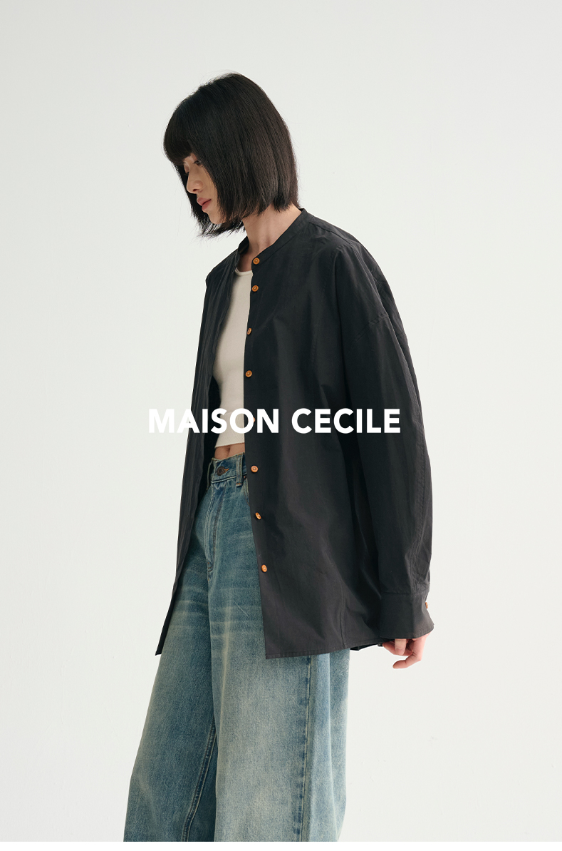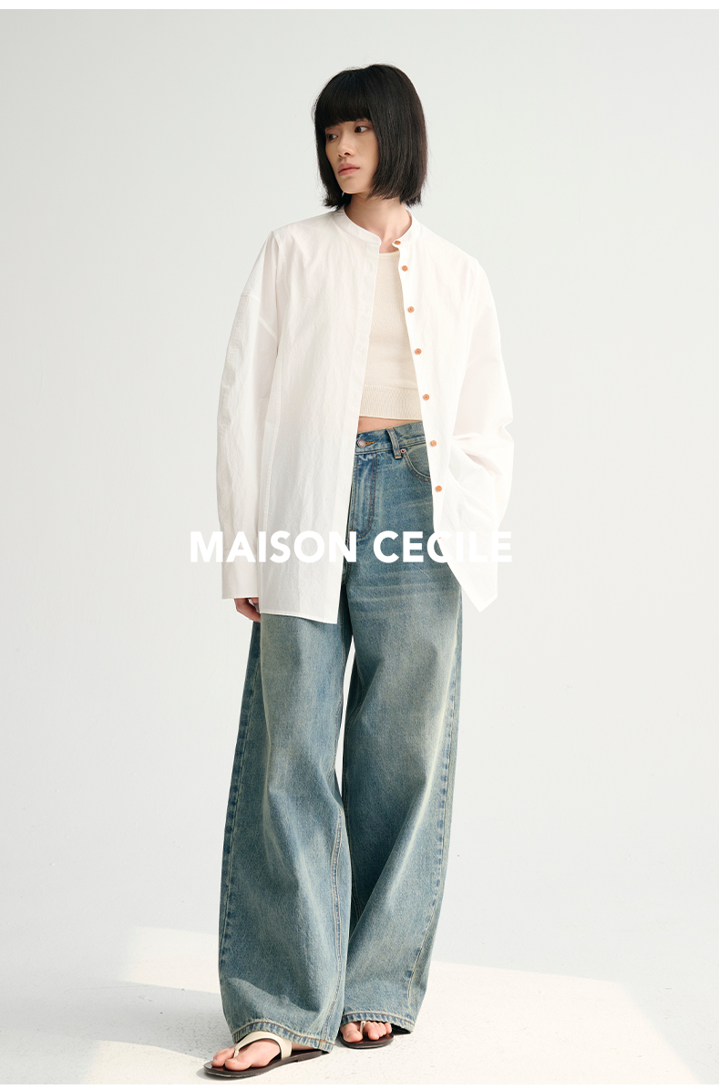 MAISON CECILE三色/弧形袖全棉圆领宽松随性风衬衫