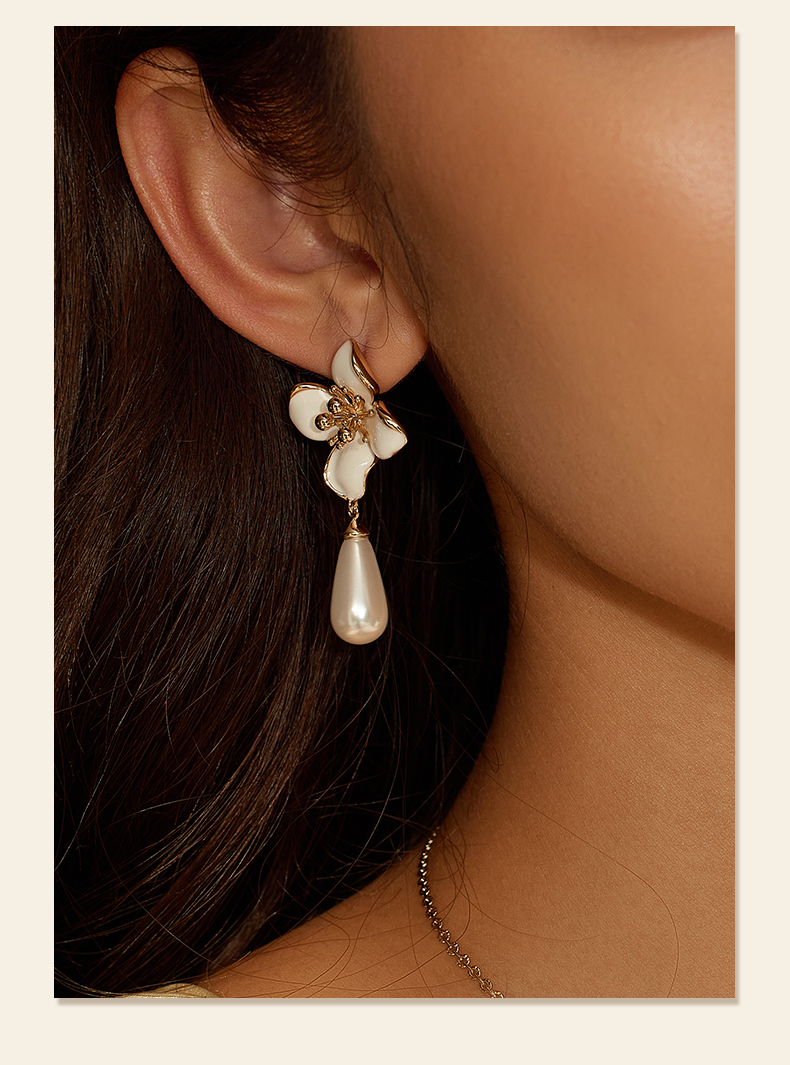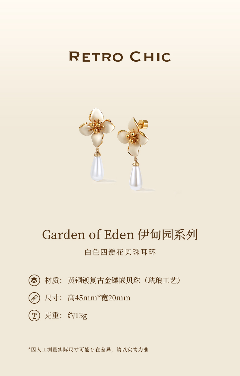 Garden of Eden 伊甸园系列 | 白色四瓣花贝珠耳环