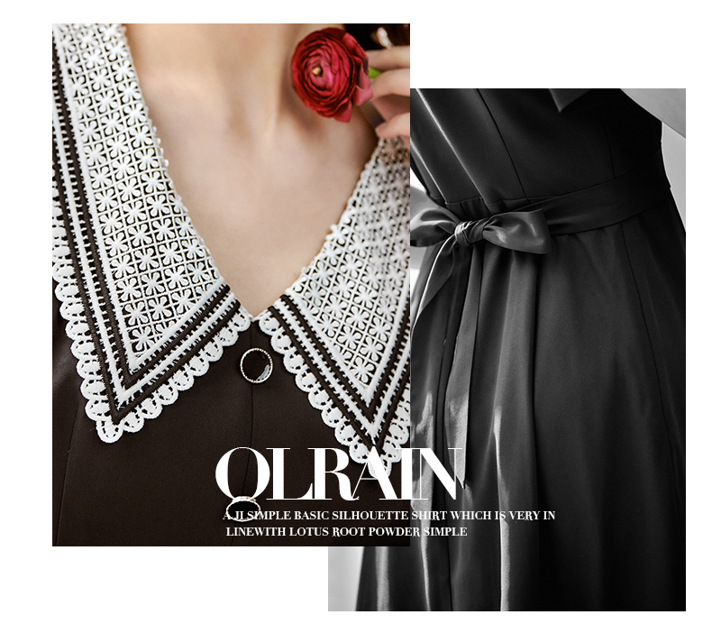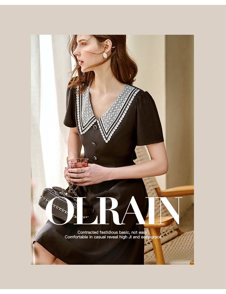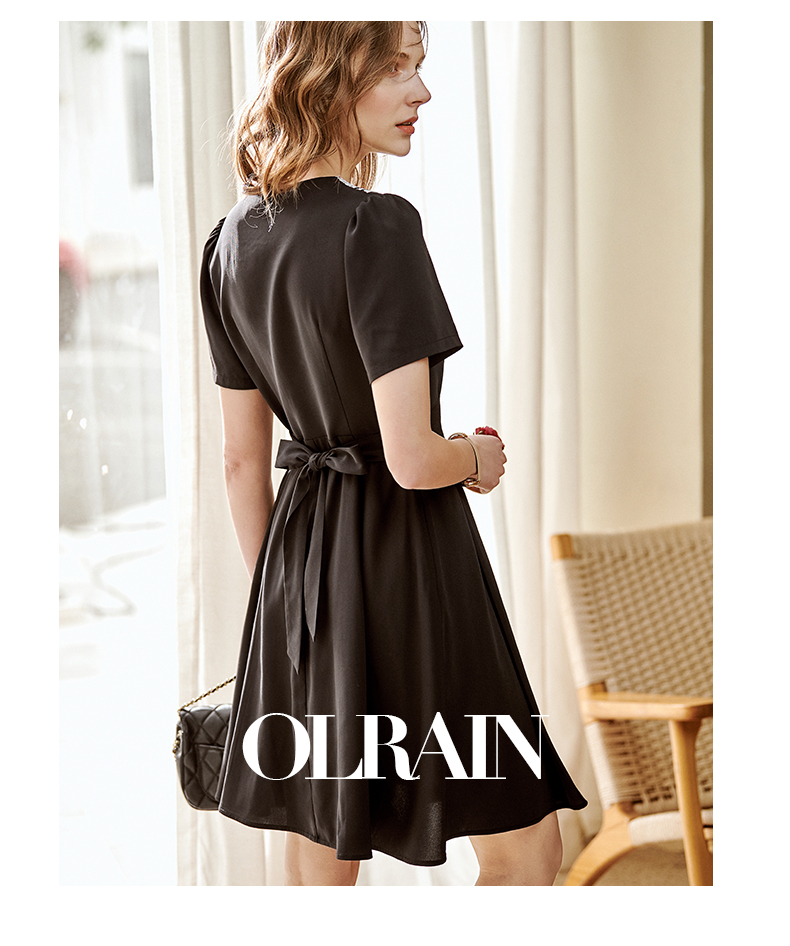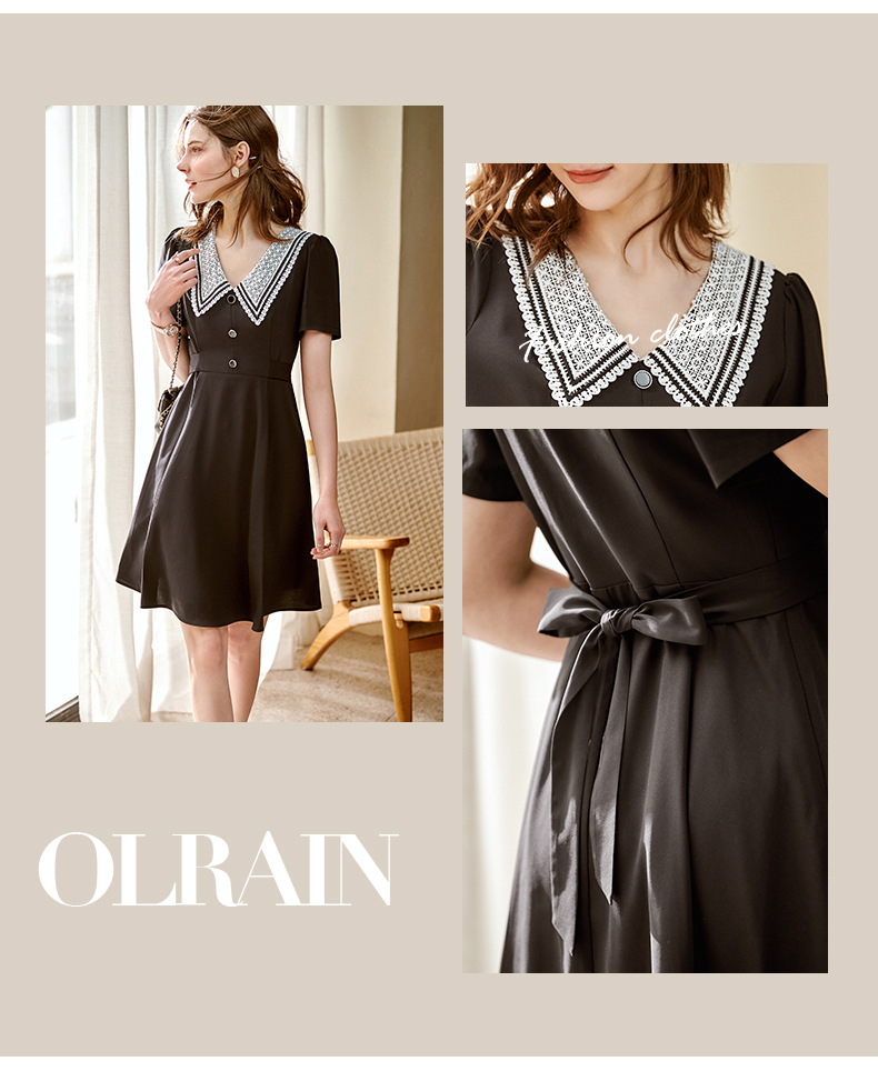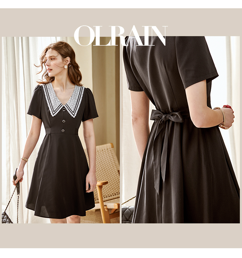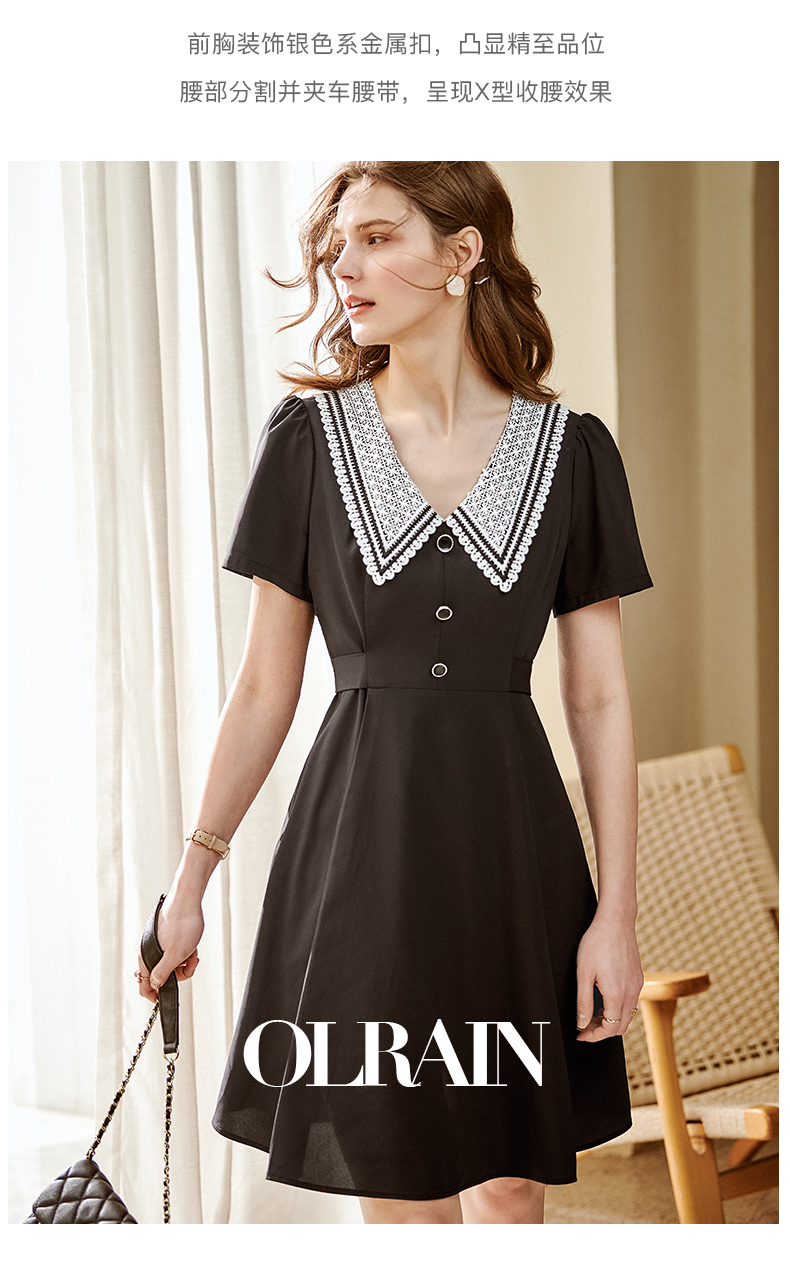 OLrain欧芮儿黑色假两件连衣裙女初秋2023新款收腰显瘦衬衫式裙子
