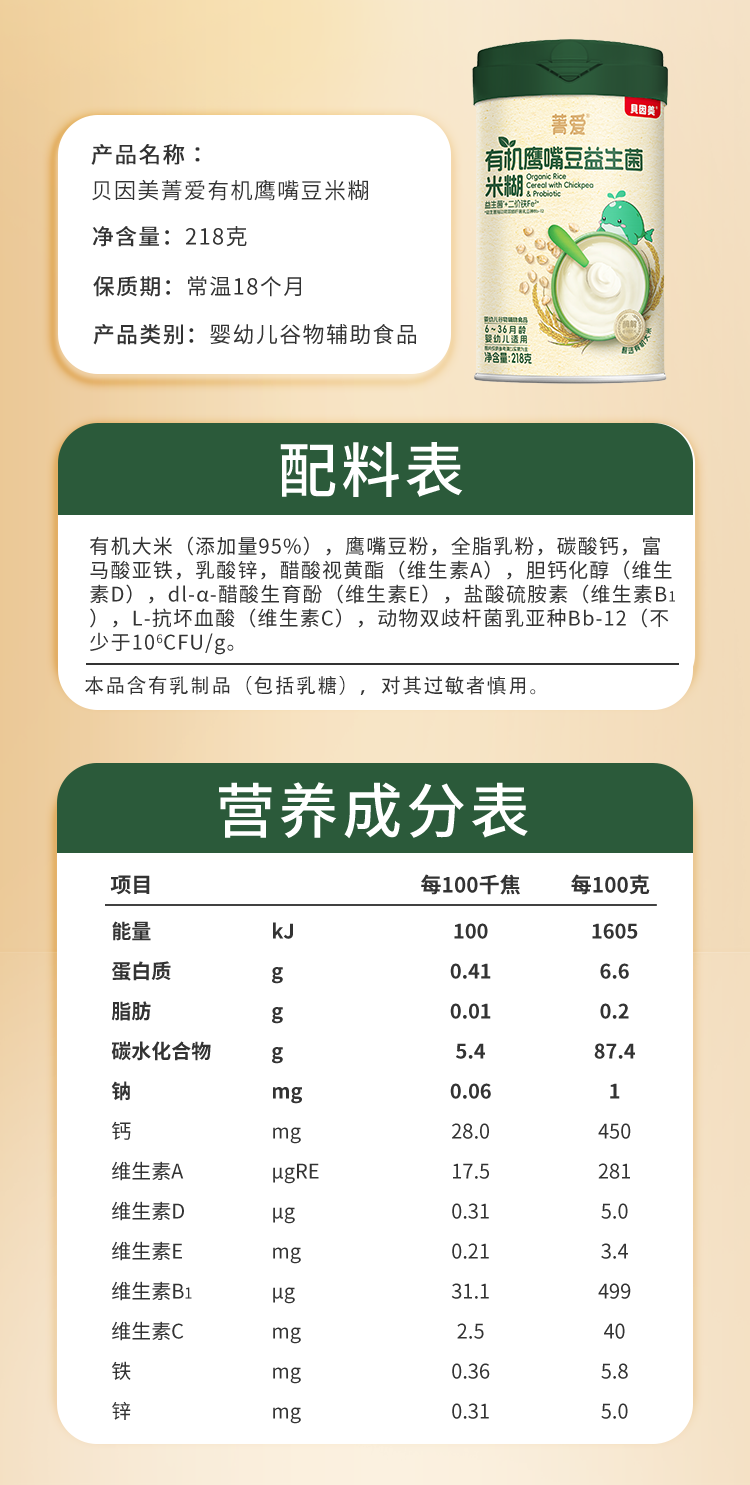 【官网联合】菁爱有机强化铁米糊婴幼儿营养辅食218g