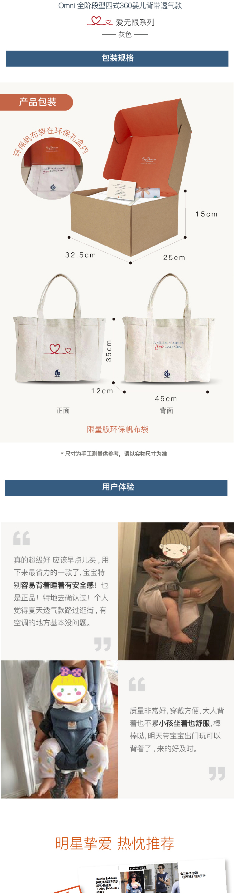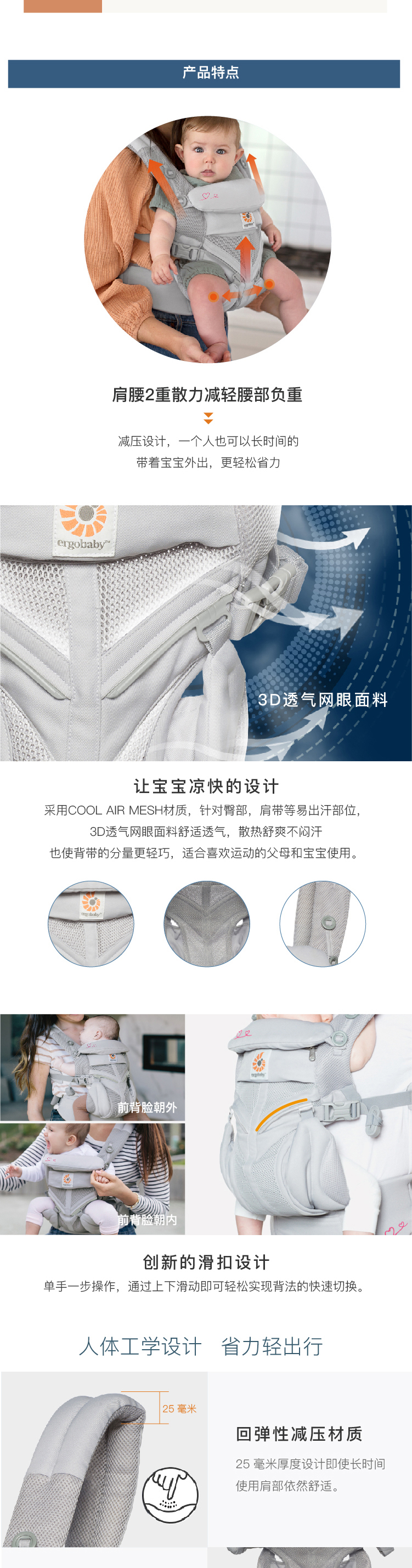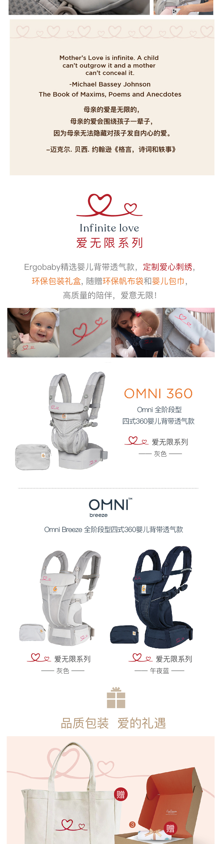 美国Ergobaby Omni 全阶段型婴儿背带透气款 礼盒