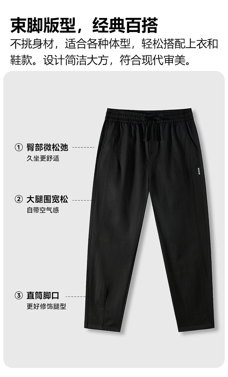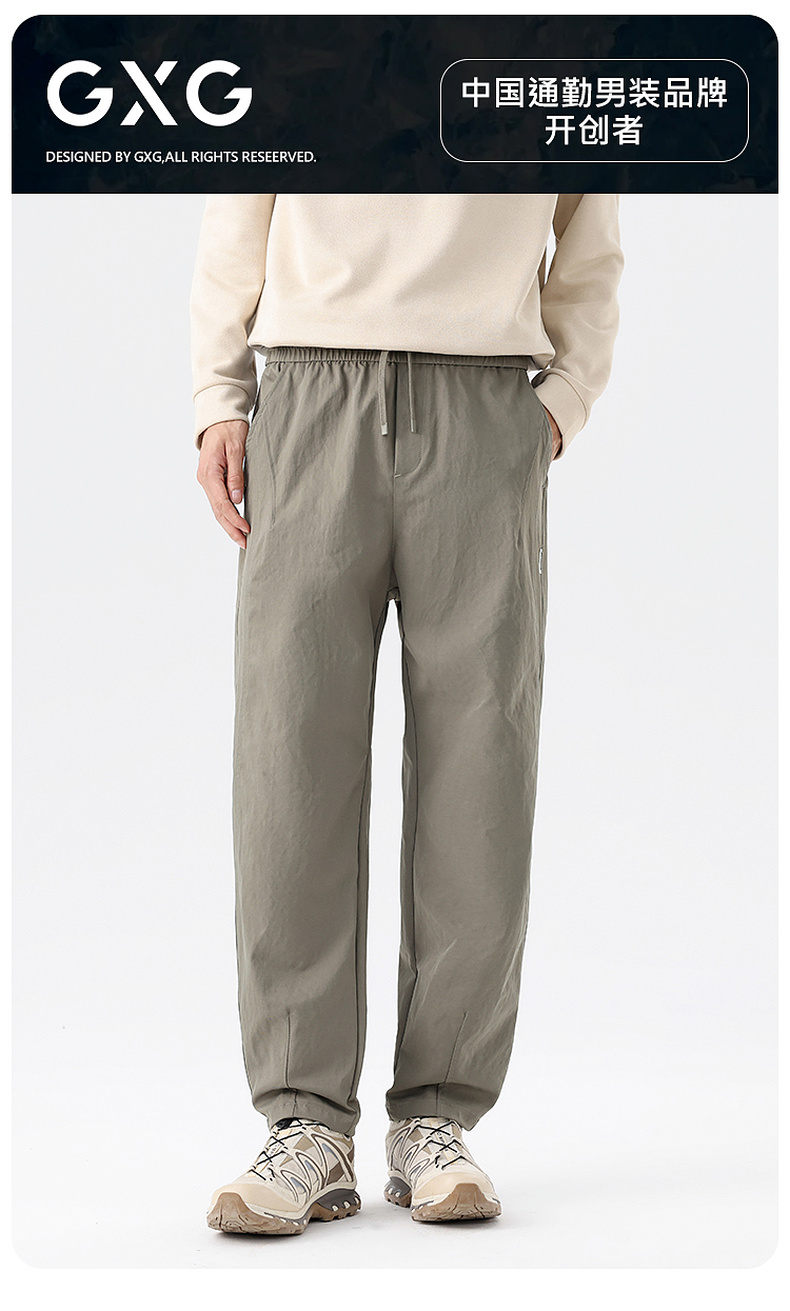 GXG男装25秋季时尚松紧腰系绳休闲裤宽松舒适日常通勤男式直筒裤K&C