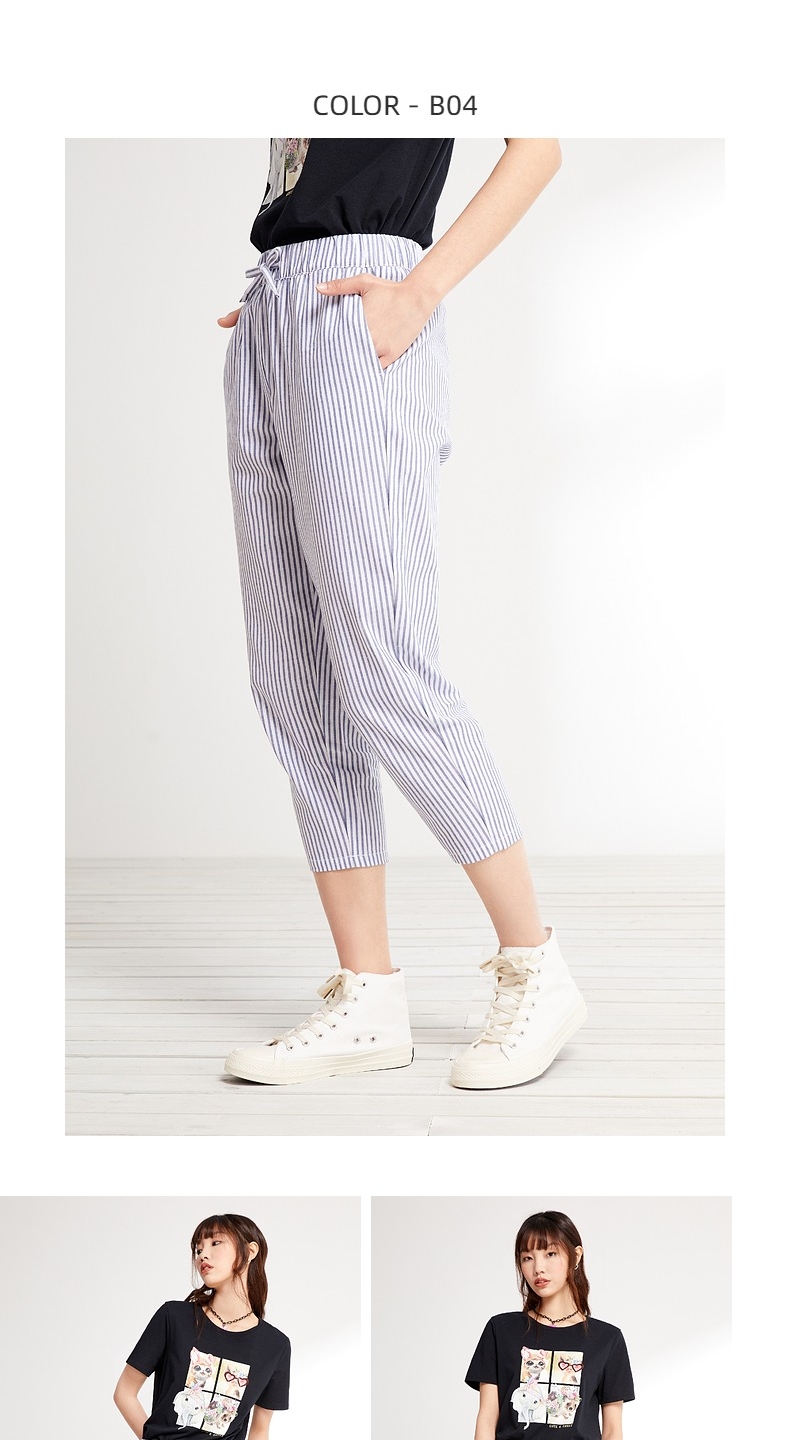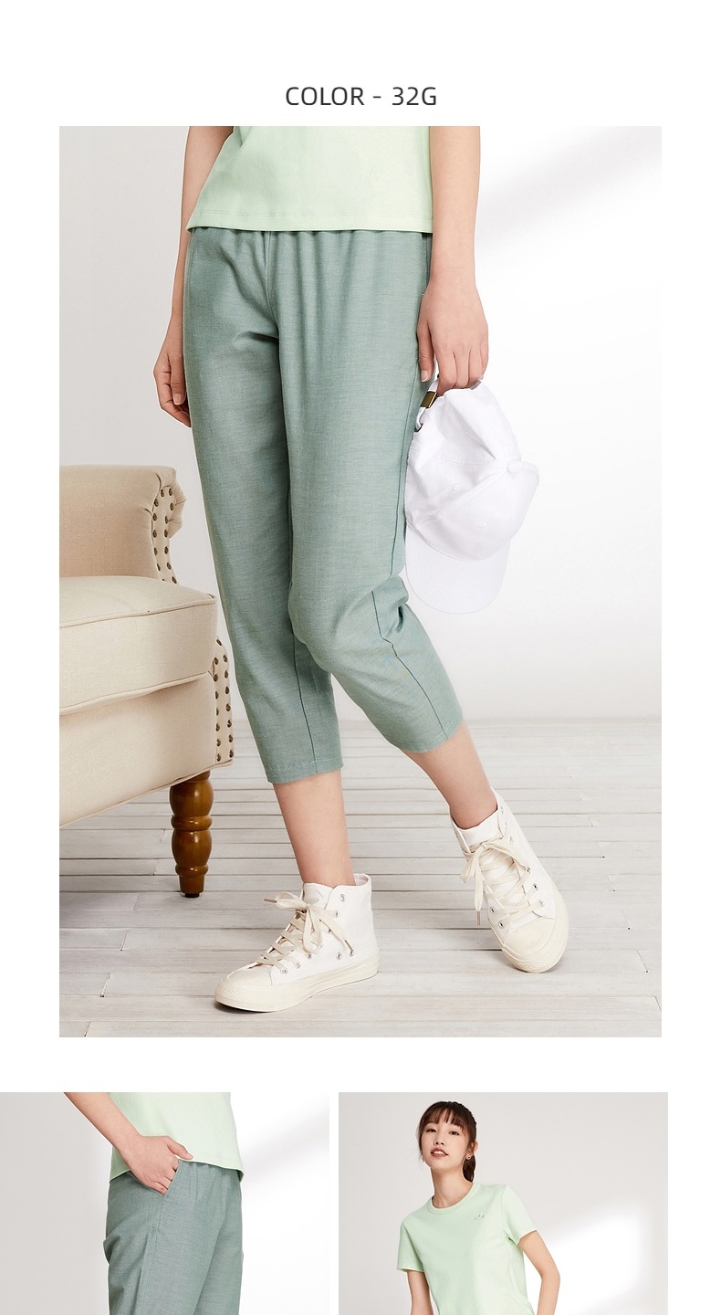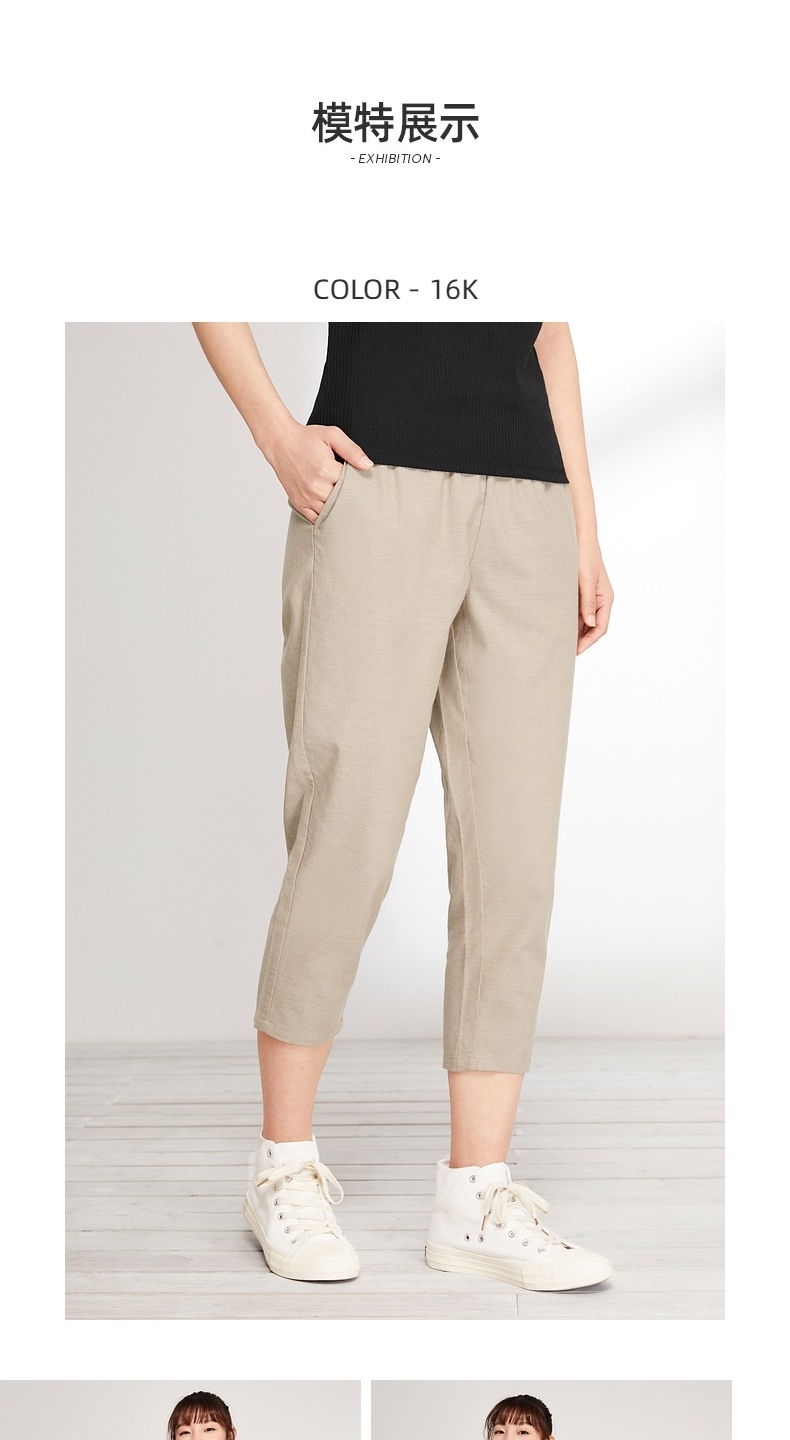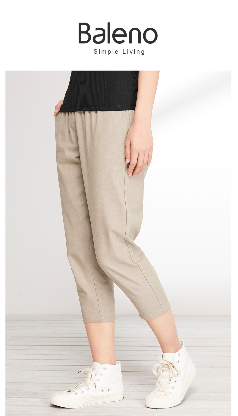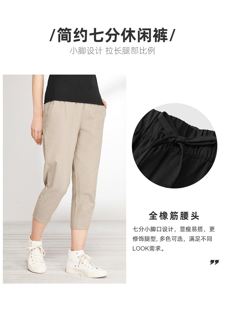 班尼路2021年春夏新款松紧腰纯色休闲裤女七分裤小脚纯棉哈伦裤