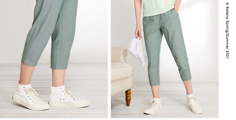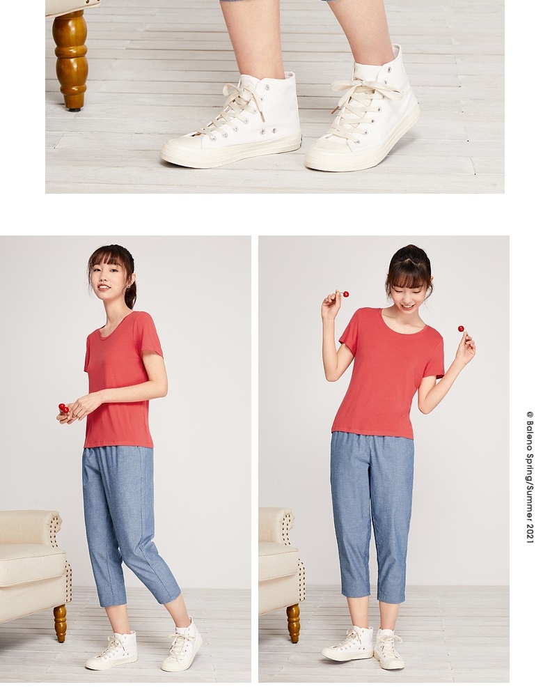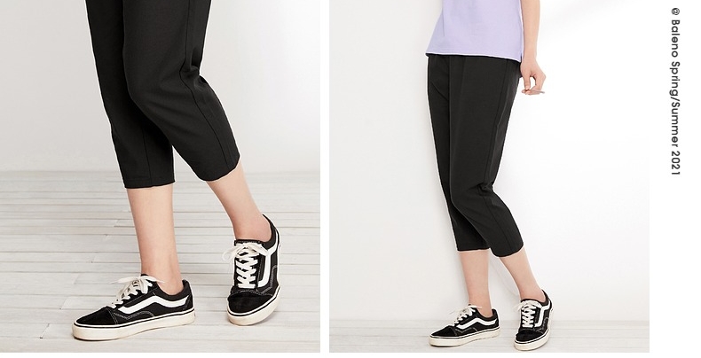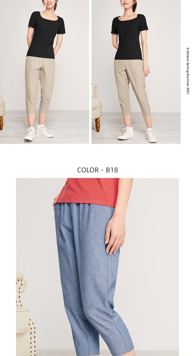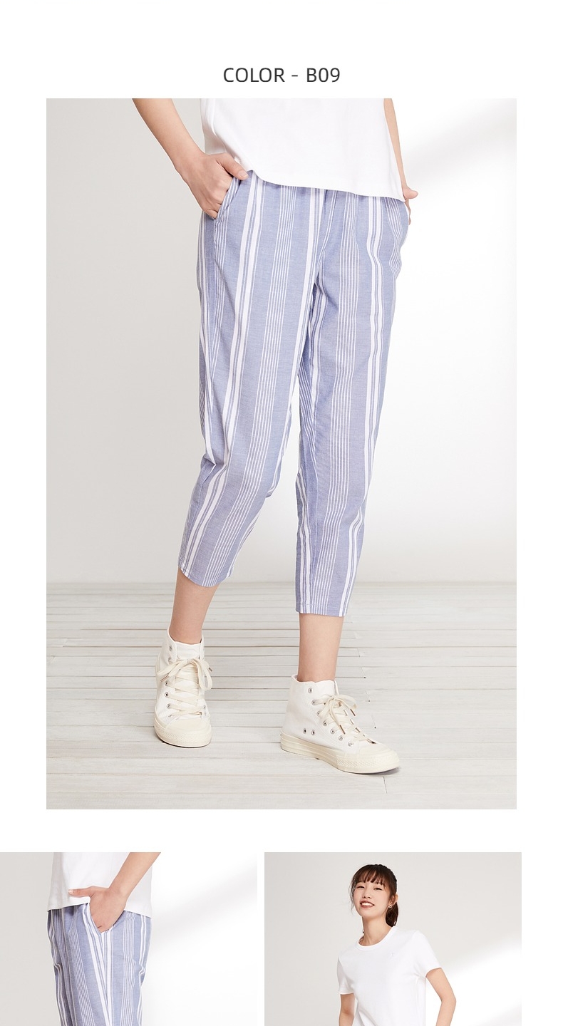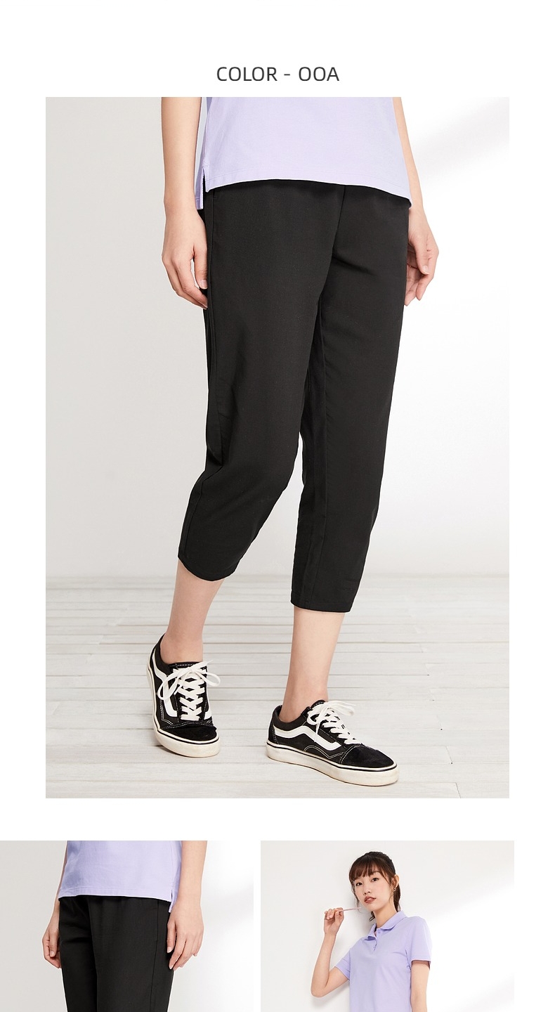 班尼路2021年春夏新款松紧腰纯色休闲裤女七分裤小脚纯棉哈伦裤